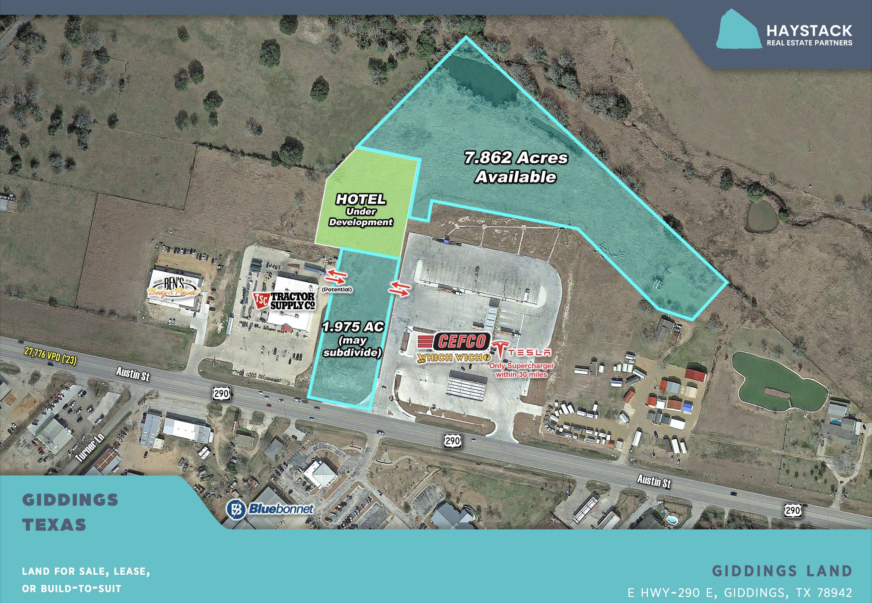 This property features: Underserved retail/dining market in Giddings with recent growth.; Prime location on Hwy 290, a major thoroughfare connecting Austin and Houston.; Utilities available to the site.