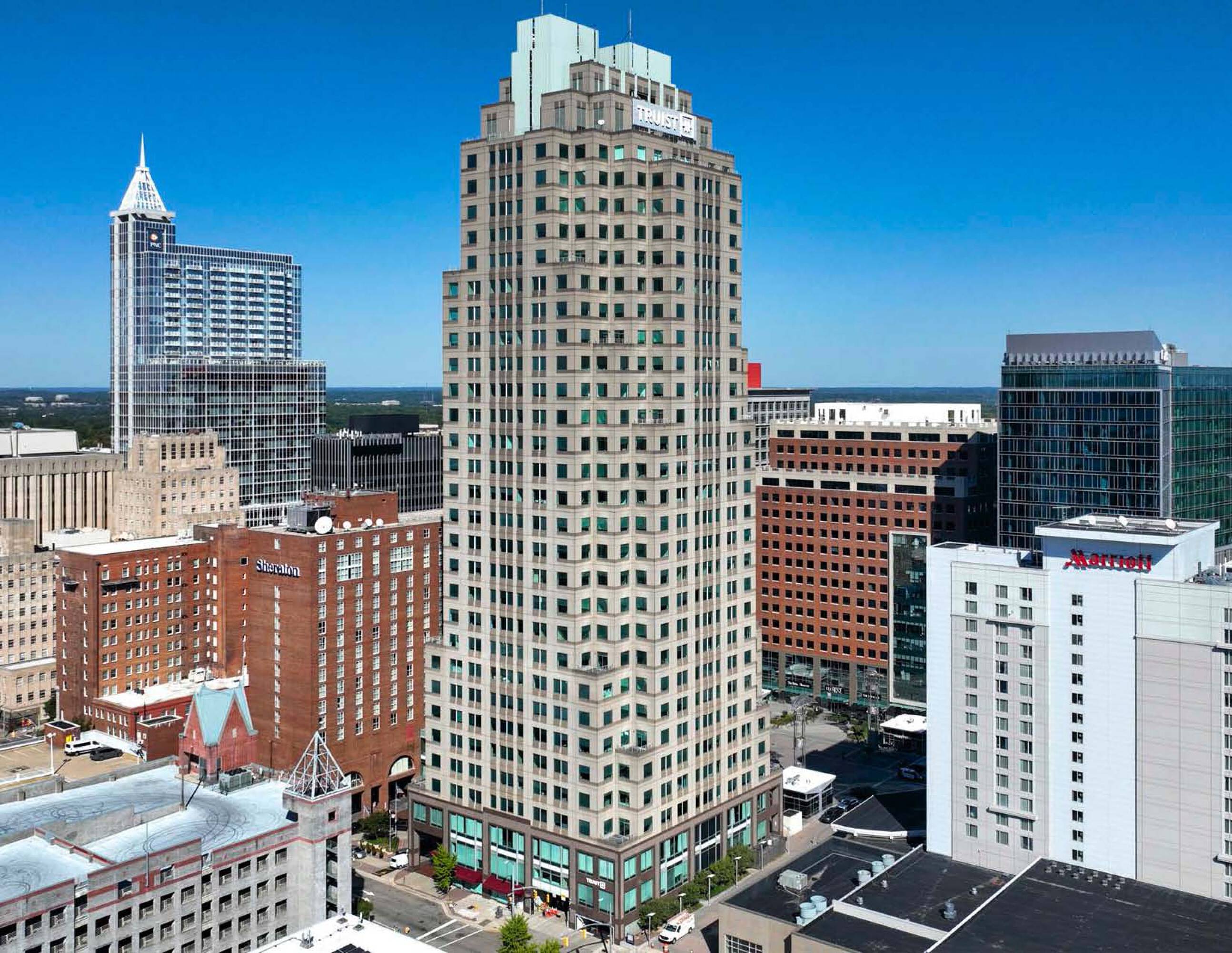 Prestigious 29-story office tower in downtown Raleigh for lease.