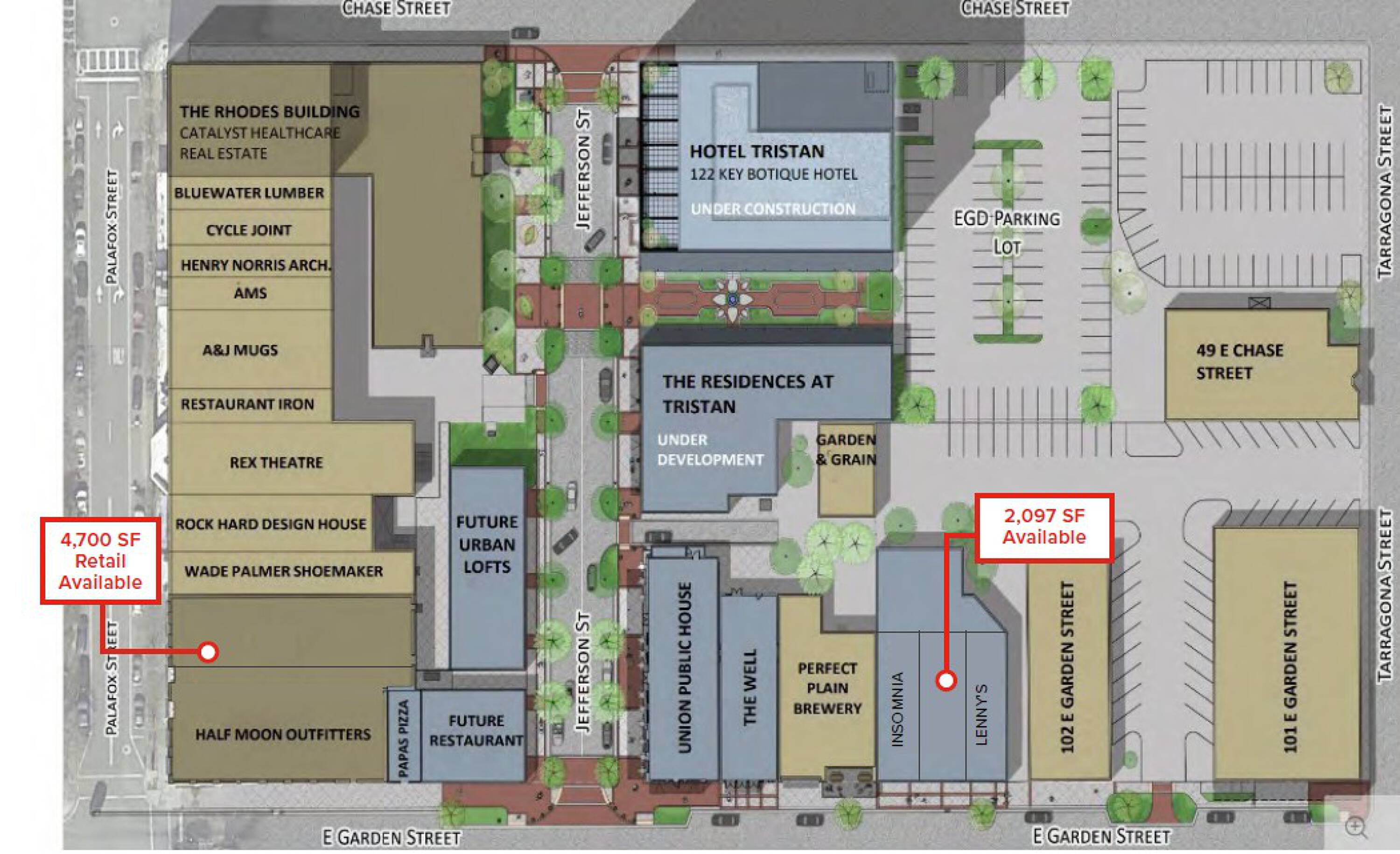 Trophy retail and office space in Downtown Pensacola available now.