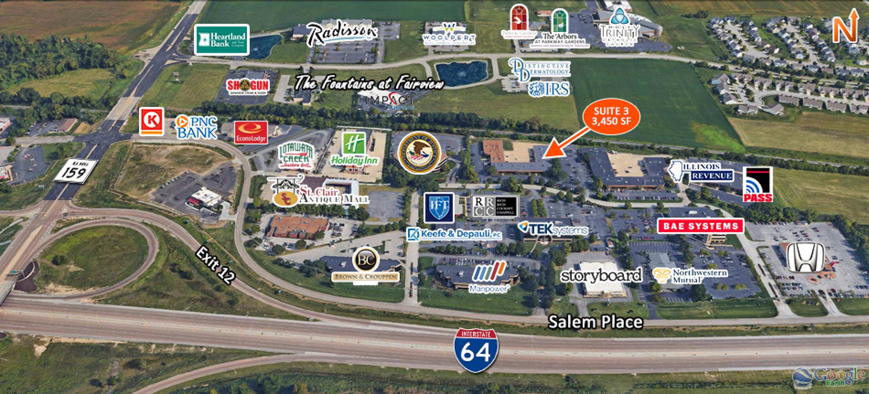This property features: Professional office suite offering 3,450 SF of space.; Conveniently located near I‑64 and IL Route 159, just 15 minutes from St. Louis.; Features **4 private offices, a large conference room, and two bullpens/training rooms.**