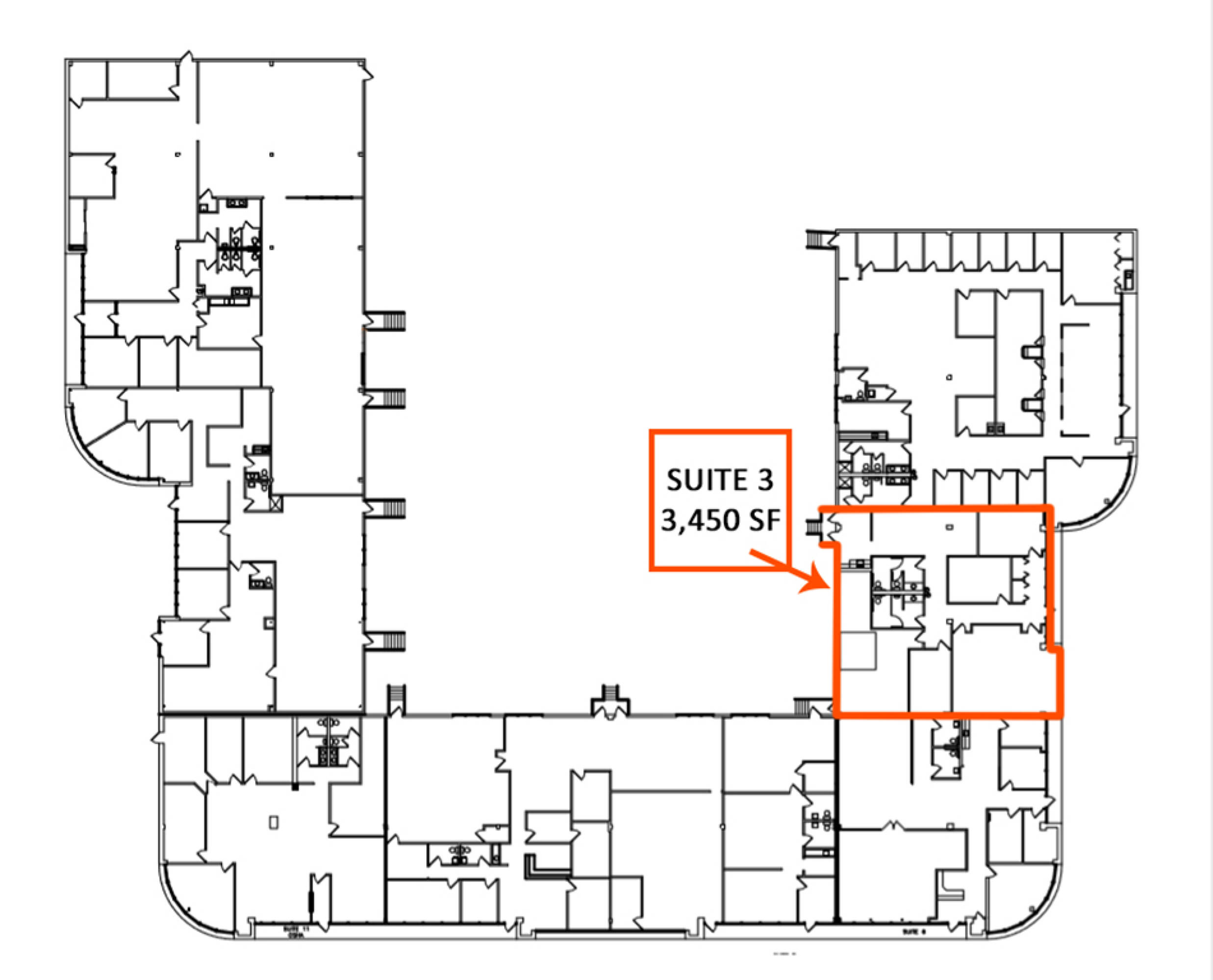 Suite 3 (3,450 SF) includes 4 private offices, large conference room, two bullpens...
