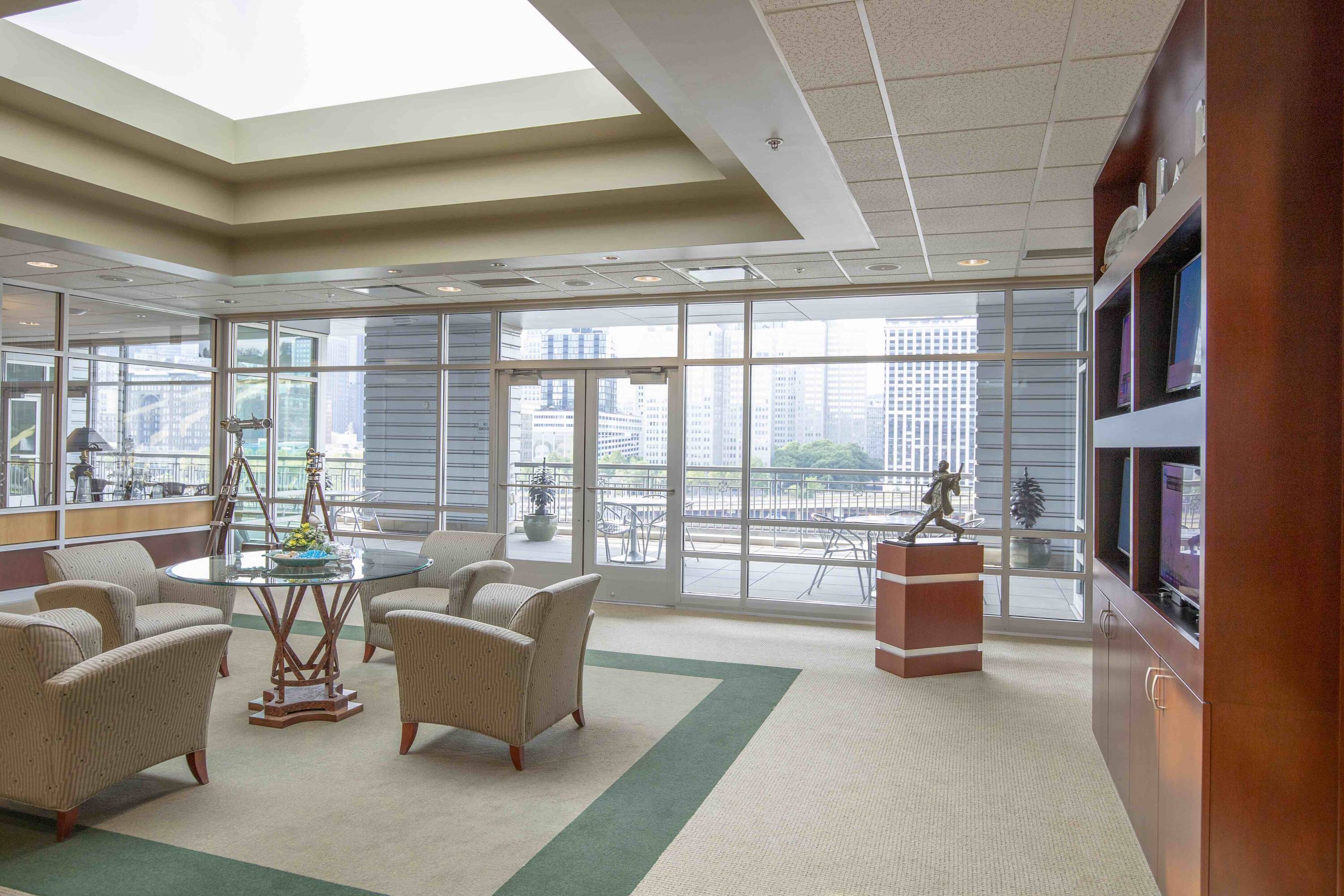 Six-story, 180,000 SF office building with riverfront views.