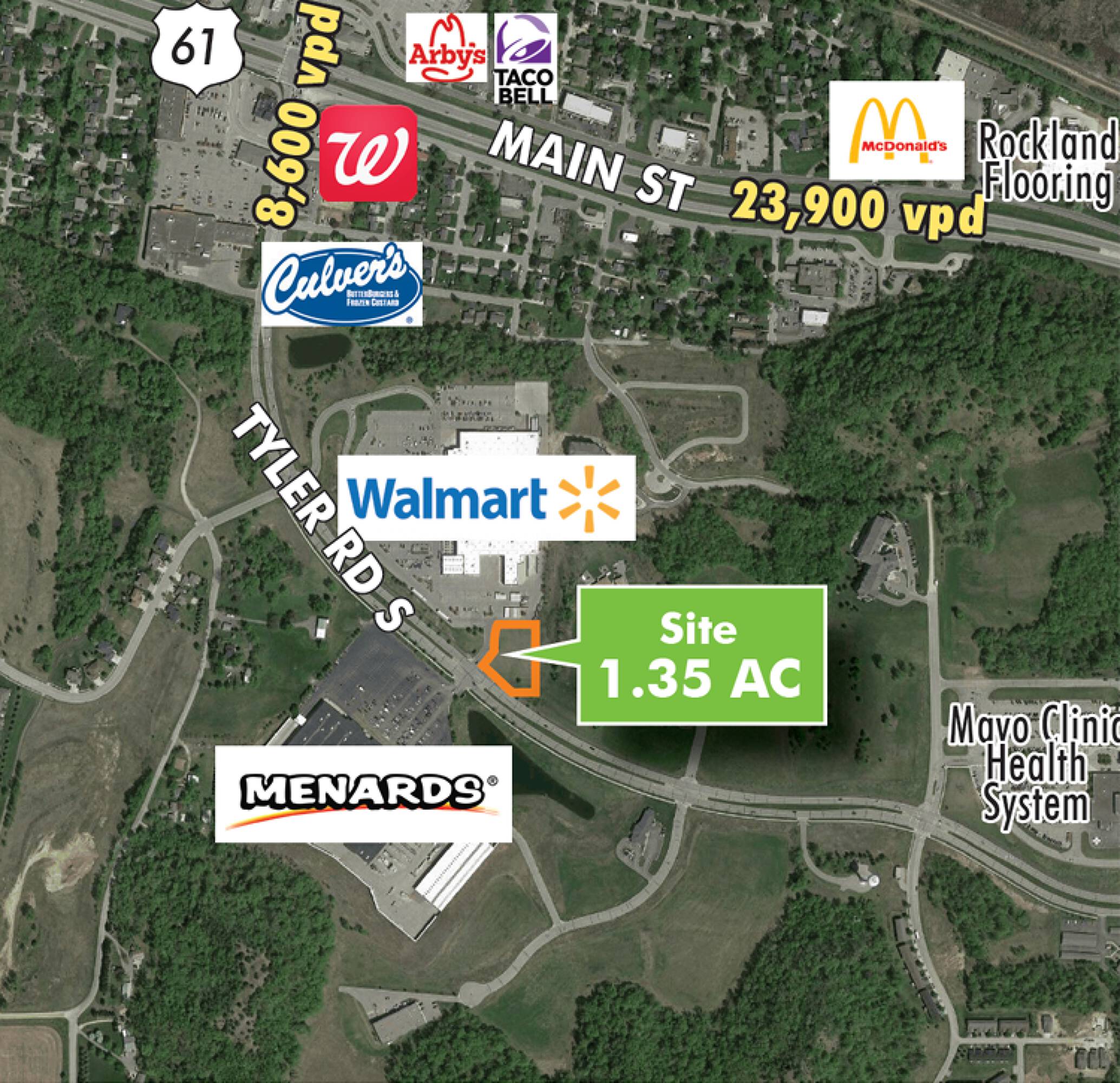 1.35 acre commercial land available as Walmart outlot.