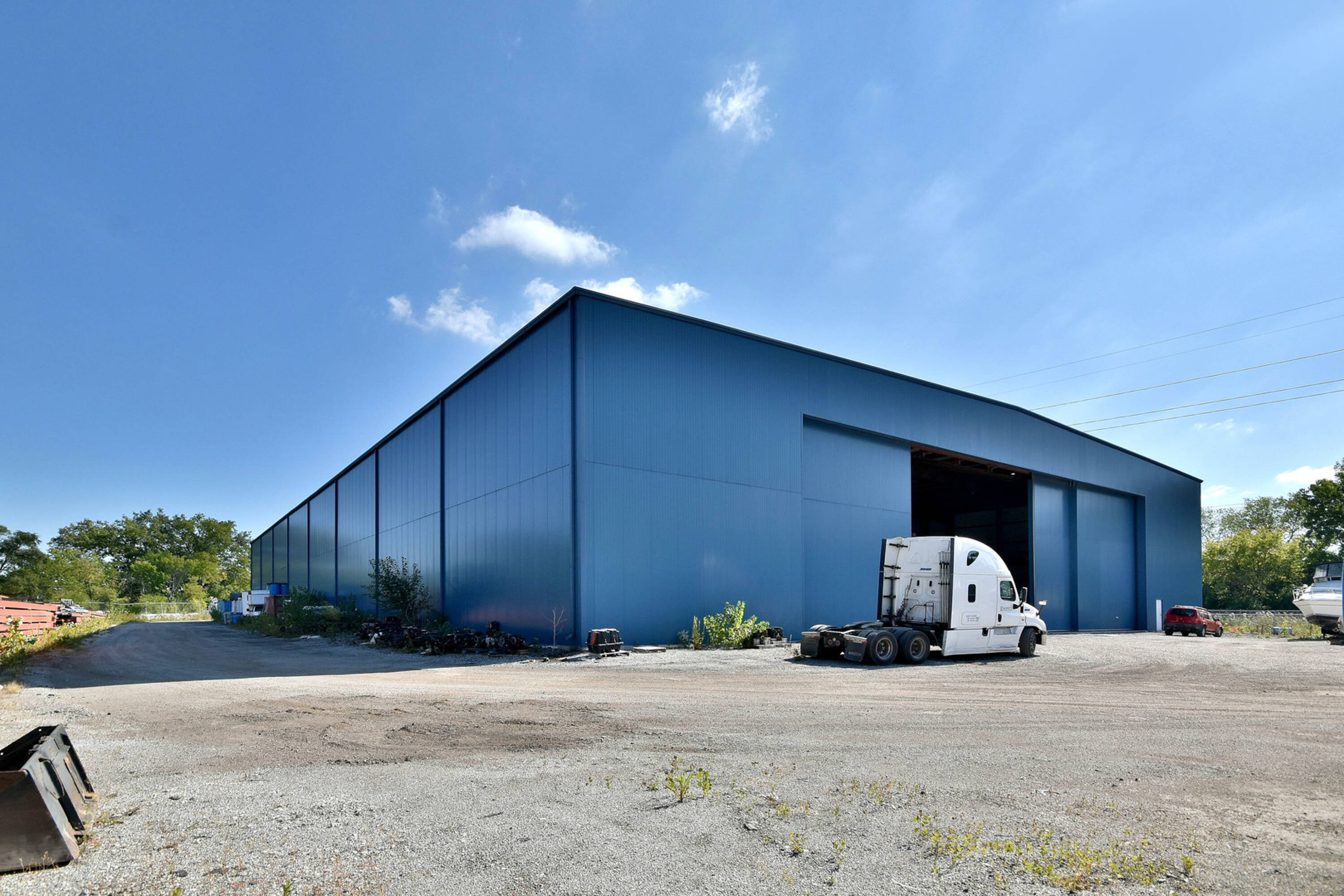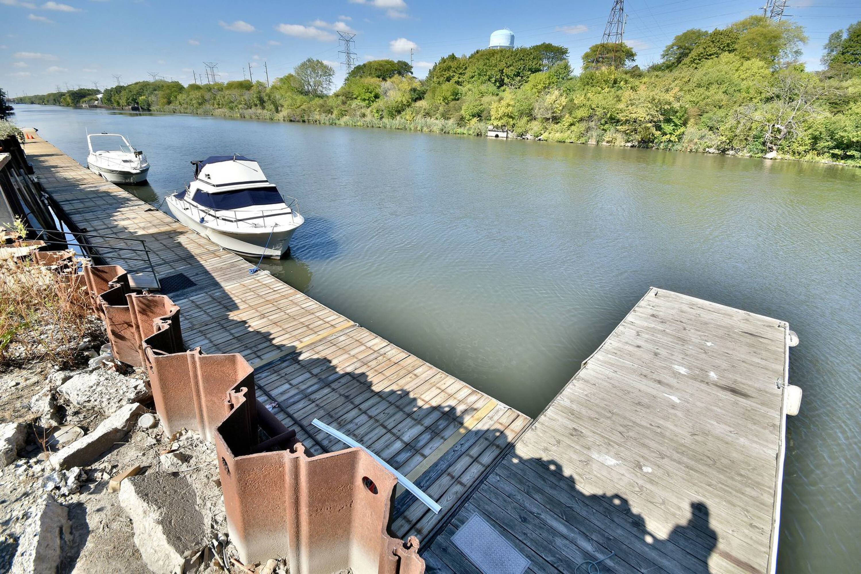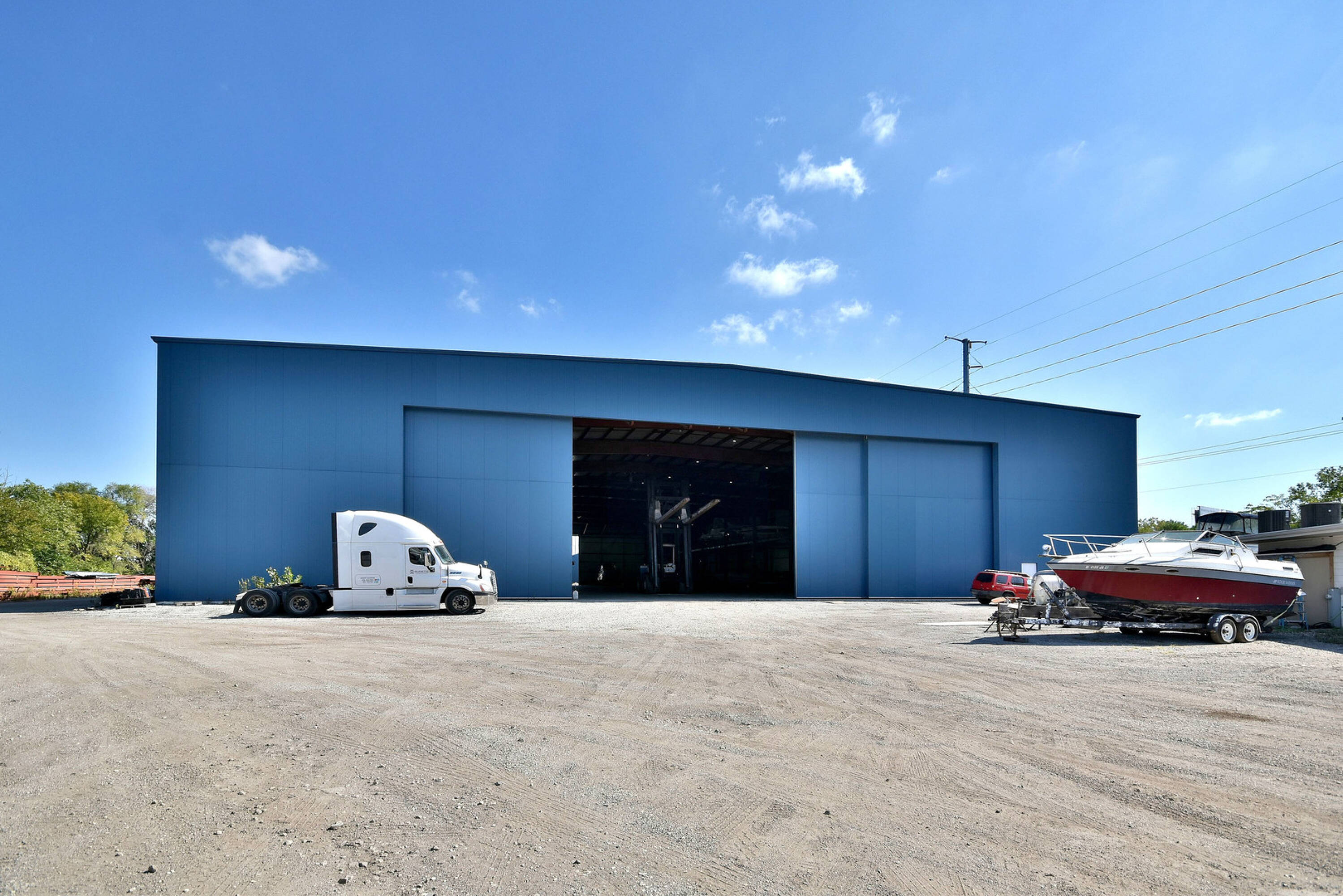 This is an established marina property for sale, situated on 10 acres. The property includes three buildings, one of which is a large warehouse with airplane hangar doors. All warehouses feature radiant floor heating. The site includes boat docks and off-loading and loading capabilities for barges. A separate office building is also located on the property. The sale includes all boat marina equipment.