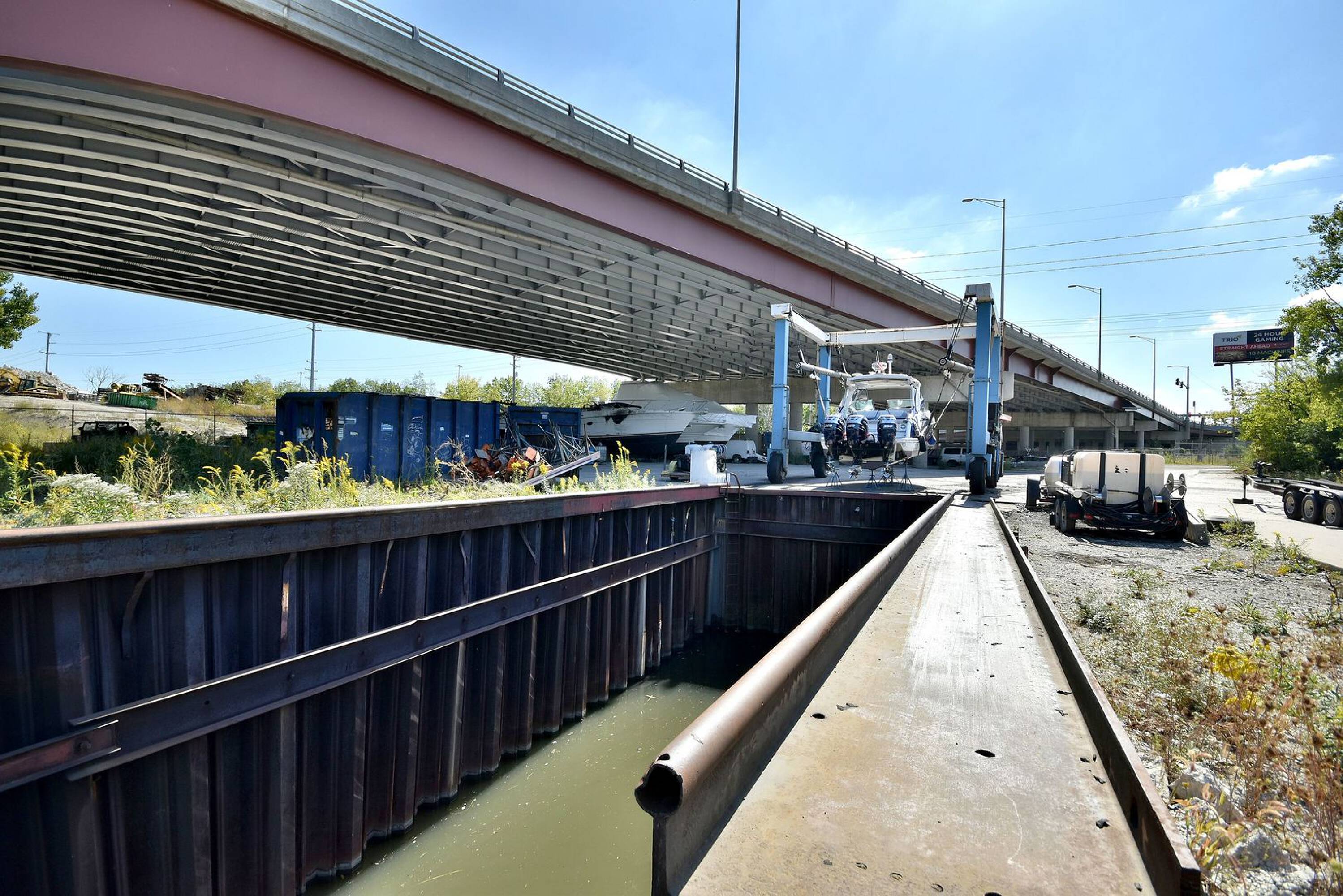 Marina - 10-acre marina with warehouses, office, and boat docks.