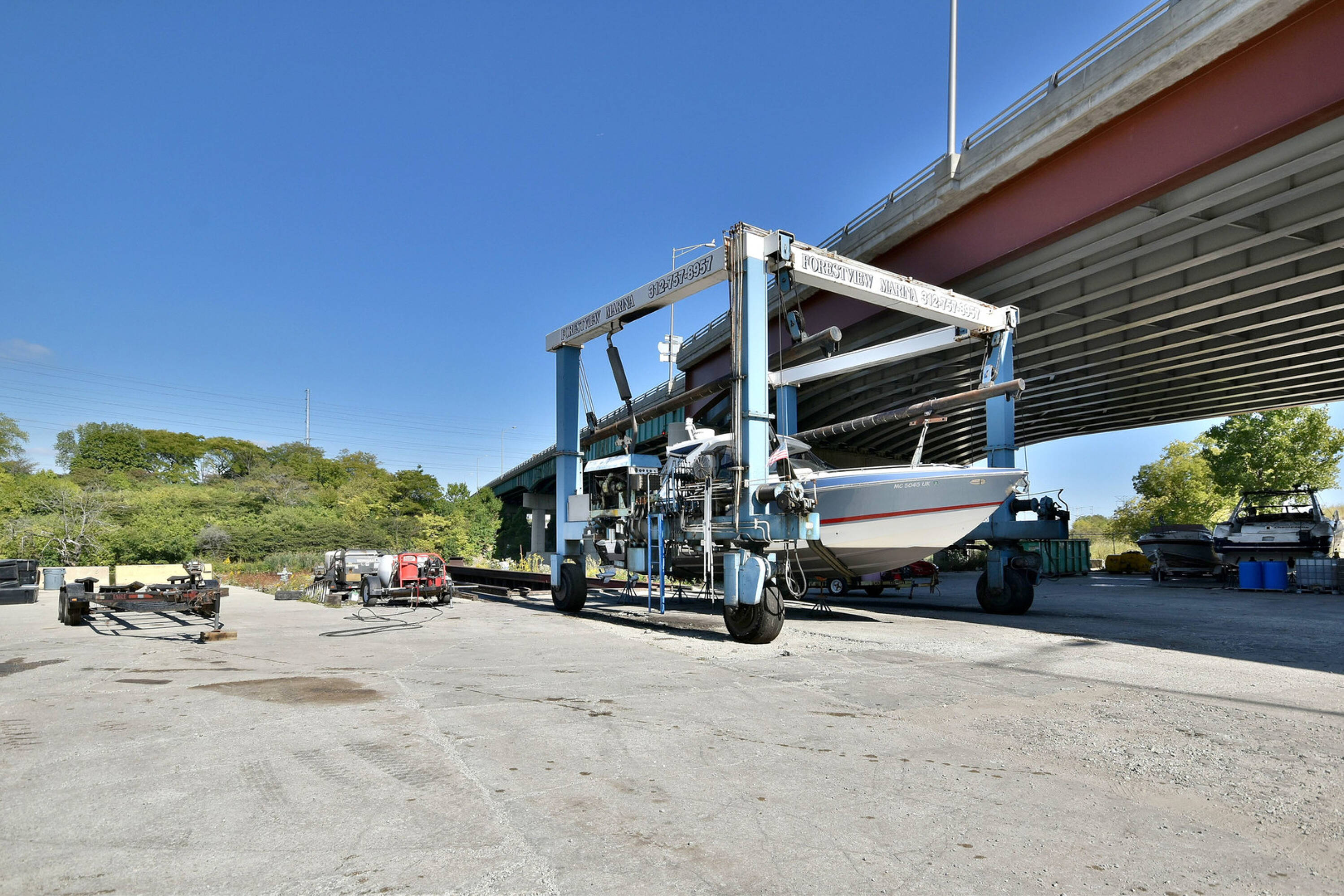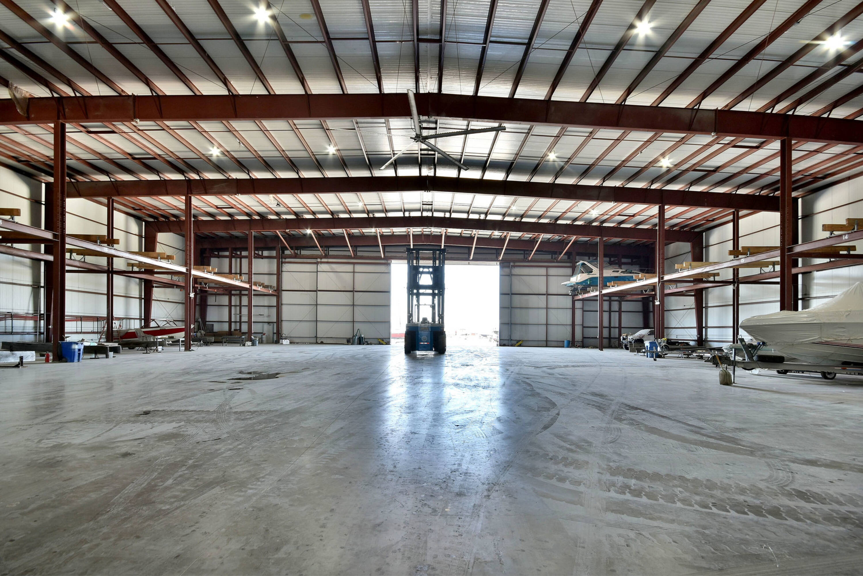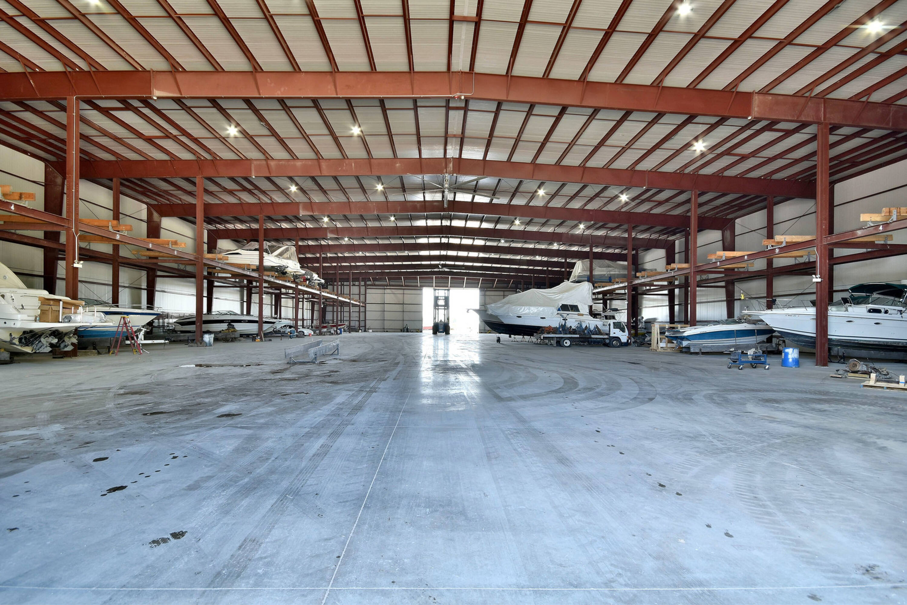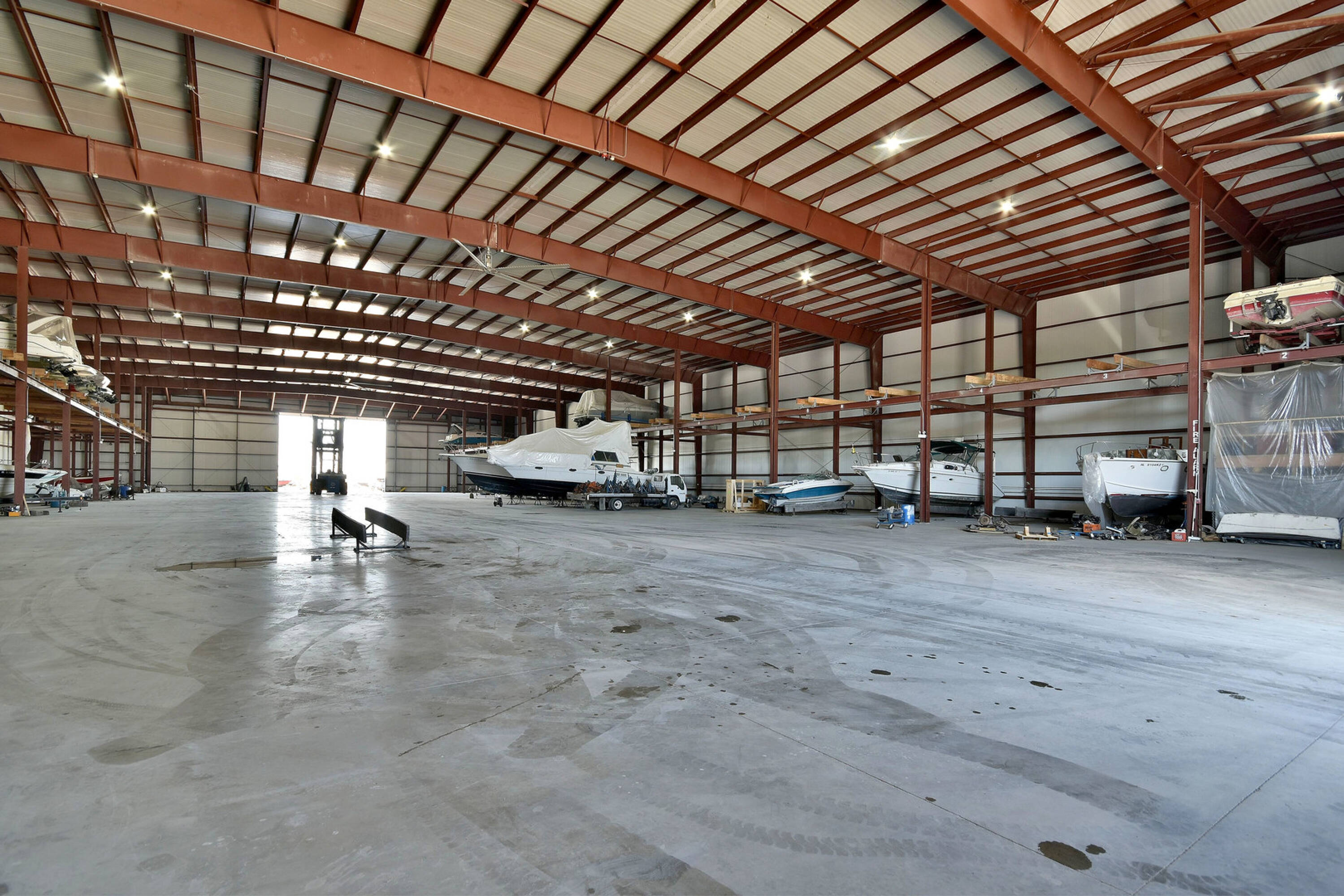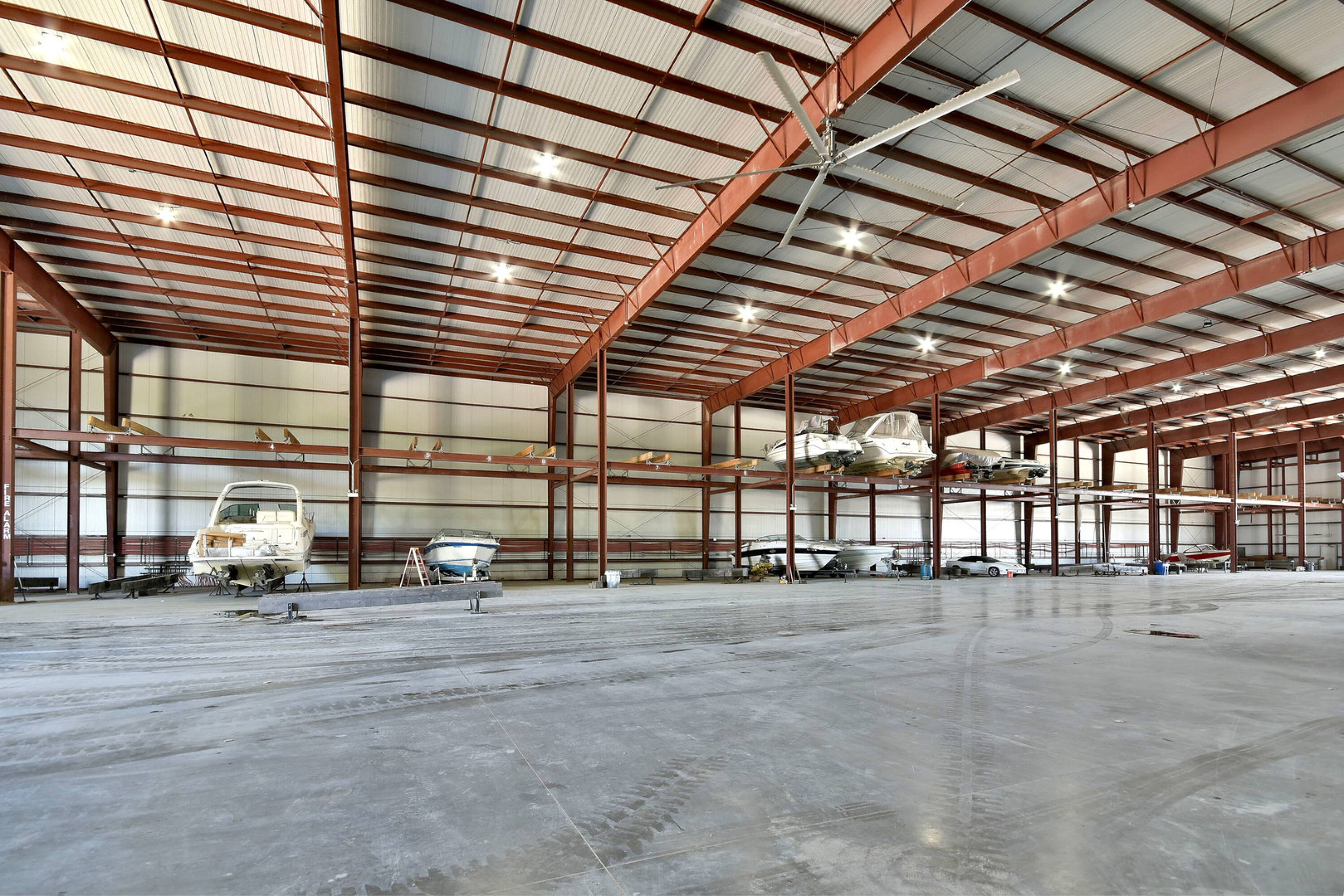 This property features: Established marina with proven profitability.; 10‑acre property with forest views.; Three buildings, including a huge warehouse with airplane hangar doors.