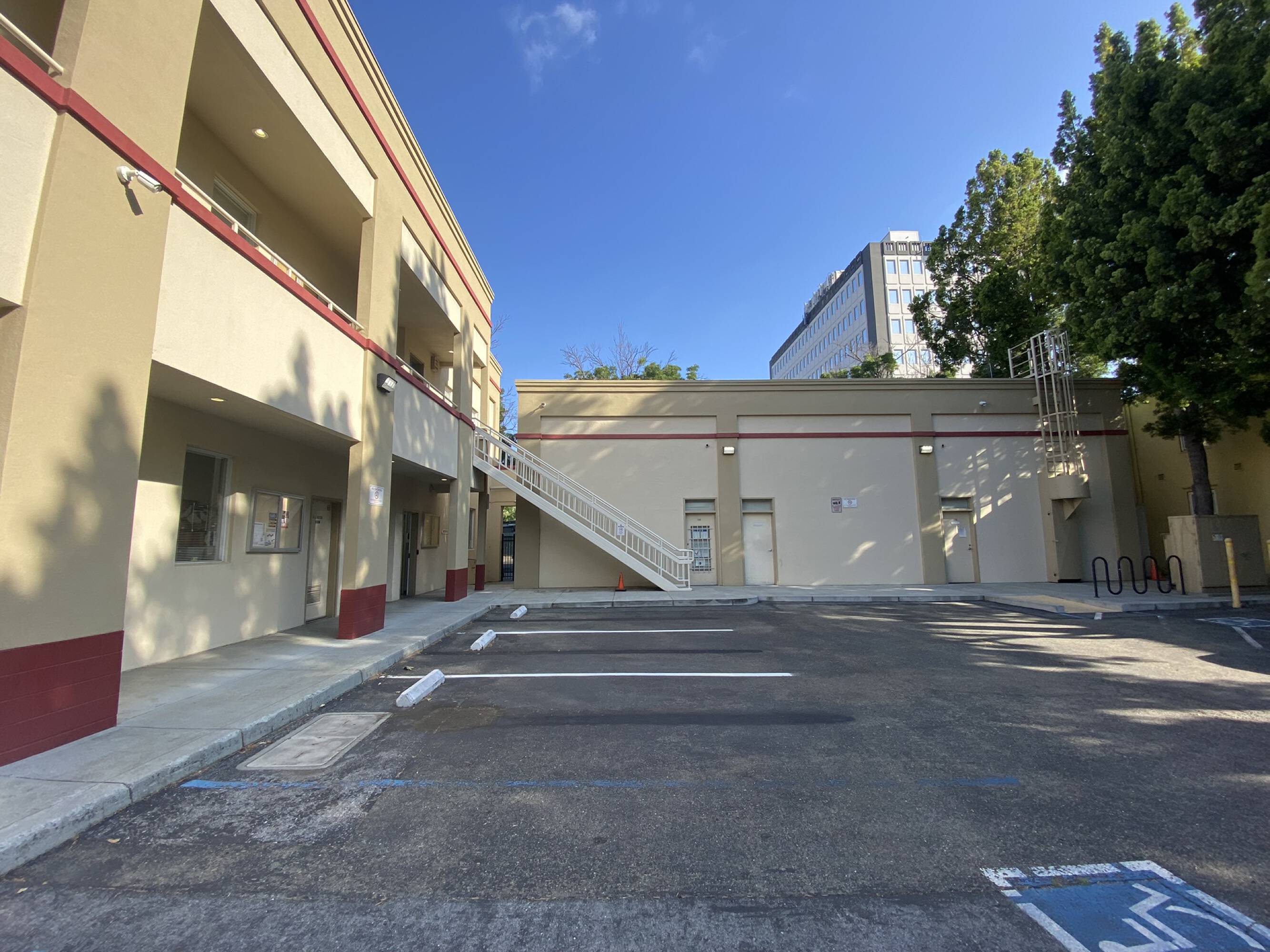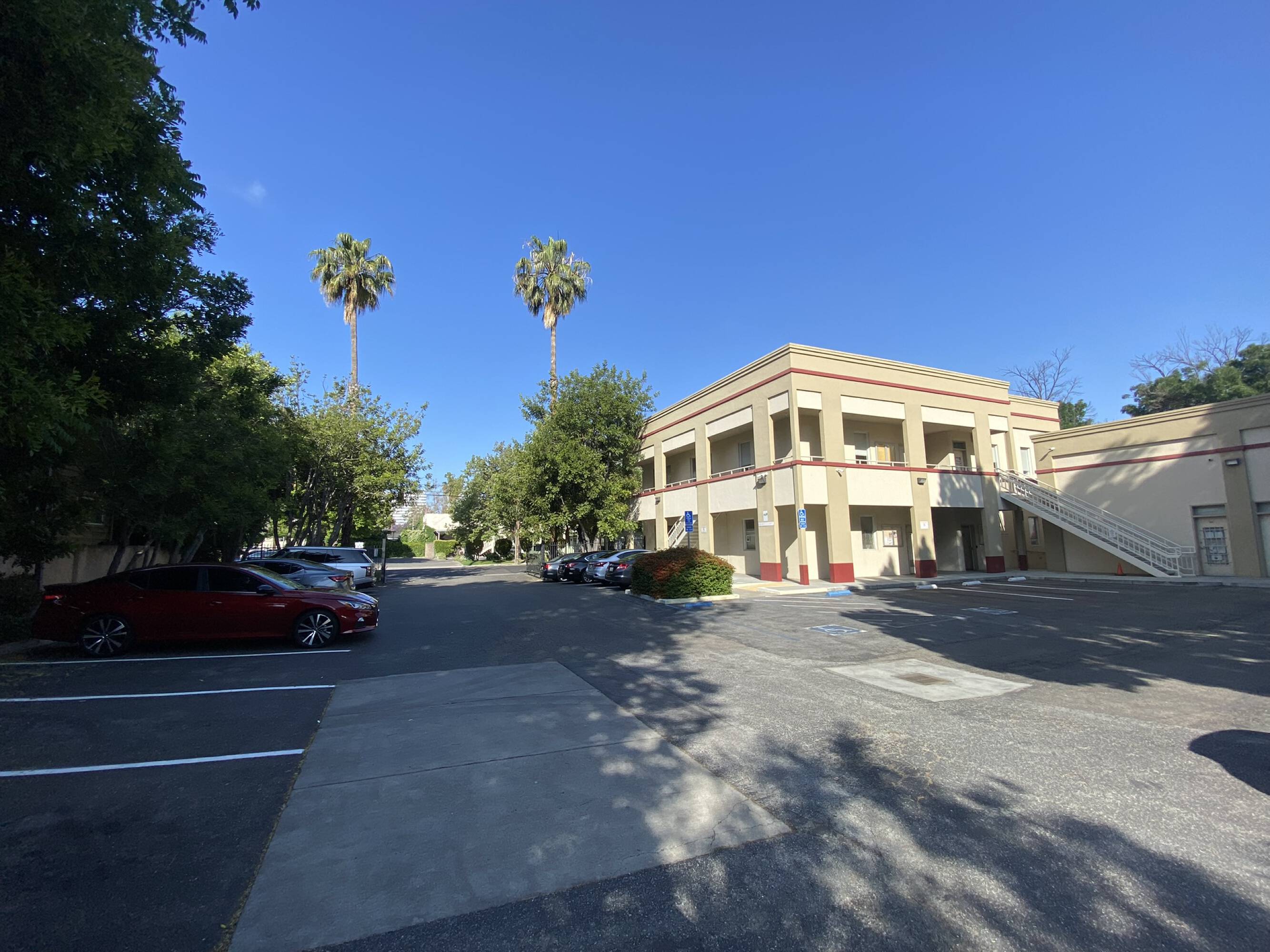 This property features: 6,945 SF total space across two buildings; 0.41 acre lot with two buildings: **a two‑story elevator‑served building (5,736 SF) and a single‑story building (1,209 SF)**; **27 parking spaces in a fully secured lot**
