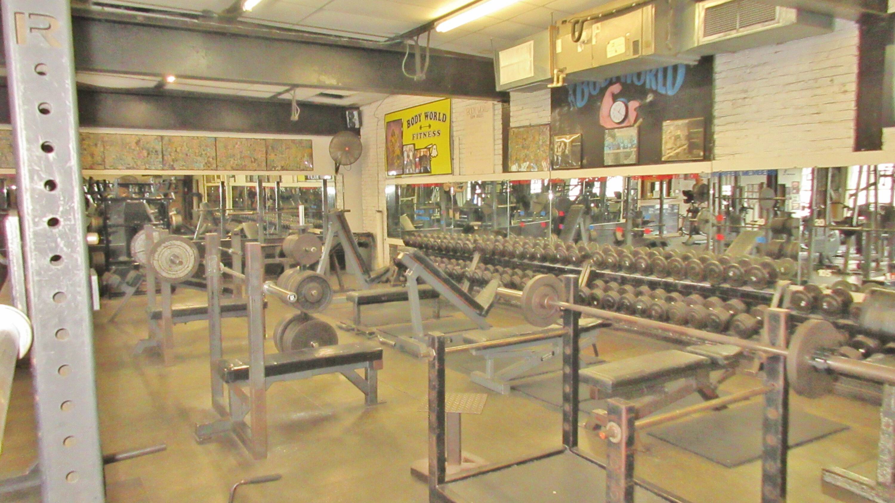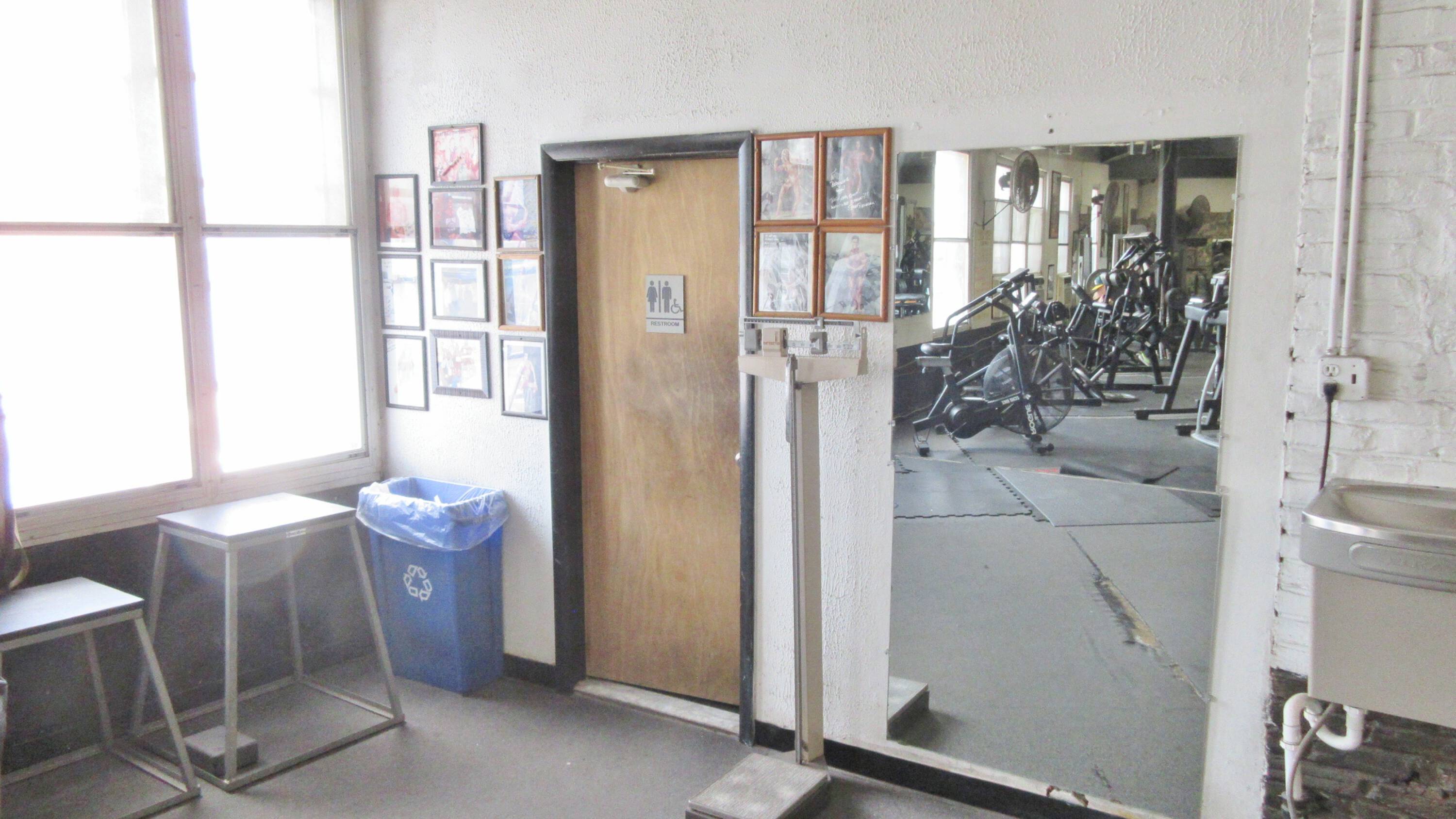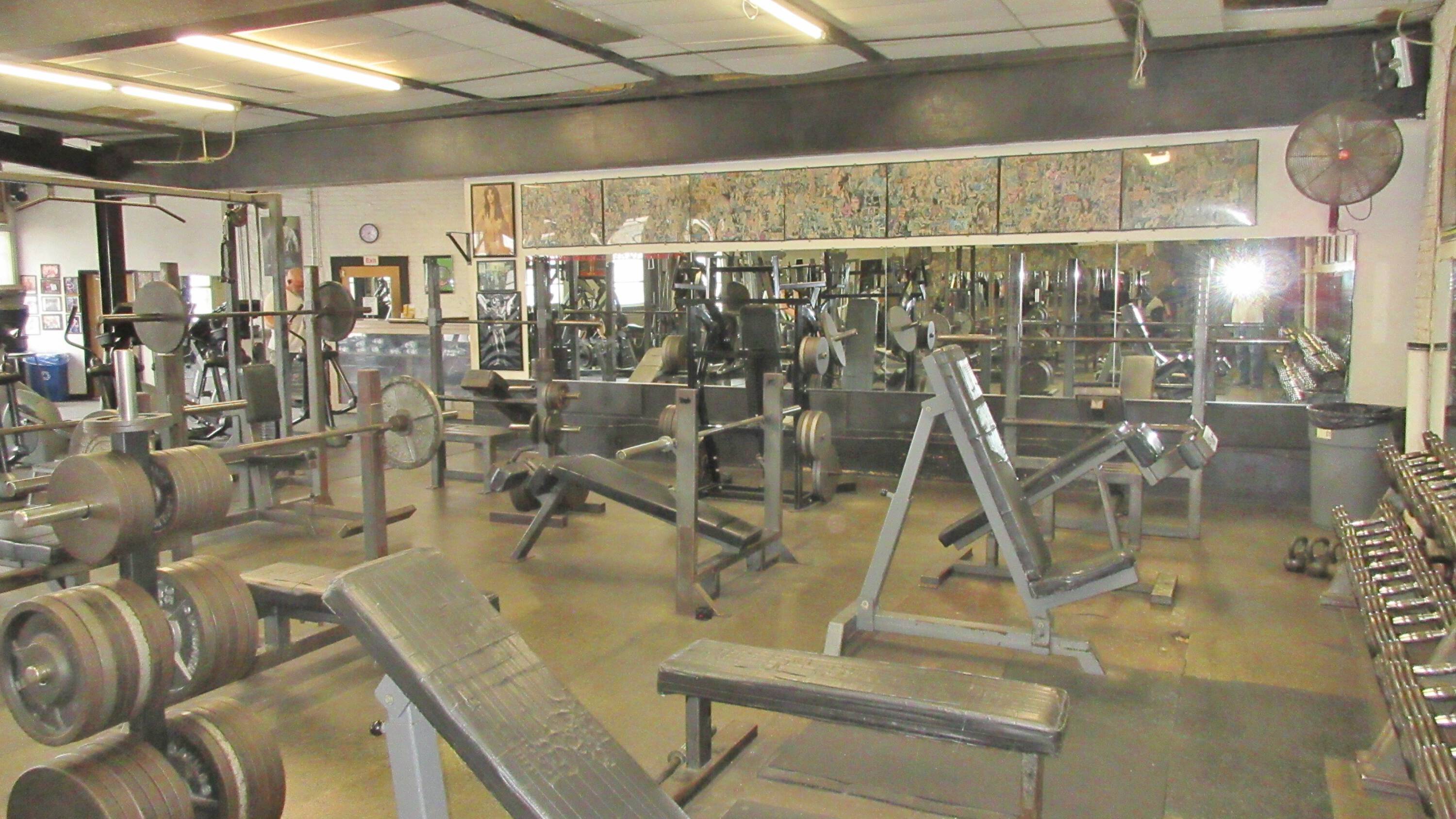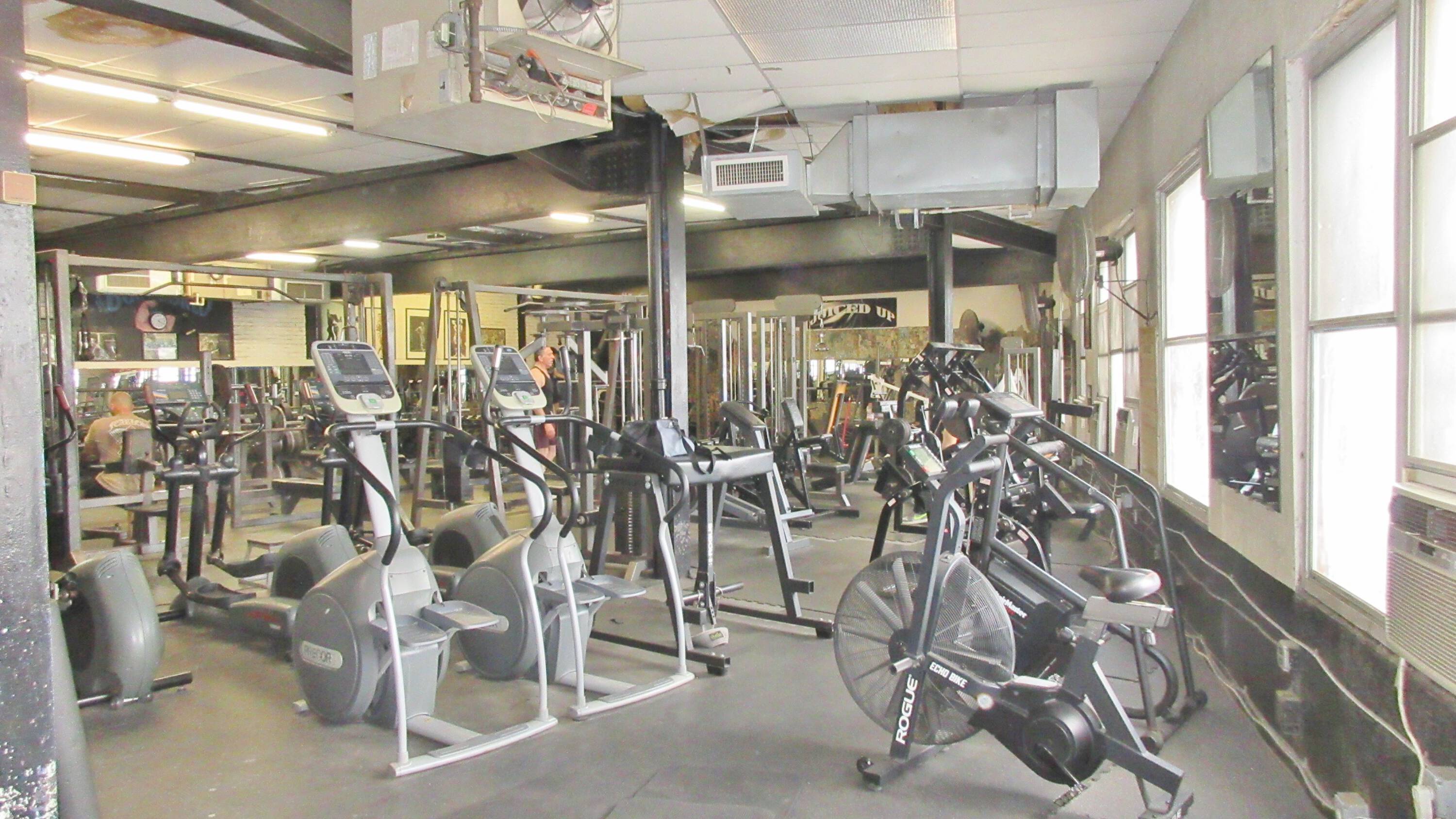 Commercial property with auto shop, gym, and development potential.