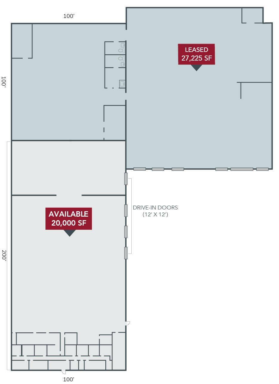 20,000 SF warehouse space available for lease October 1, 2025.