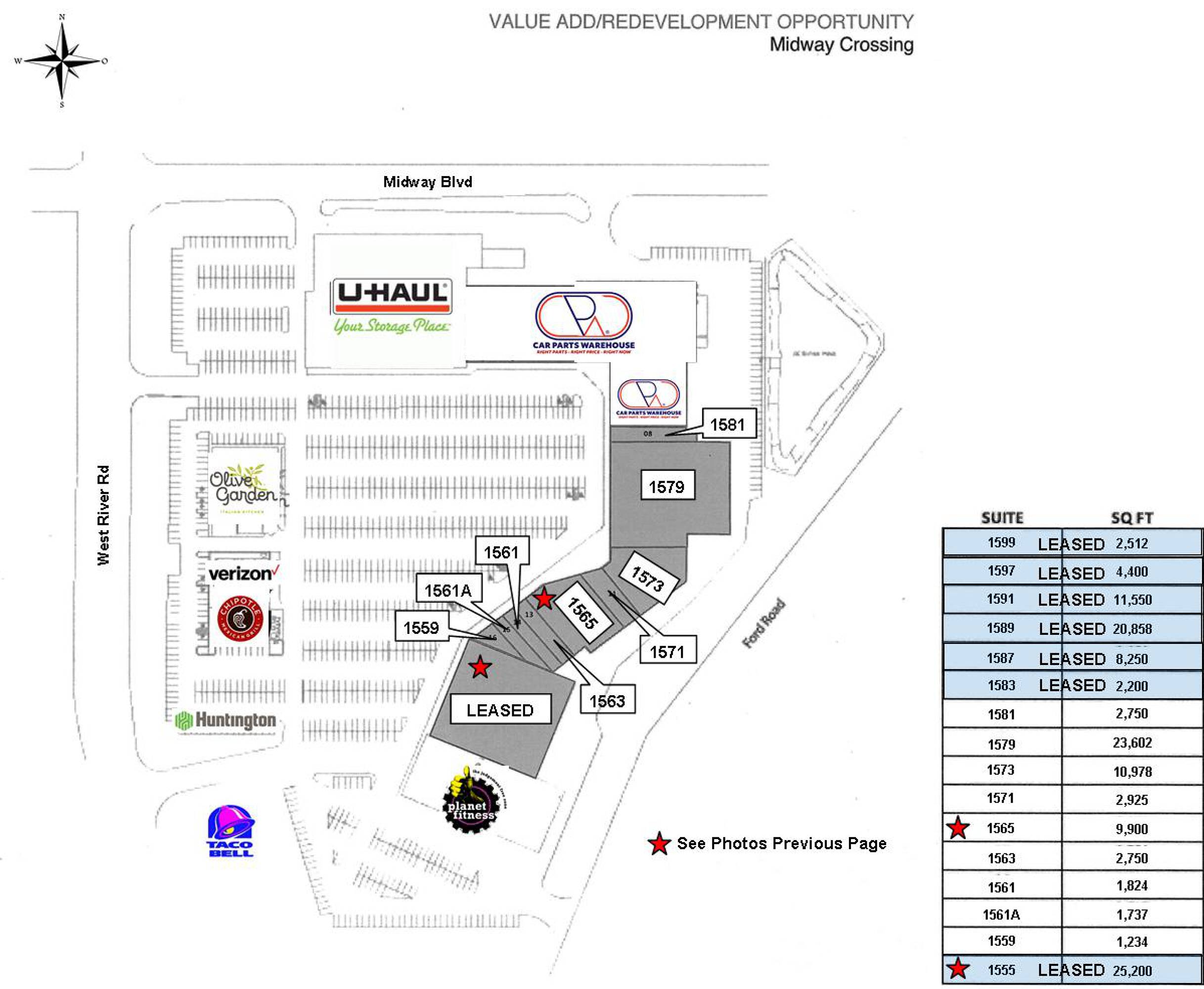 This property features: High‑traffic location in main retail corridor across from Midway Mall and near Target & Giant Eagle.; Easy access to major highways: SR 57, Ohio Turnpike (I‑80), and Interstate 90.; Diverse tenant mix including Planet Fitness, U‑Haul Self Storage, Olive Garden, Chipotle, Verizon and Taco Bell.