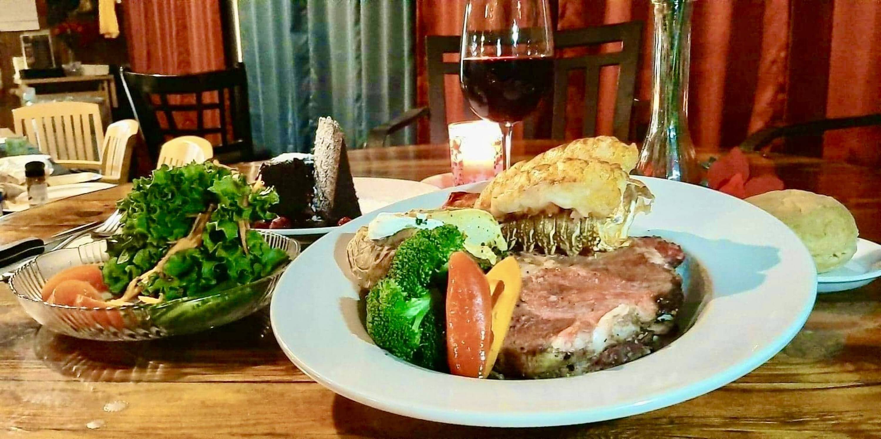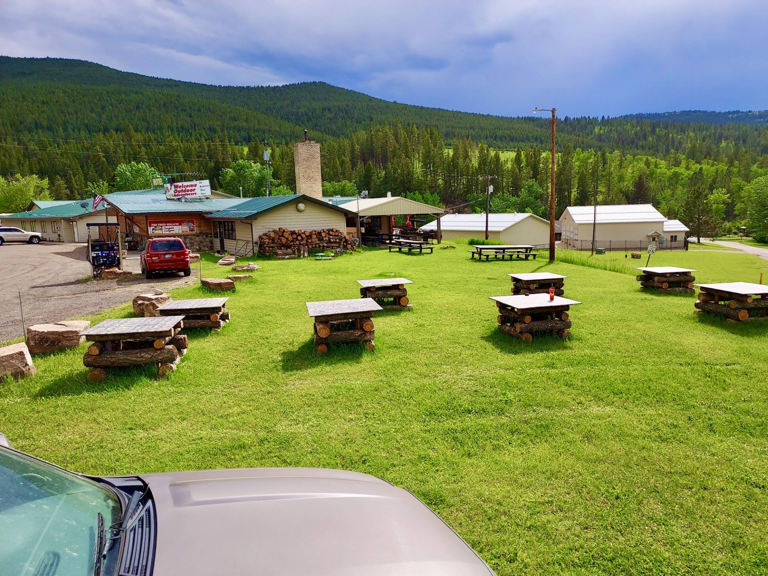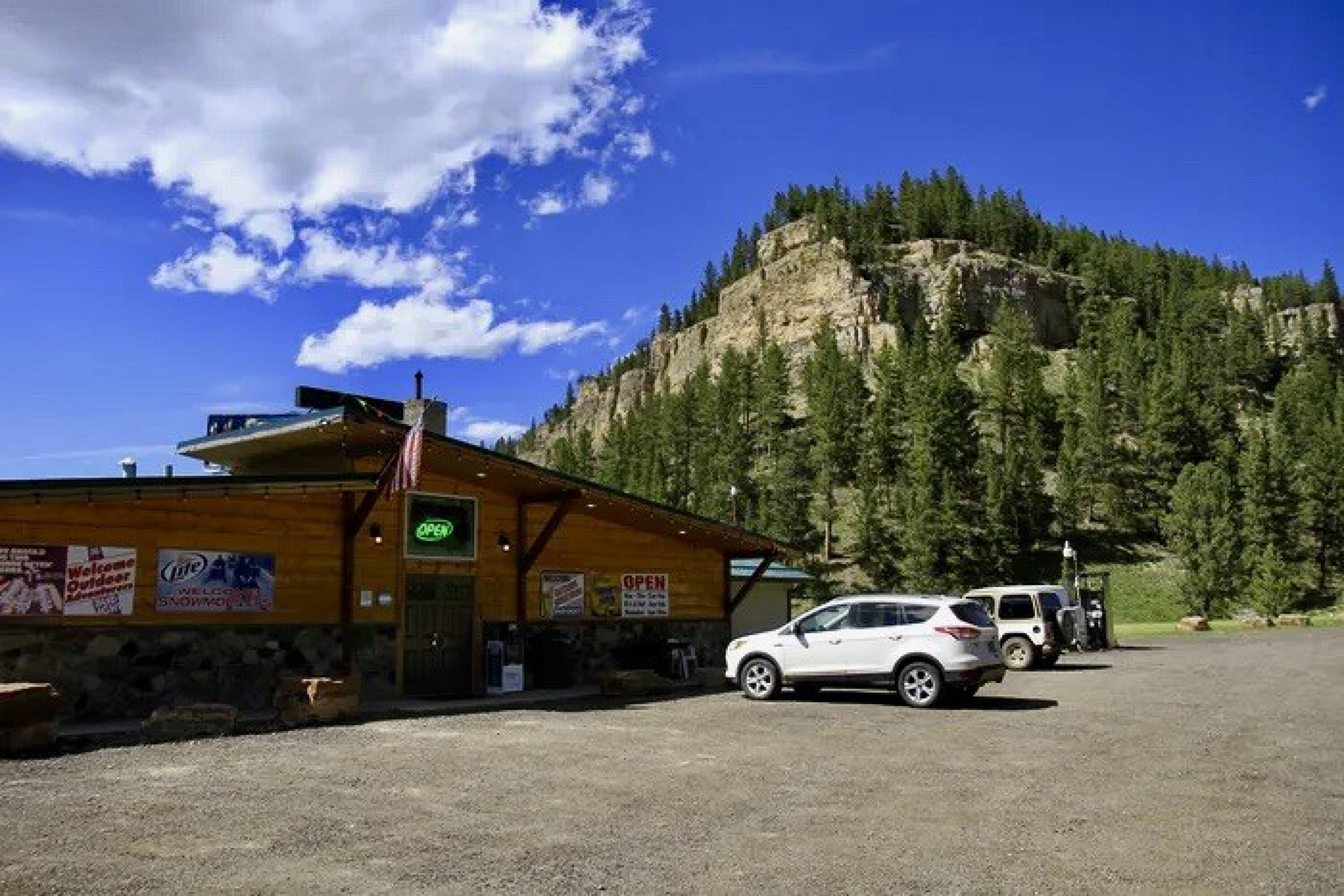 Iconic lodge with restaurant, rooms, pool, and convenience store.