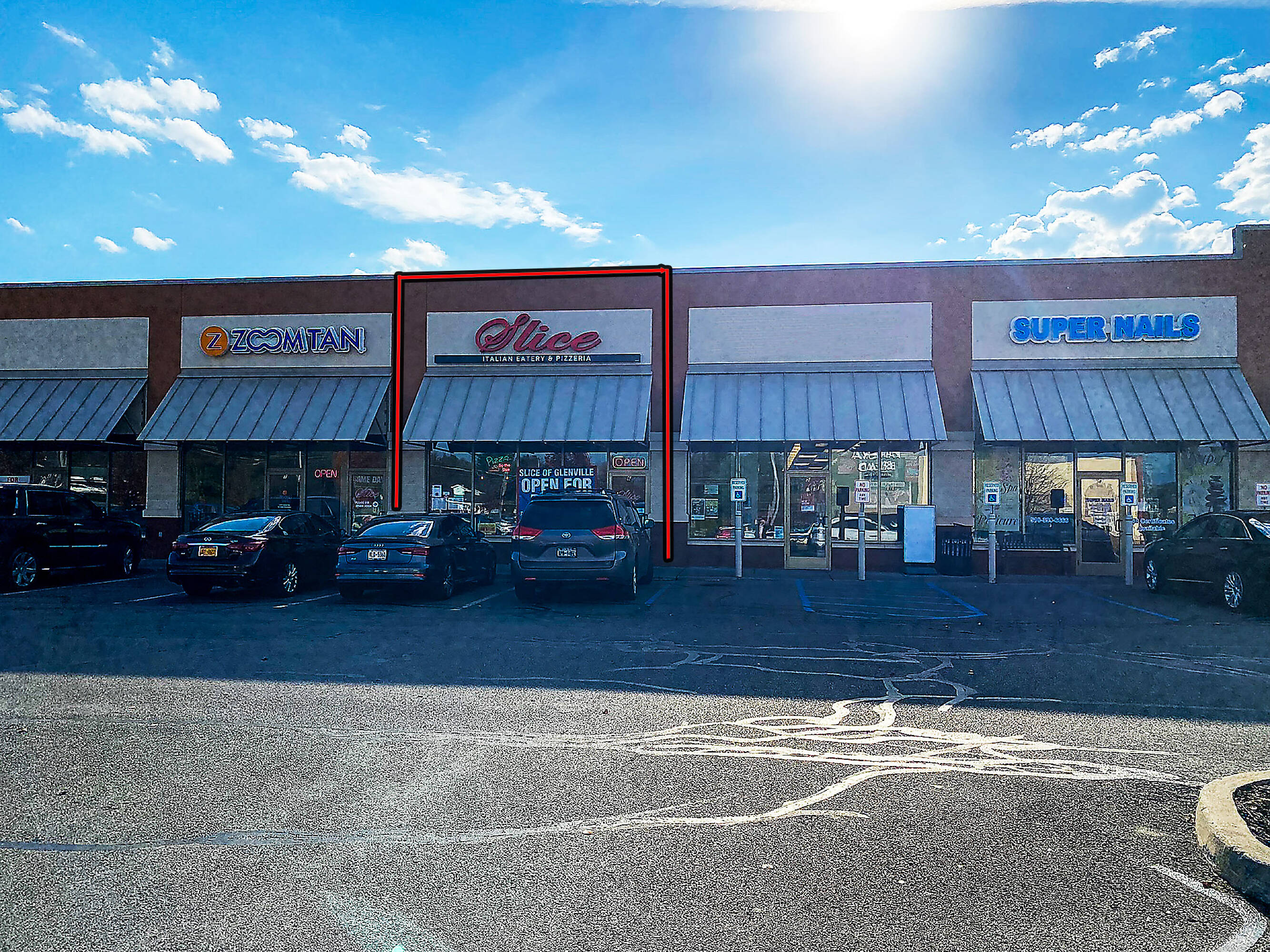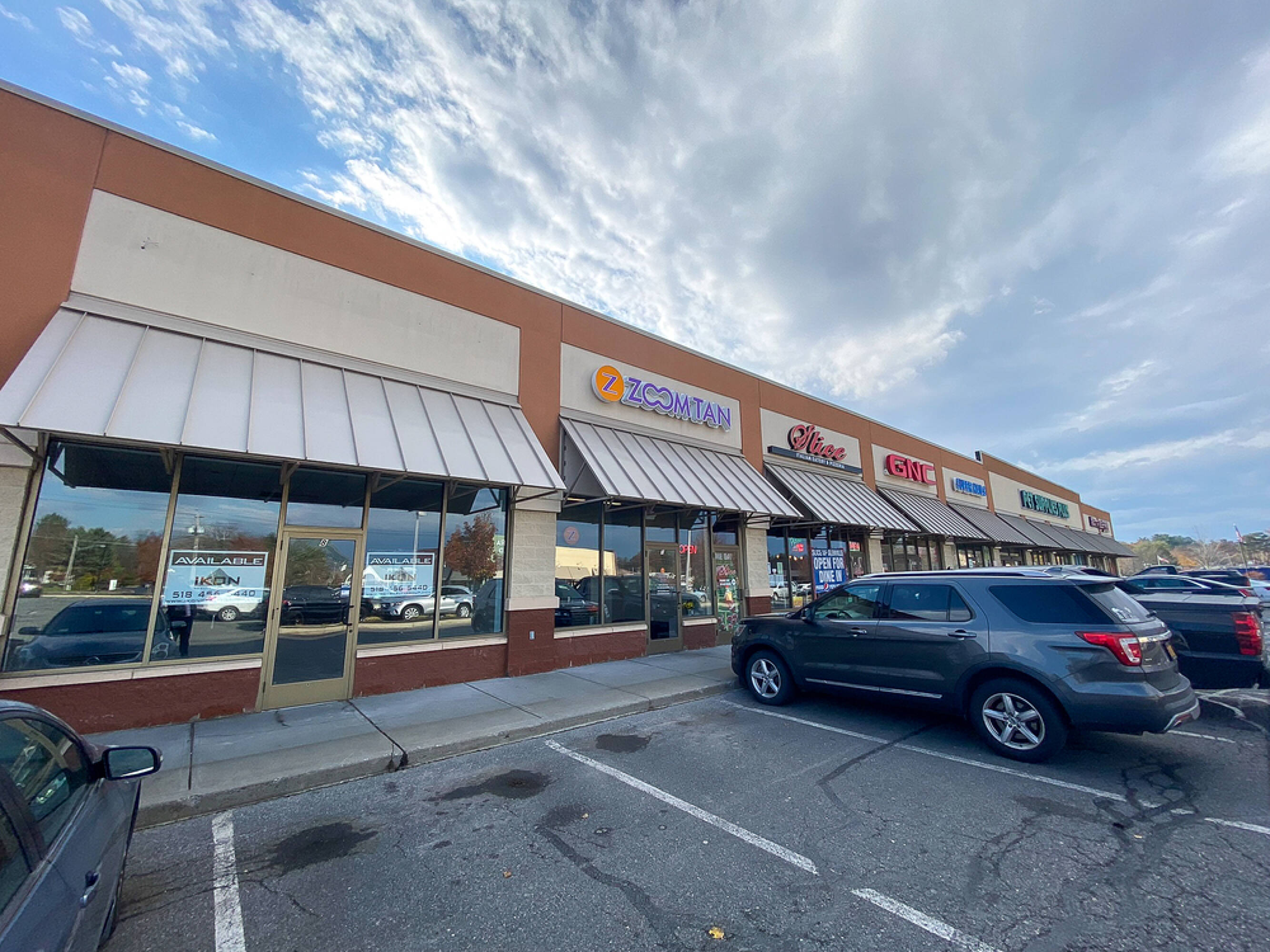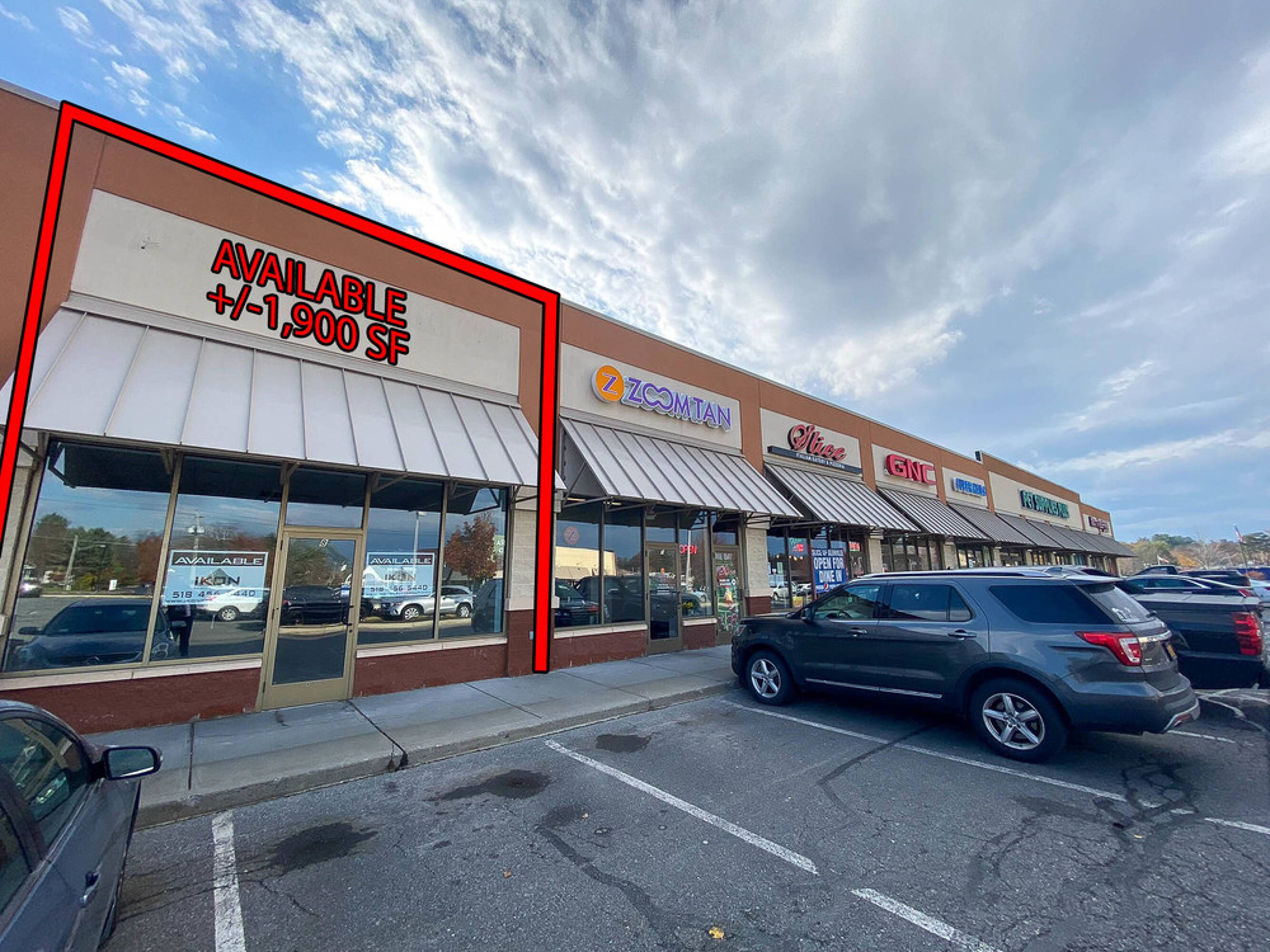 Retail spaces available in a busy shopping center.