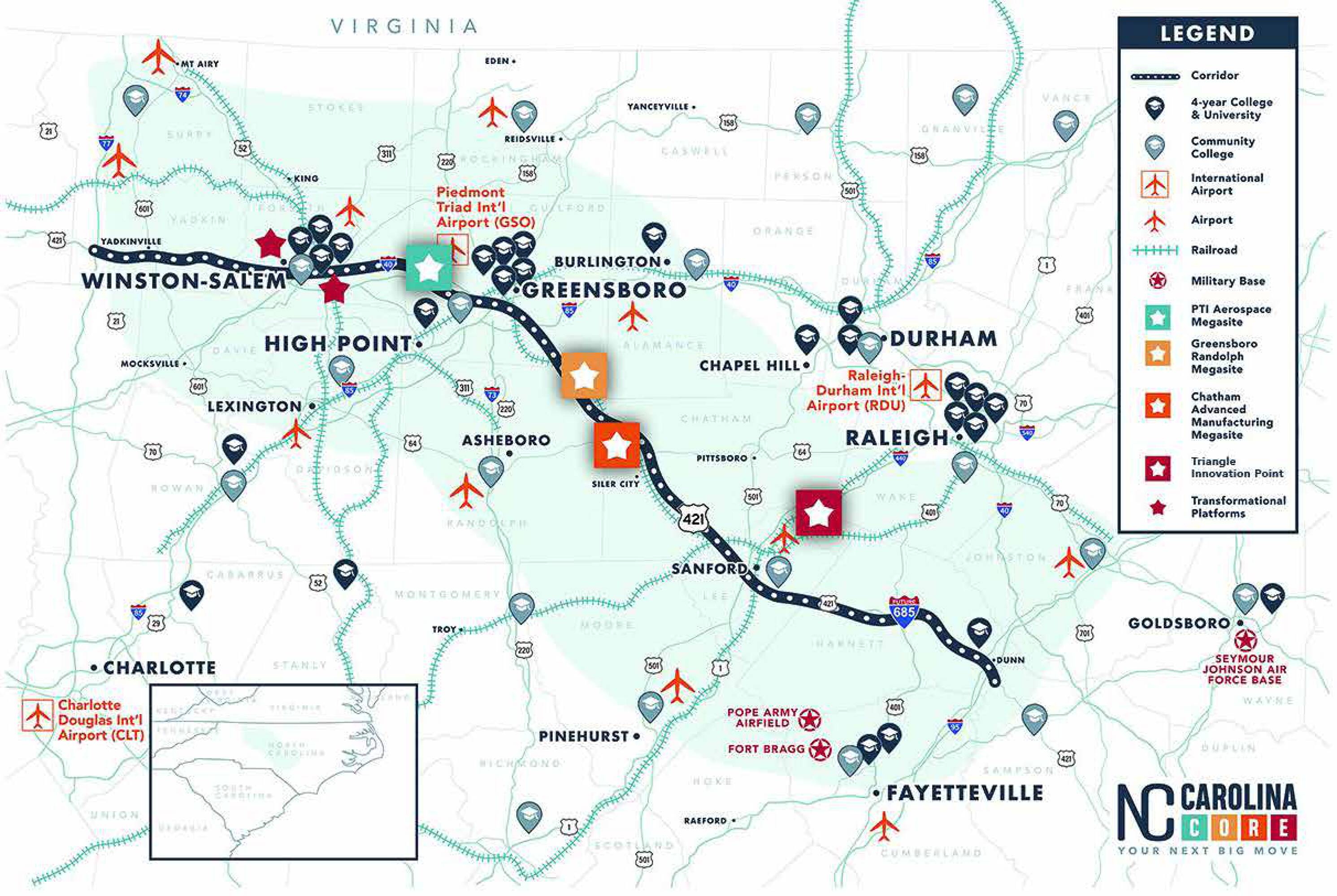 This property features: Large ±114.29‑acre industrial development opportunity in an Opportunity Zone.; Located at the US‑1 and Pea Ridge Road interchange with high traffic volume (33,500 VPD) and planned roadway improvements.; Proximity to VinFast (3 minutes), I‑540 (9 minutes), and Triangle Innovation Point (TIP) West (0.5 miles).