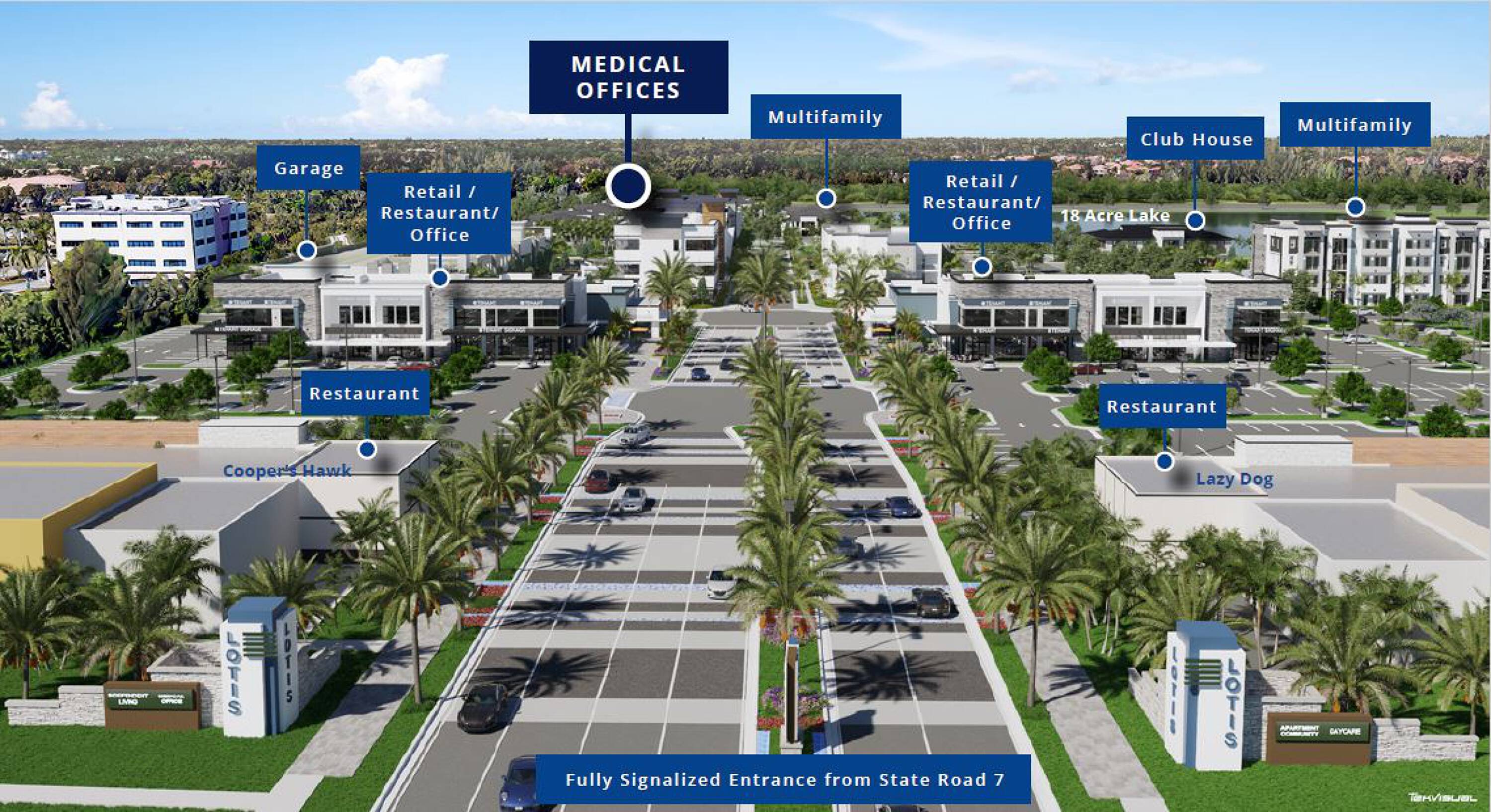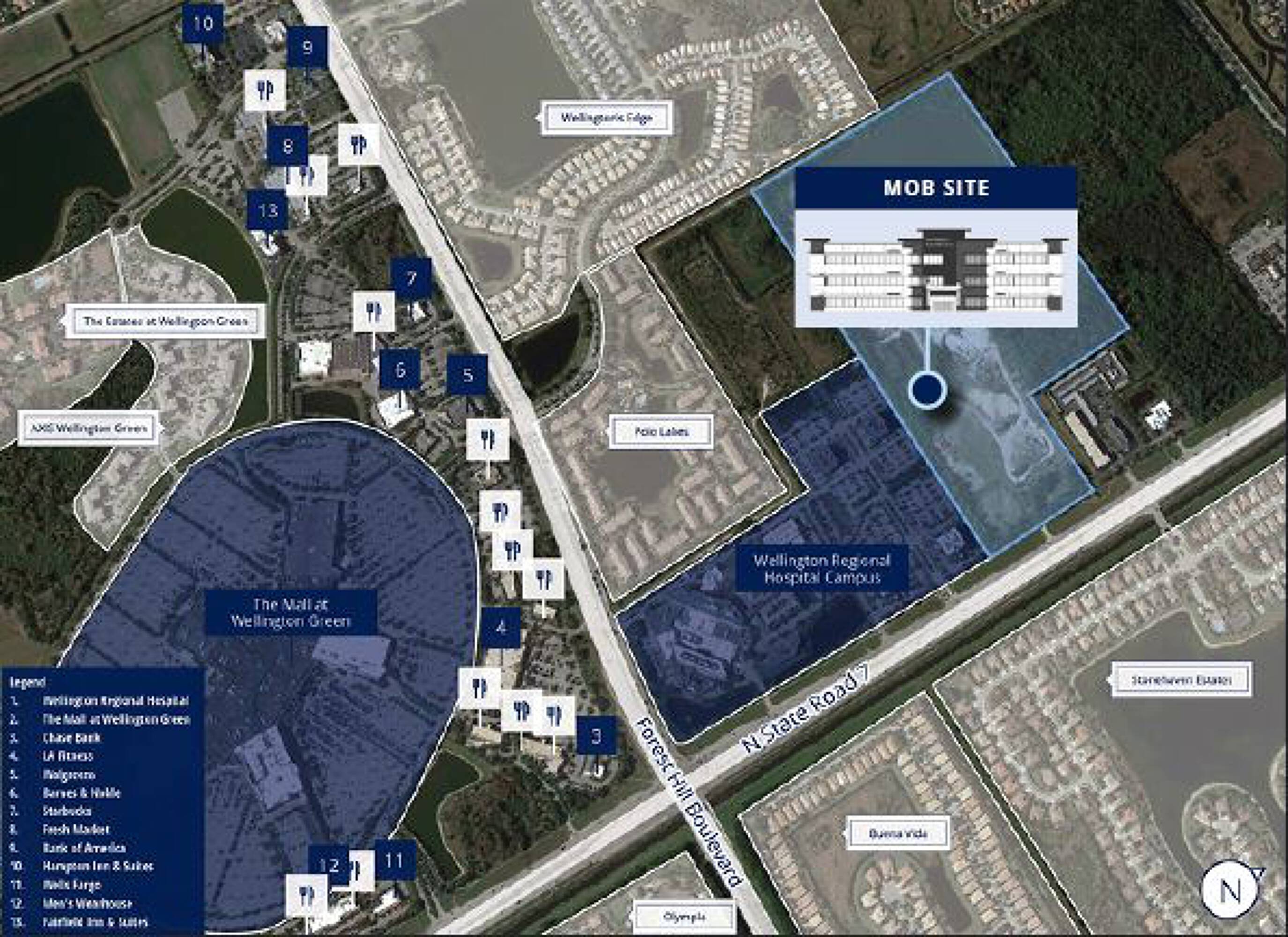 This property features: Approved for medical office development with **two 3‑story buildings totaling 60,000 sq ft**.; Located within the 115‑acre Lotis Wellington Master Development.; Strategically positioned on a fully signalized intersection with **prominent signage and visibility from South State Road 7**.