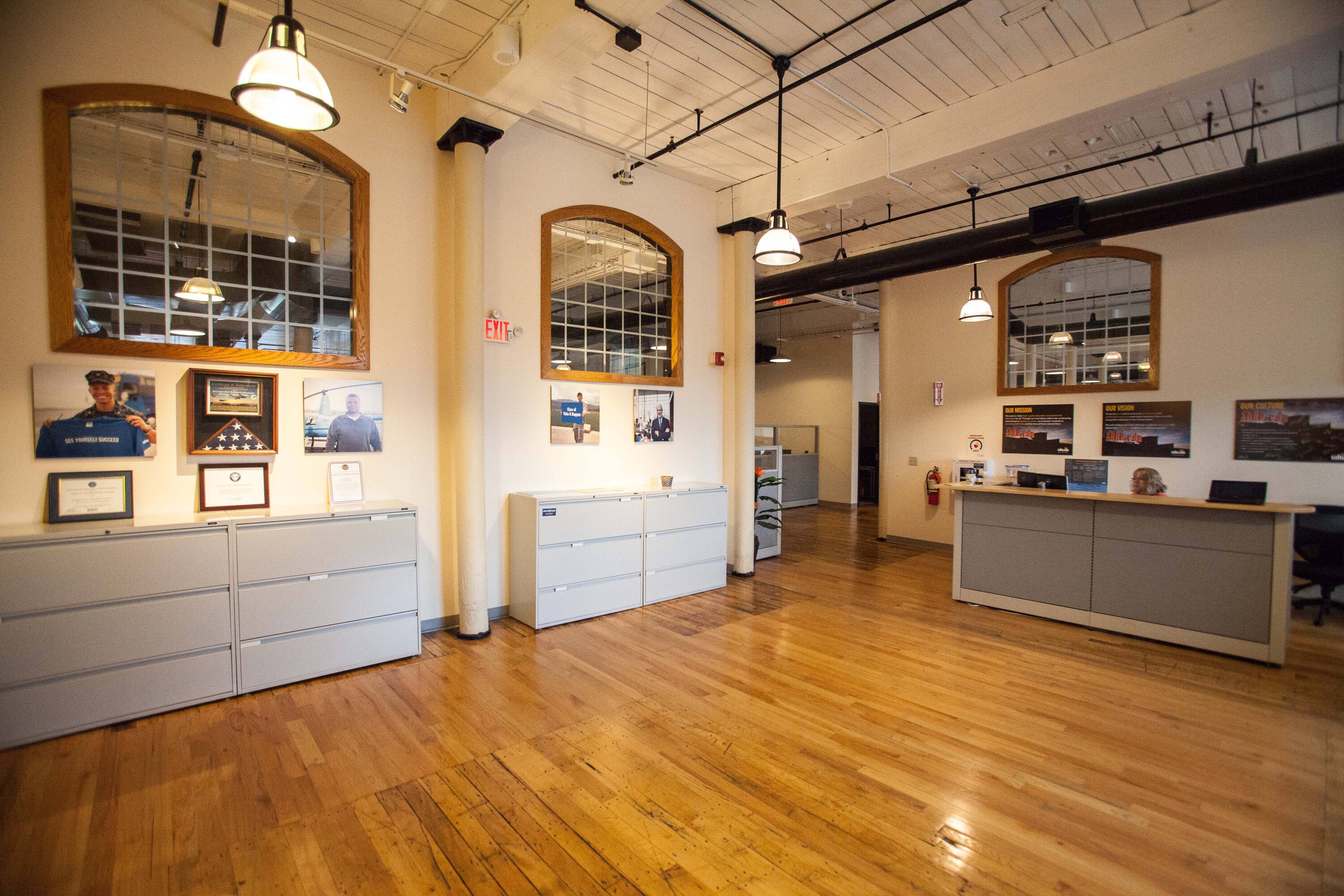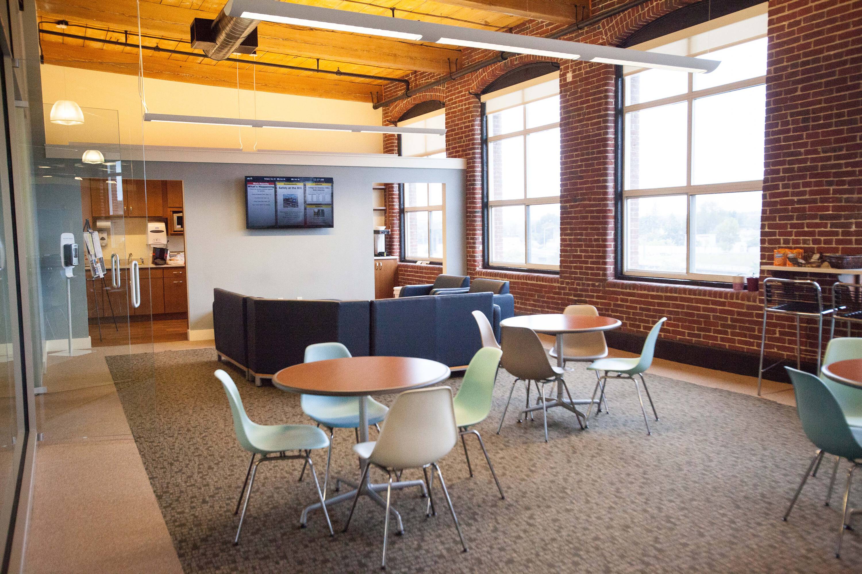 Office suites for lease in restored mill building.
