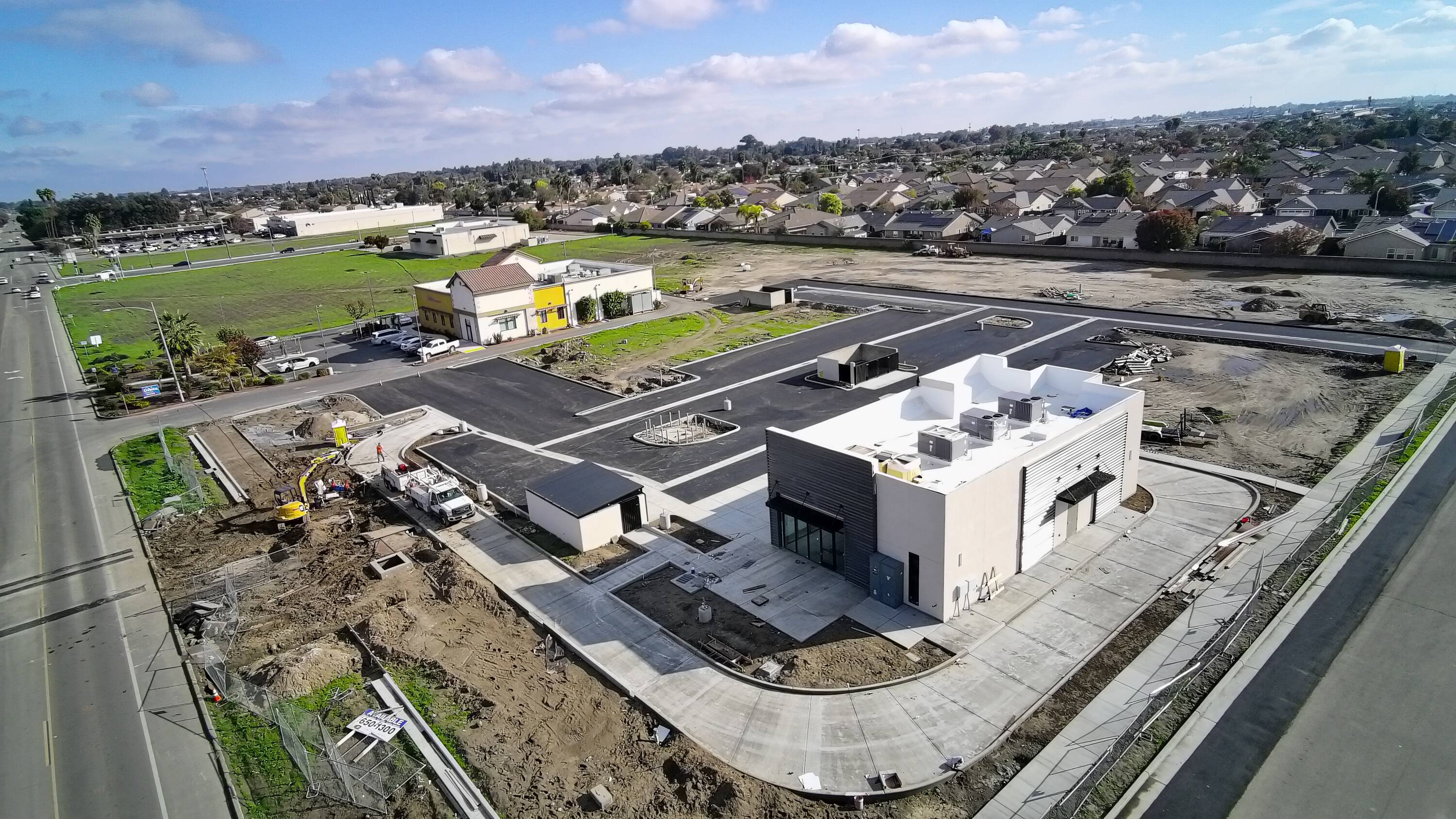 Drive-thru, shop space, and pads for lease near West Hills.