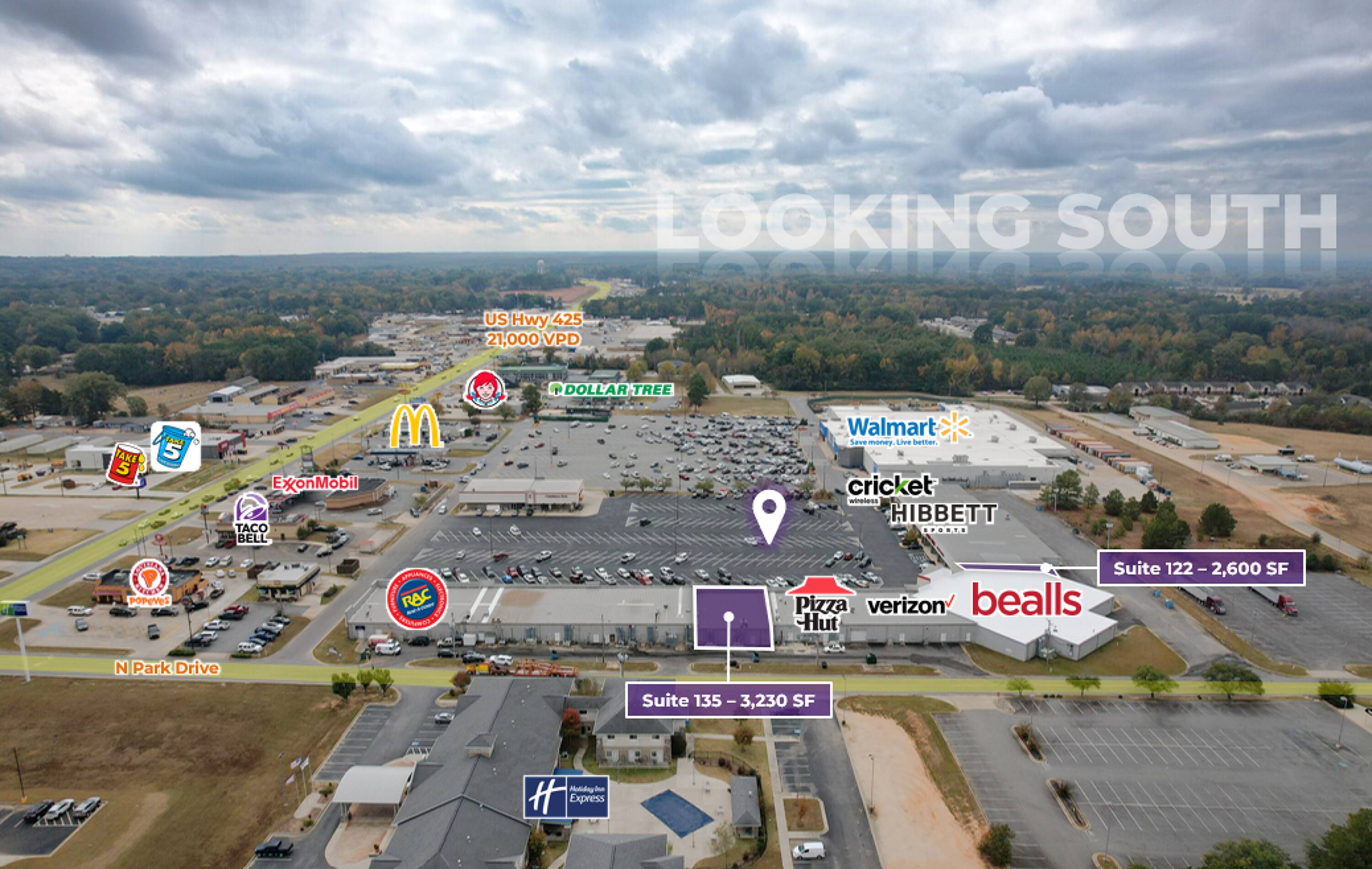 This property features: Walmart Shadow Center: Benefit from the high traffic generated by a major anchor tenant.; #1 Most Visited Shopping Center: Attracts 3.4 million visitors annually, indicating strong customer flow.; High Traffic Location: Situated off U.S. Hwy 425 with 21,000 vehicles per day (VPD).