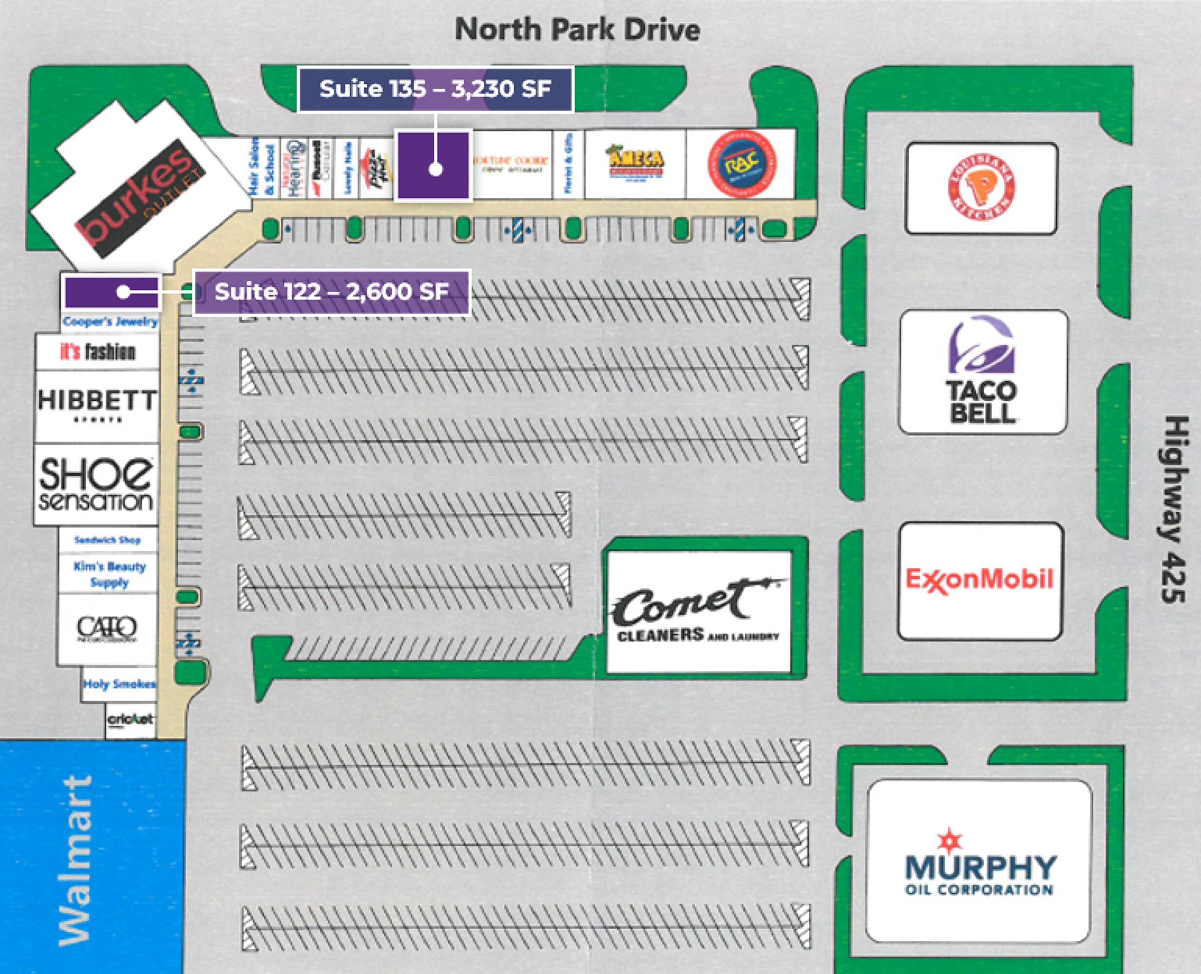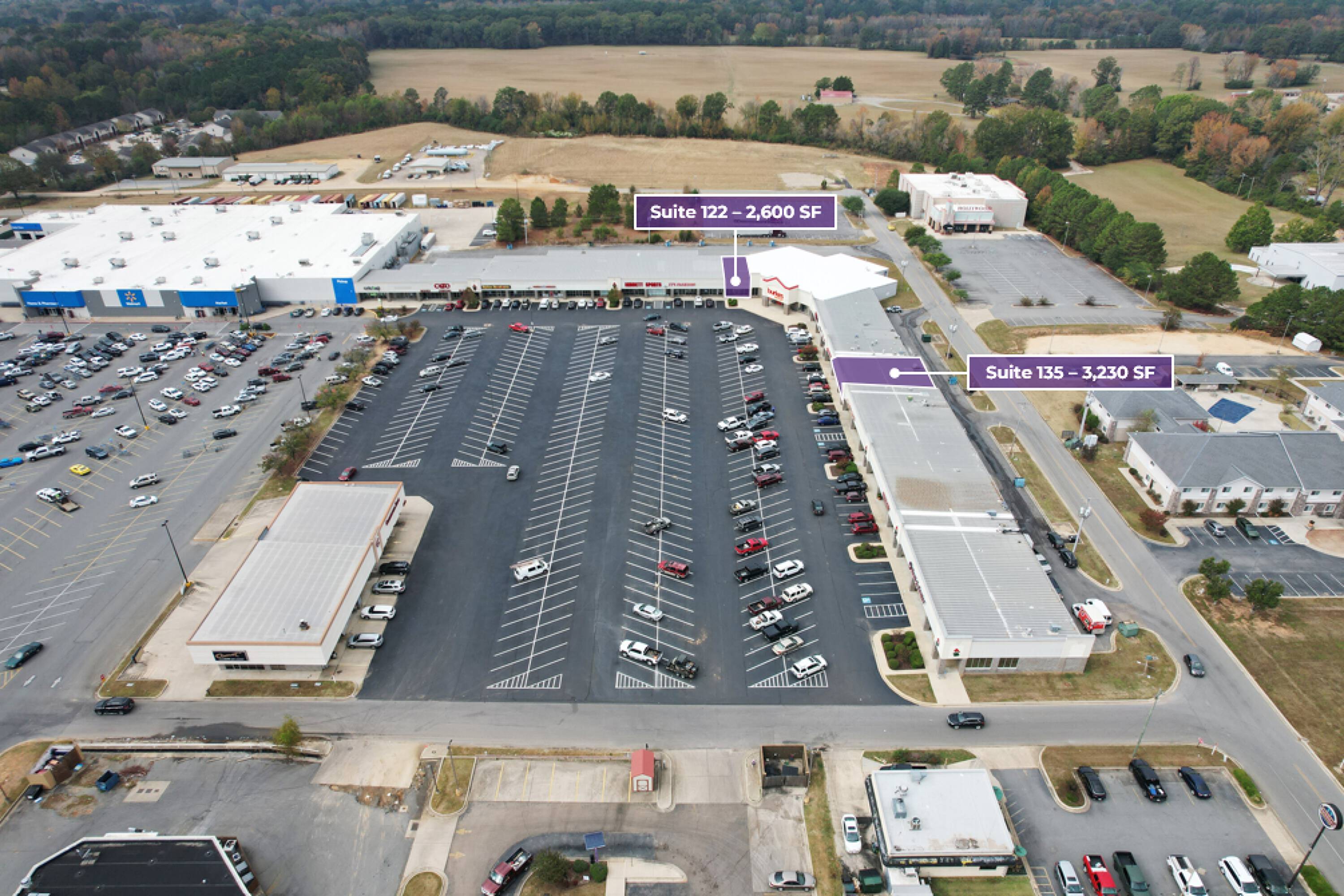 Retail spaces in high-traffic shopping center near U.S. Hwy 425.