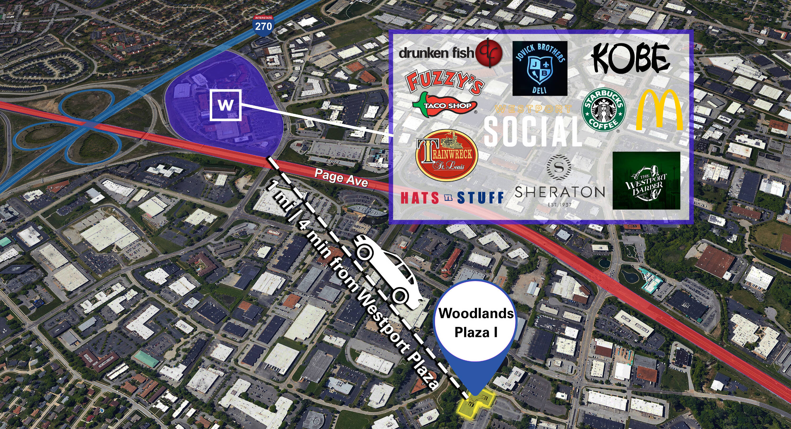 This property features: Prime location near the junction of I‑270 and Page Avenue, providing easy access from all parts of St. Louis and St. Charles.; Proximity to Lambert‑St. Louis International Airport.; Large 42‑acre district.
