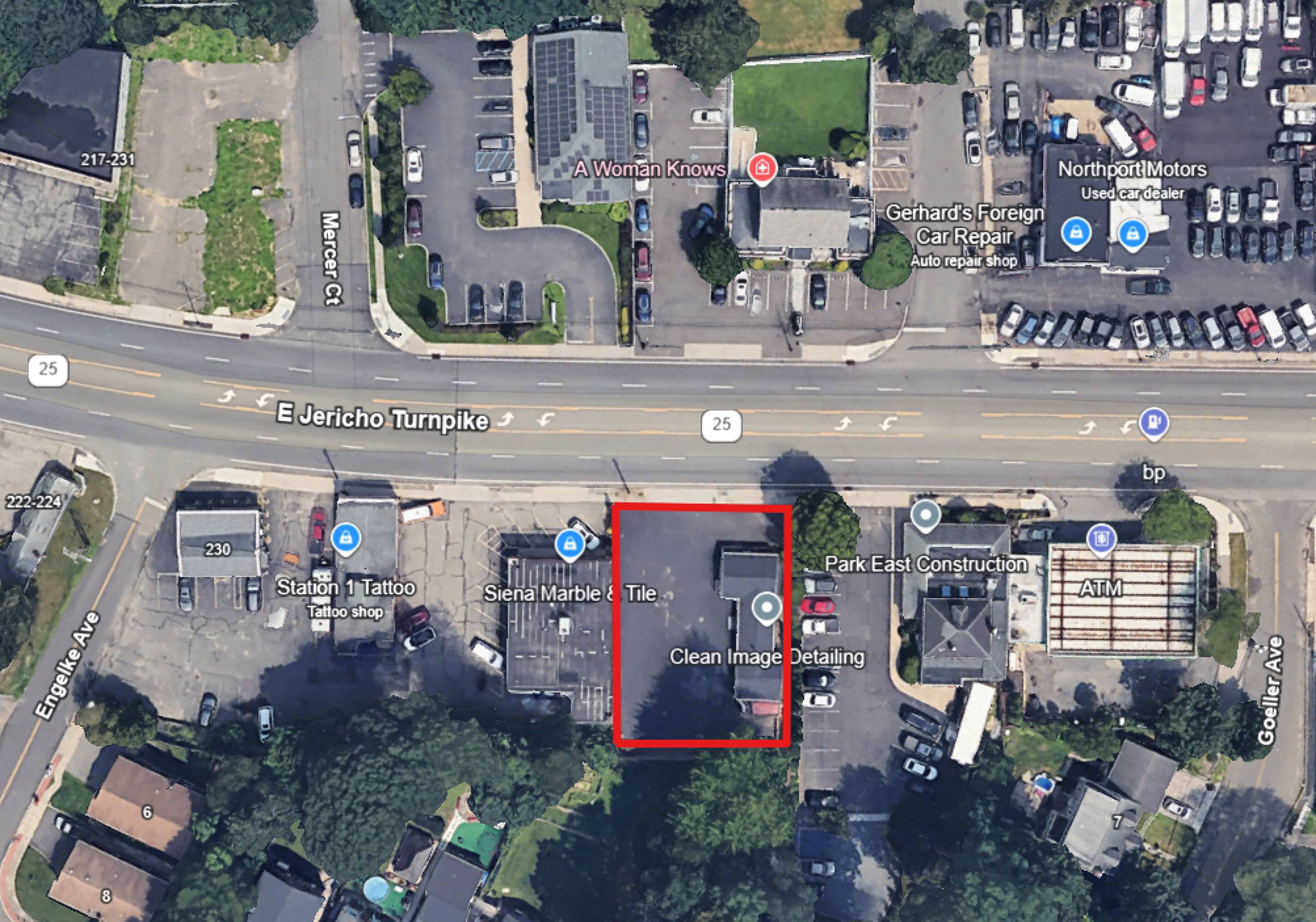 Retail shops on Jericho Turnpike with mixed-use potential.