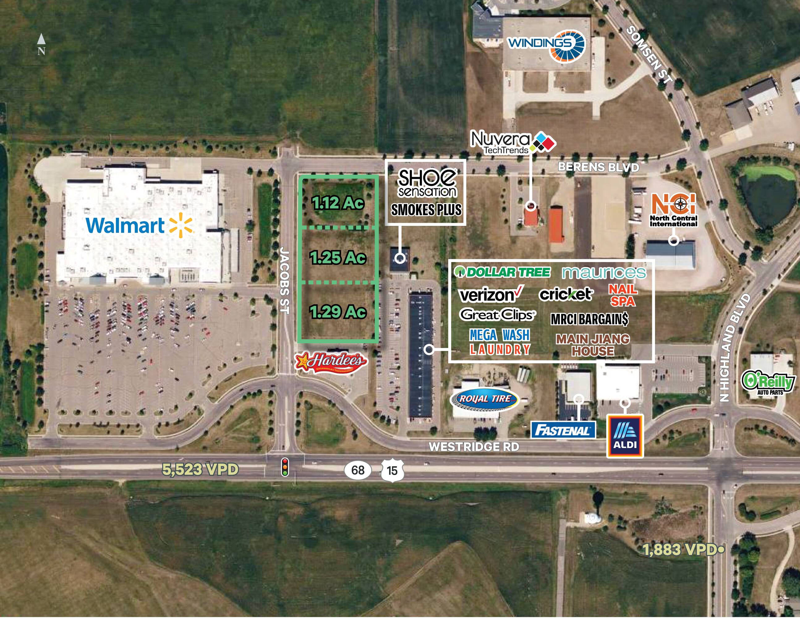 Land parcels available for lease in a high-traffic retail area.