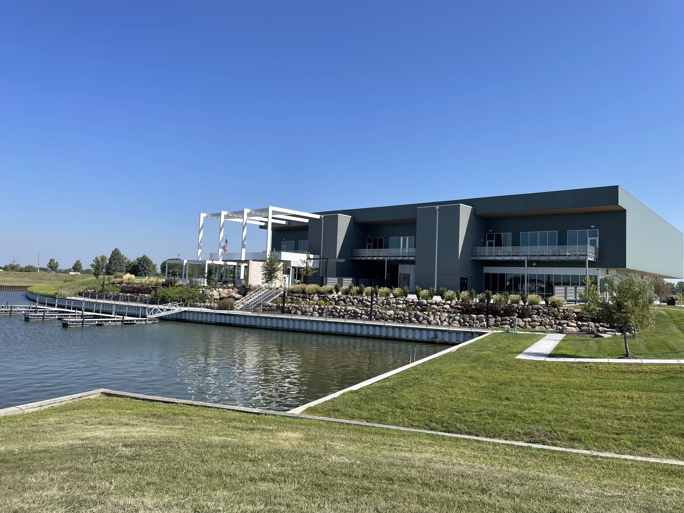Retail suites are available for rent within a new event center. The location offers views overlooking the water.