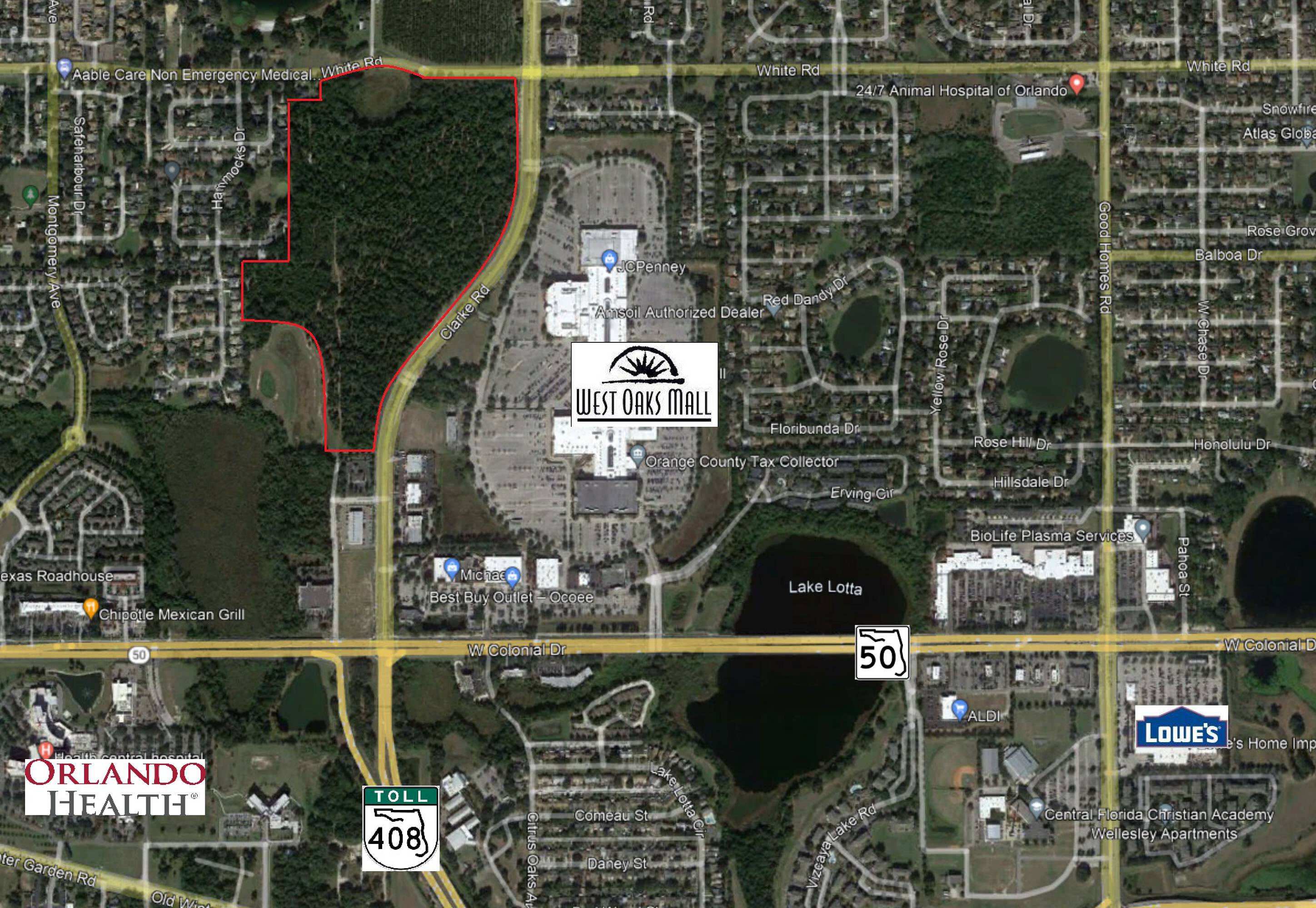 Two commercial lots totaling 69.28 acres in Ocoee, Florida.