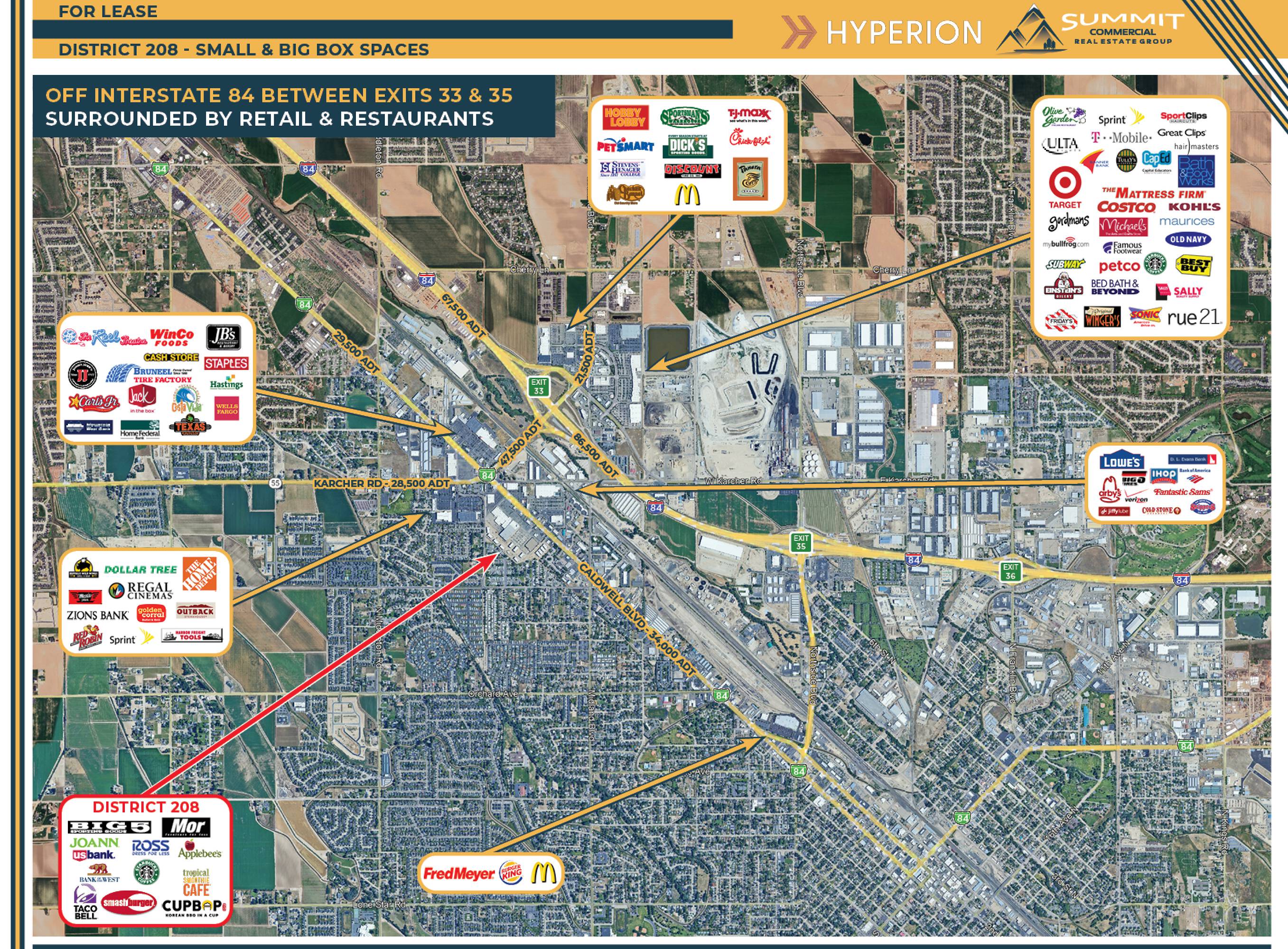Flexible retail, restaurant, and office spaces for lease.