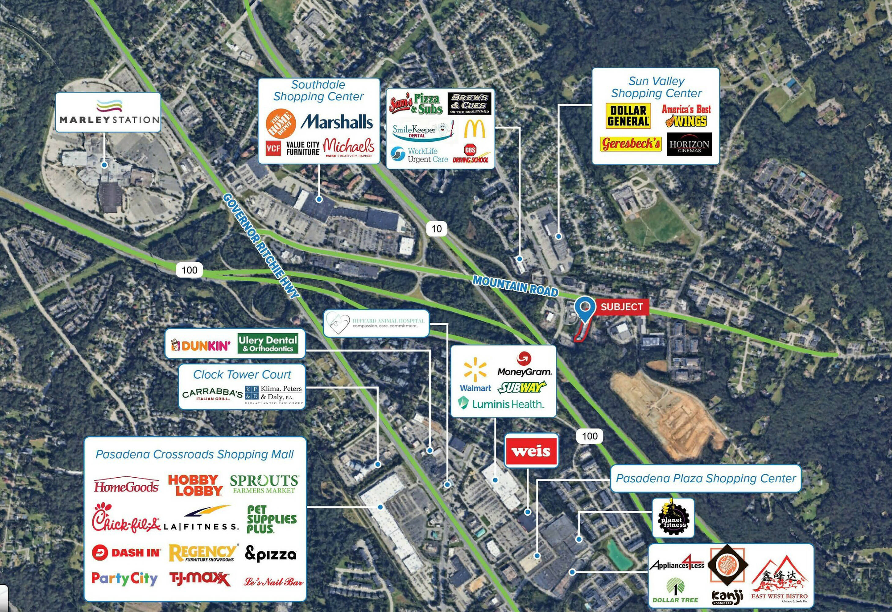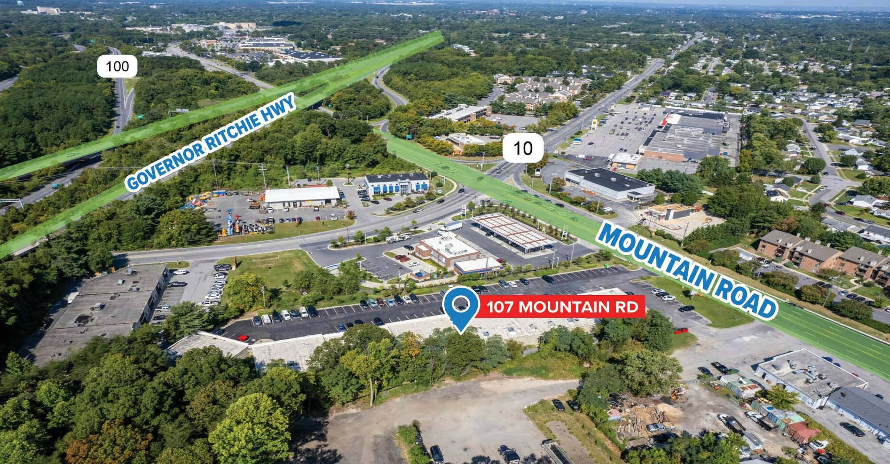The retail space at 107 Mountain Rd, Pasadena, MD, 21122, benefits from a prime location, ample parking, and high visibility. Situated in a high-density market, the property experiences strong traffic counts. It offers convenient access to MD Rt. 10, Rt. 2, and Baltimore Annapolis Boulevard.
