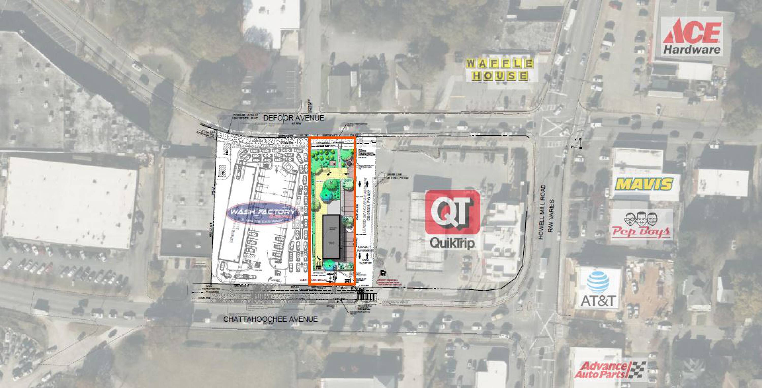 This commercial land is located in the Upper Westside area and is ready for development. The property shares a common access driveway with a QuikTrip, connecting Defoor Ave to Chattahoochee Ave. Drive-thru use has been approved via a SAP permit, and permit drawings are available. The zoning is MRC-2. An adjacent car wash is currently under development.
