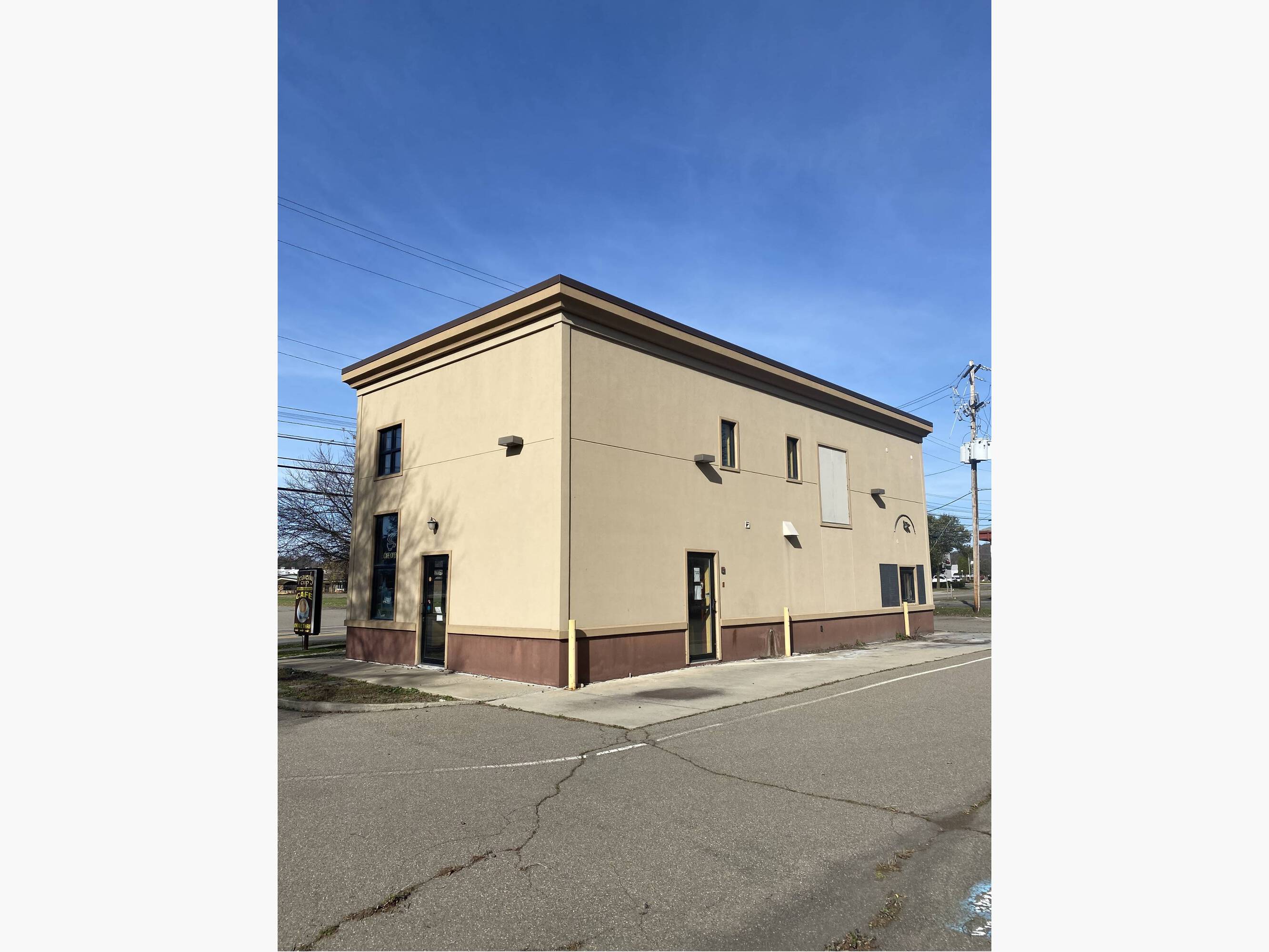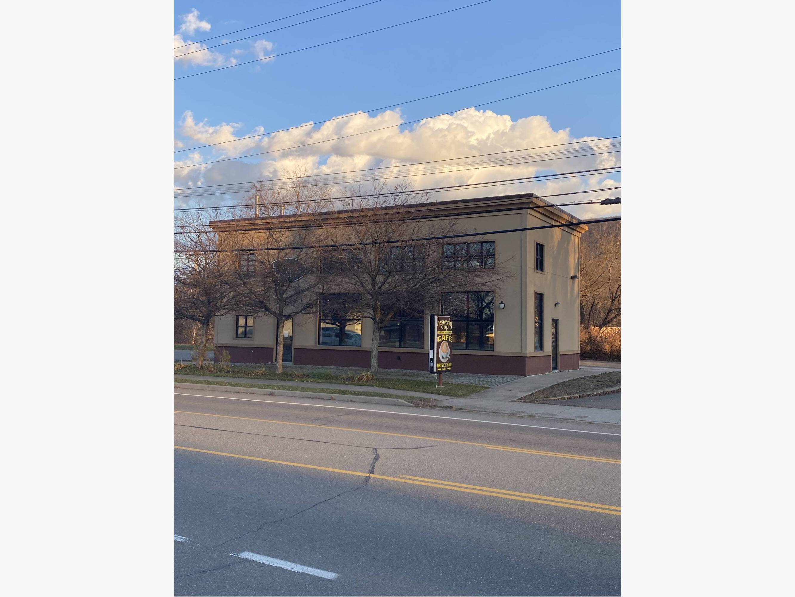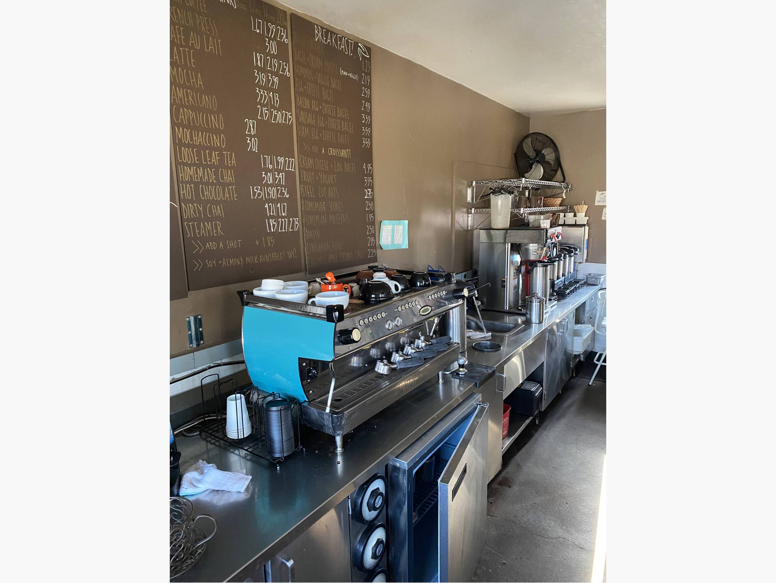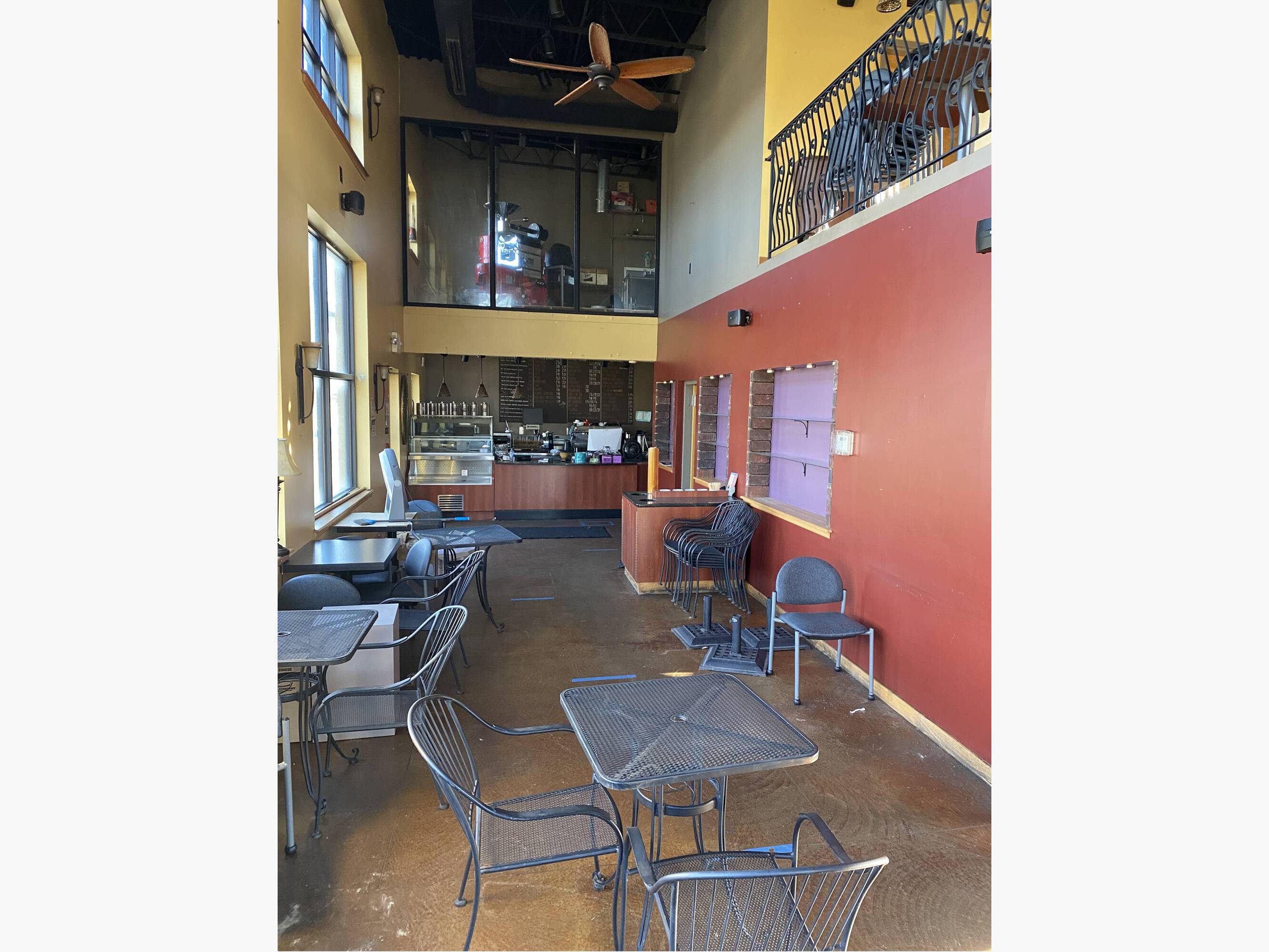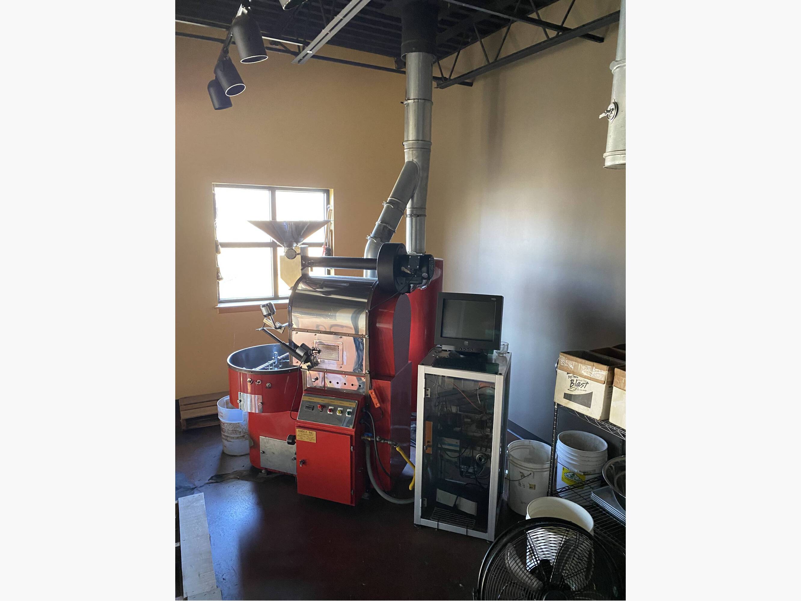 Equipped coffee shop with roasting and drive-up window.