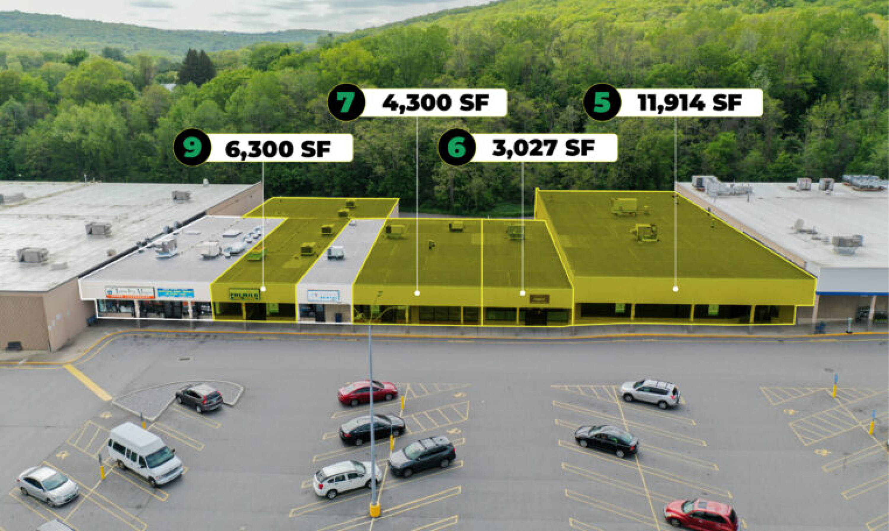 Retail, medical, or restaurant spaces available for lease.