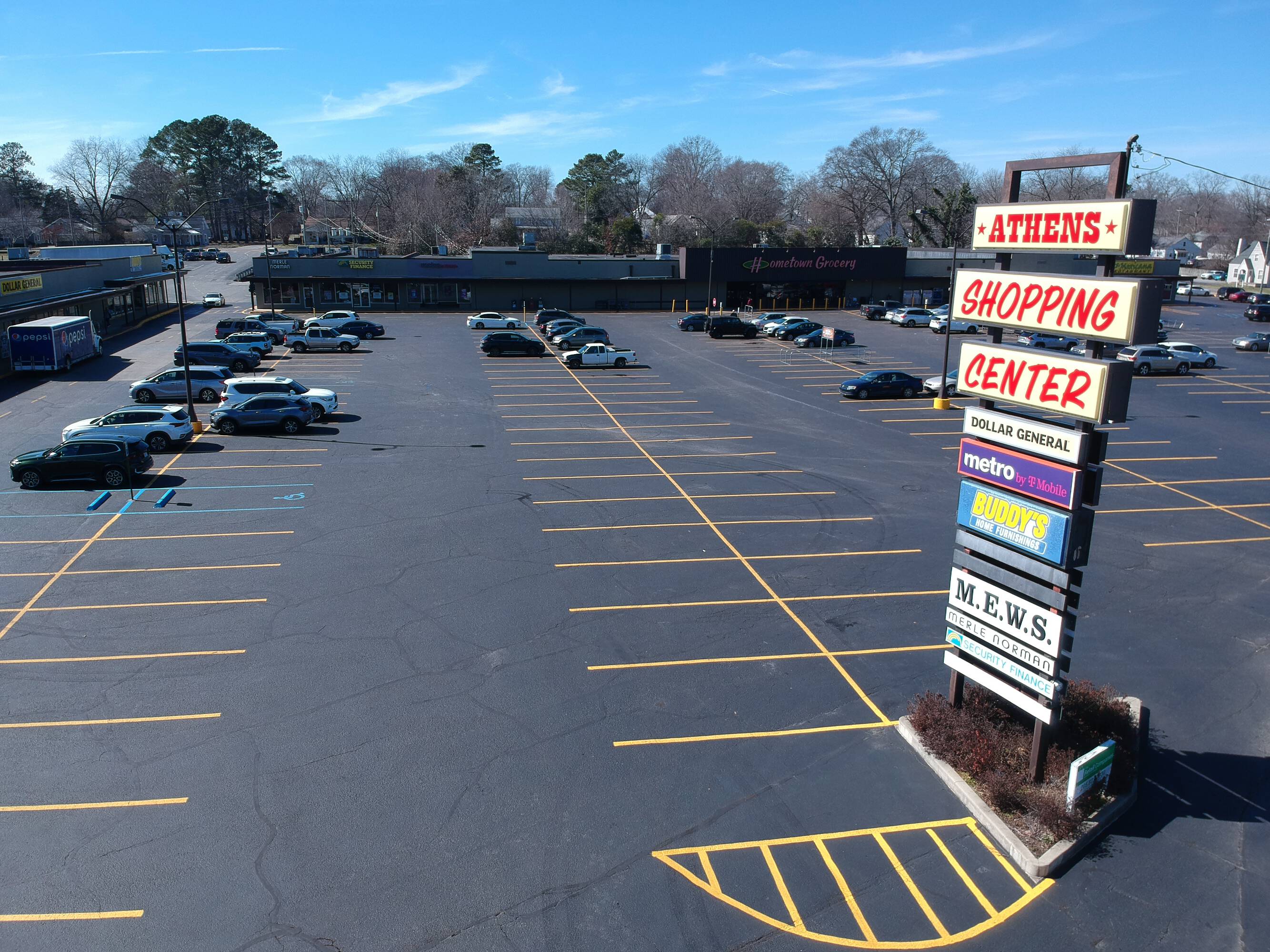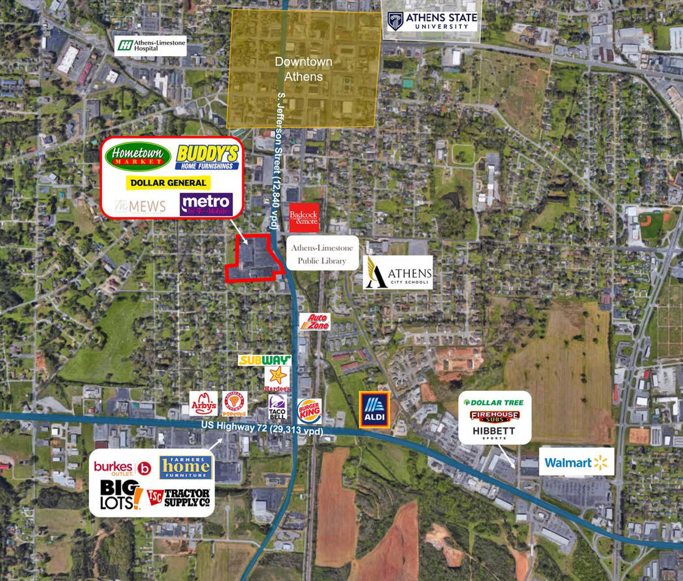 Grocery-anchored shopping center in Athens, Alabama available for rent.