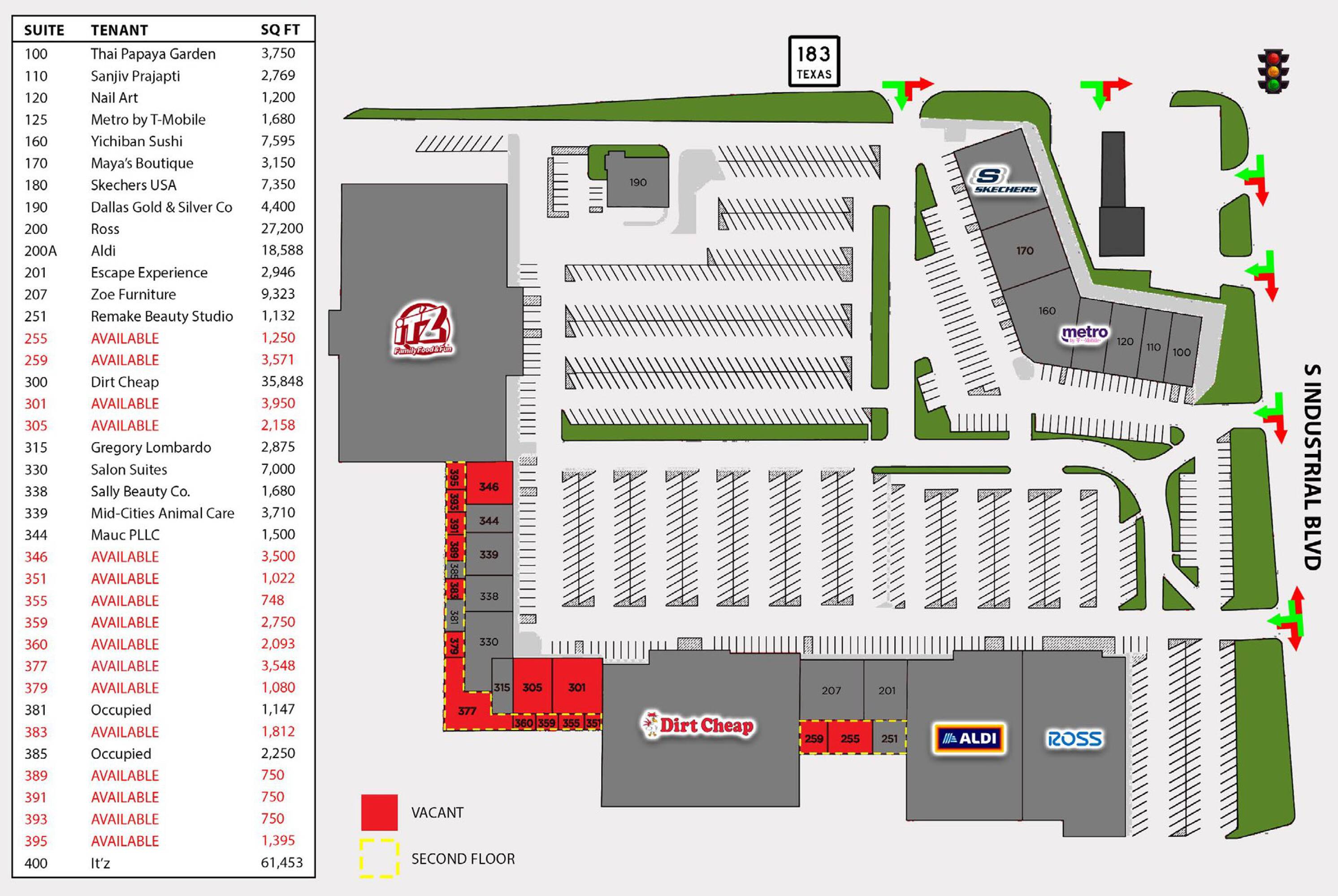 This property features: Anchored by Aldi, Ross, Sketchers, & T‑Mobile; Retail center location; 1st and 2nd floor suites available