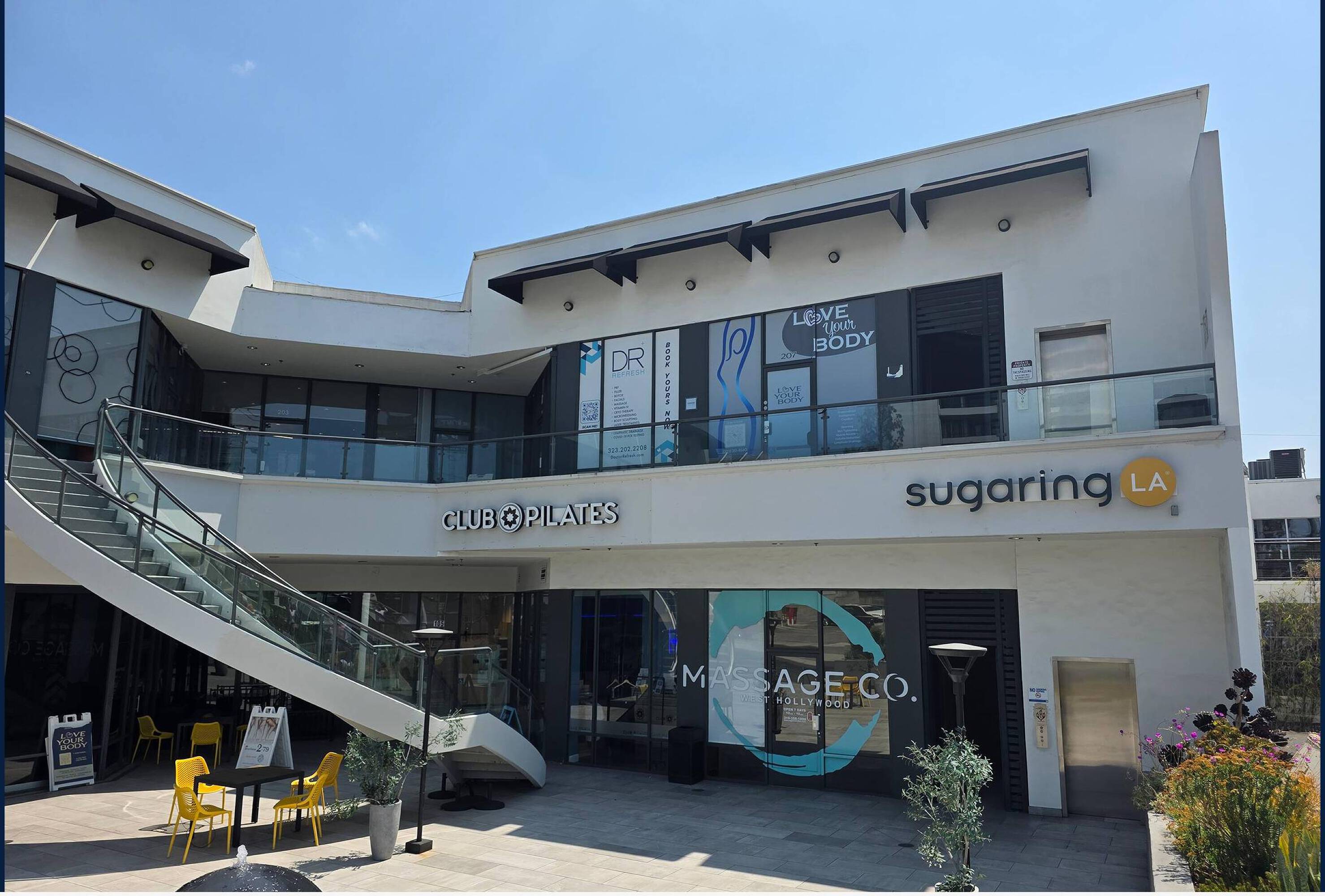 Two-story open-air shopping center in the heart of West Hollywood.