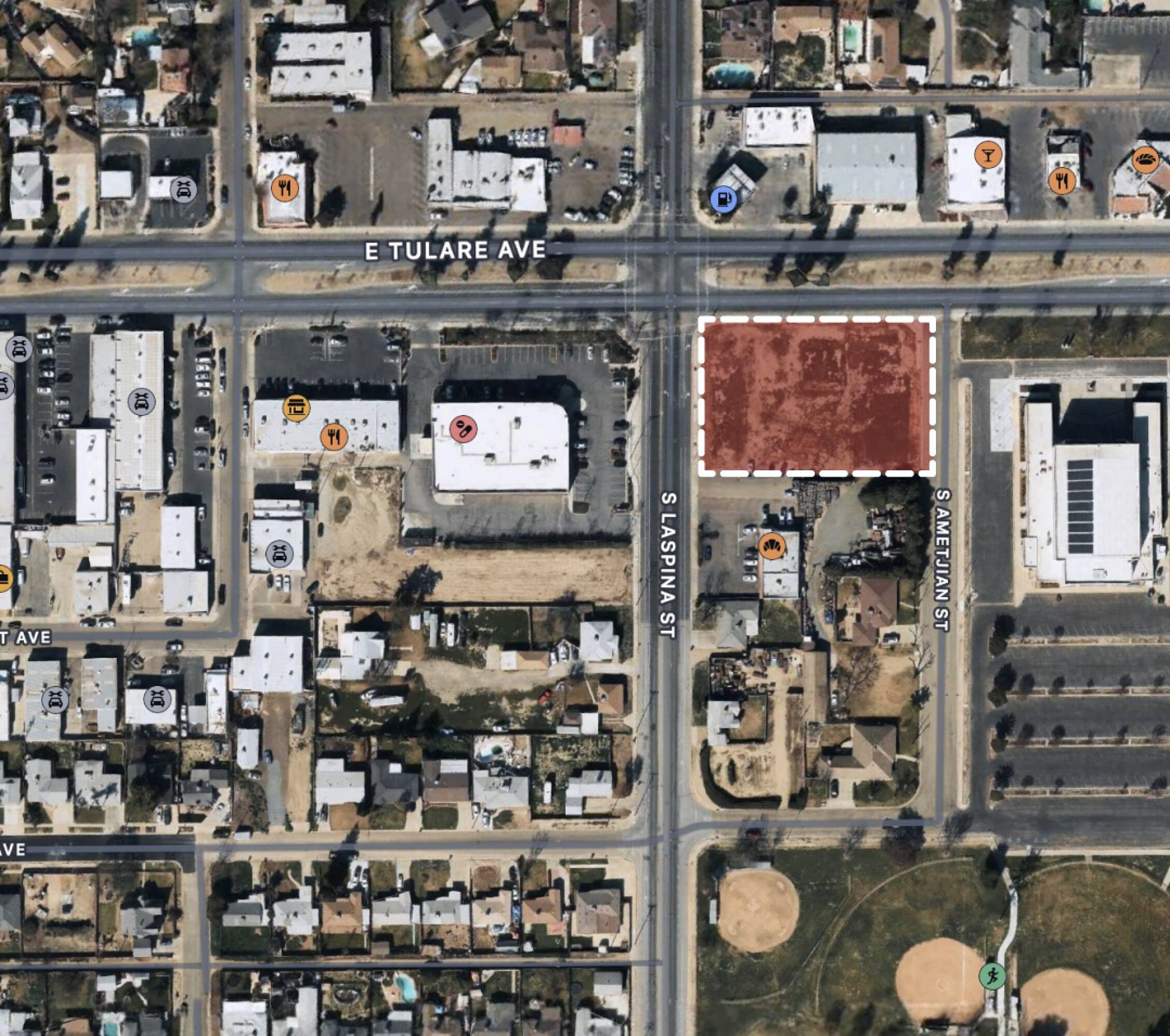 Development opportunity with excellent visibility and access on Tulare Avenue.