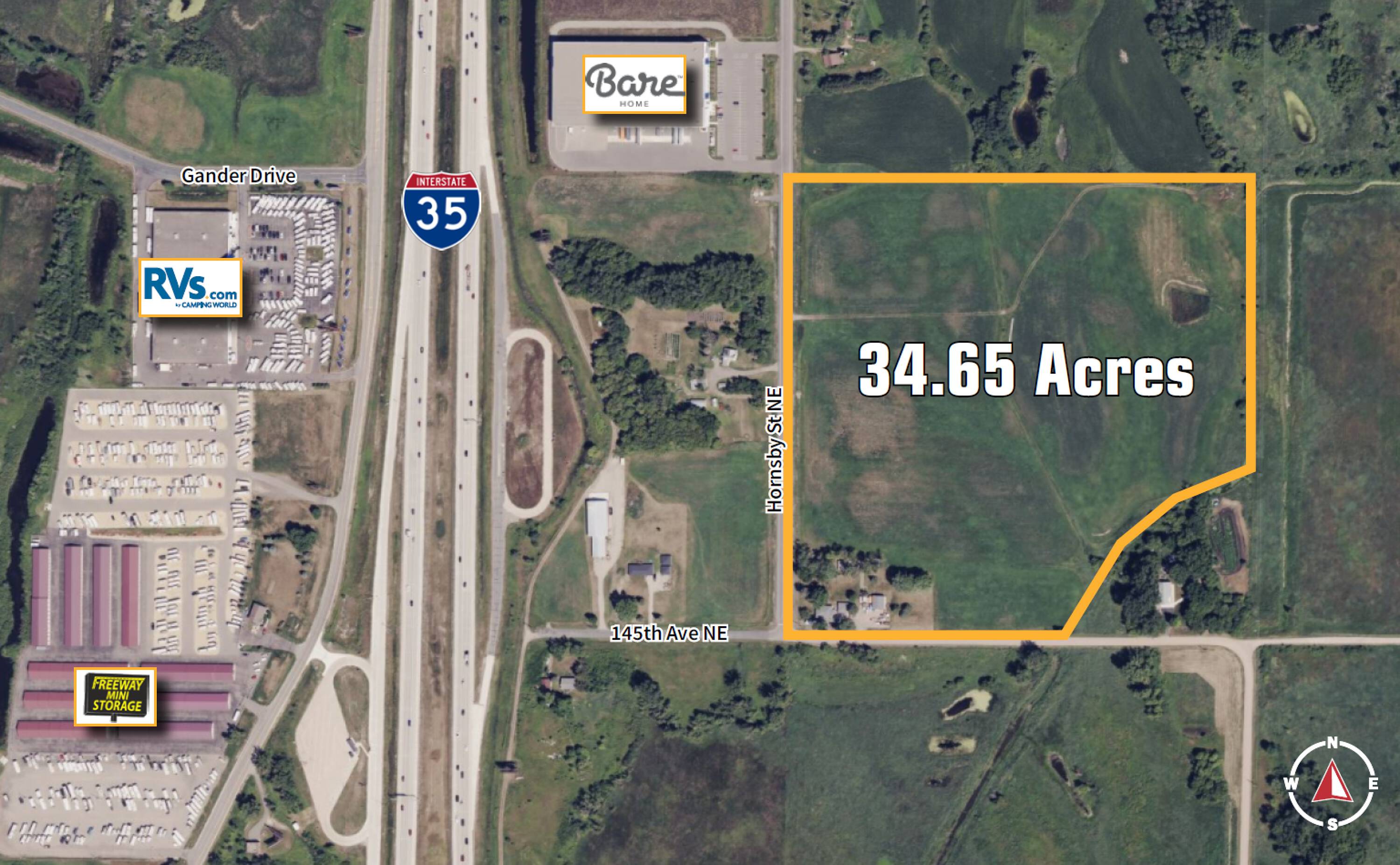 34 acres of general business-zoned land in Forest Lake, MN.