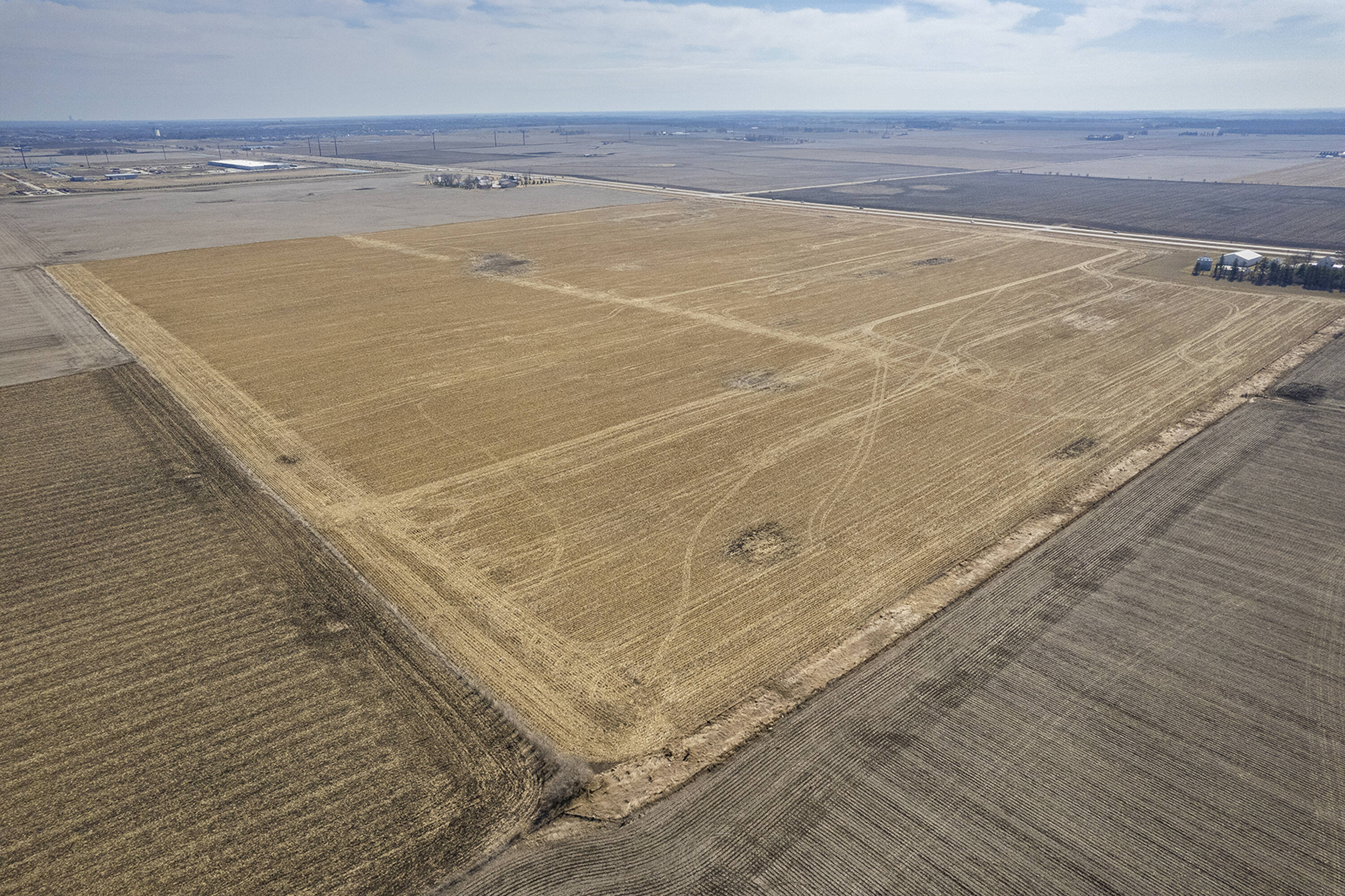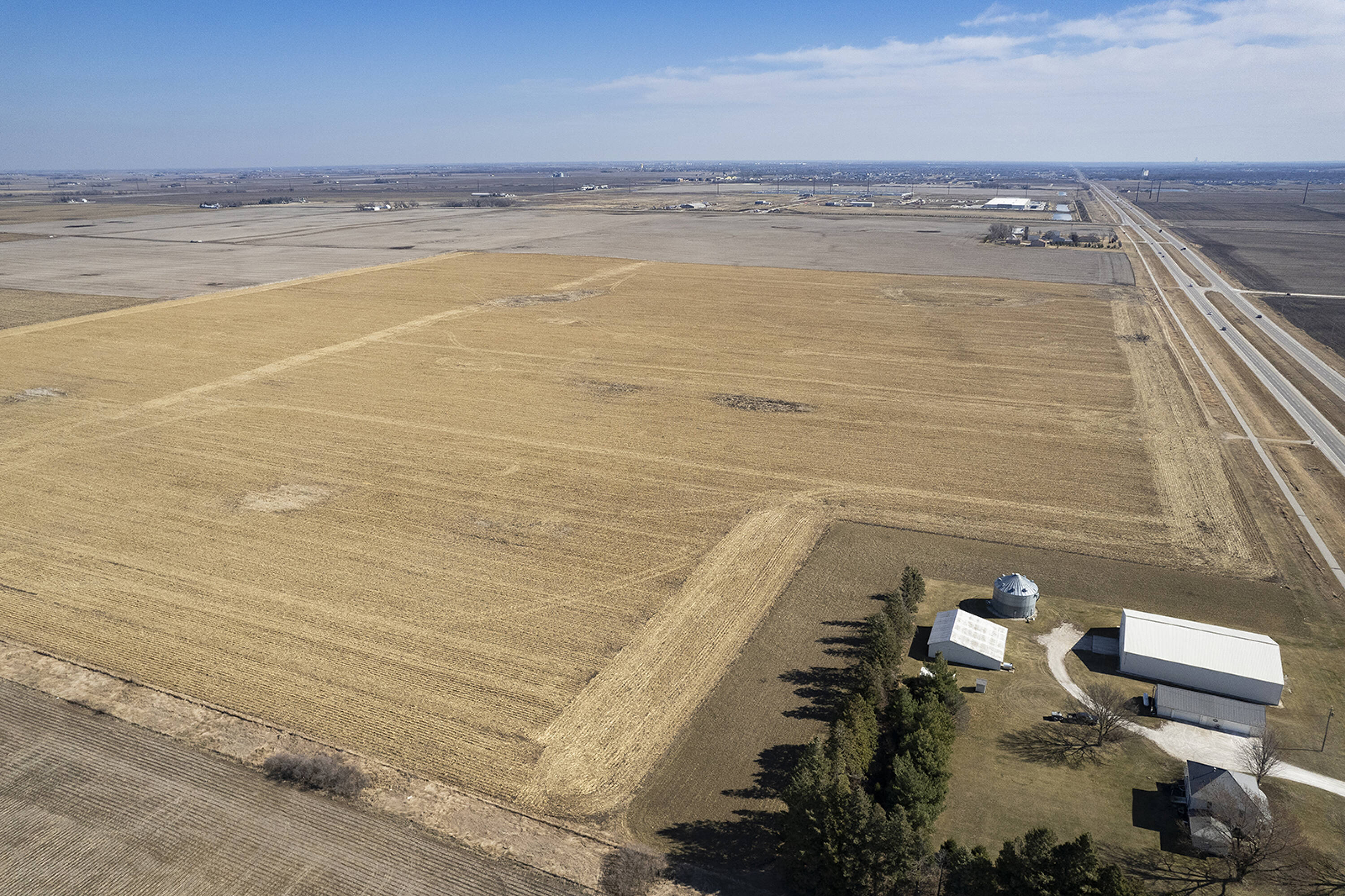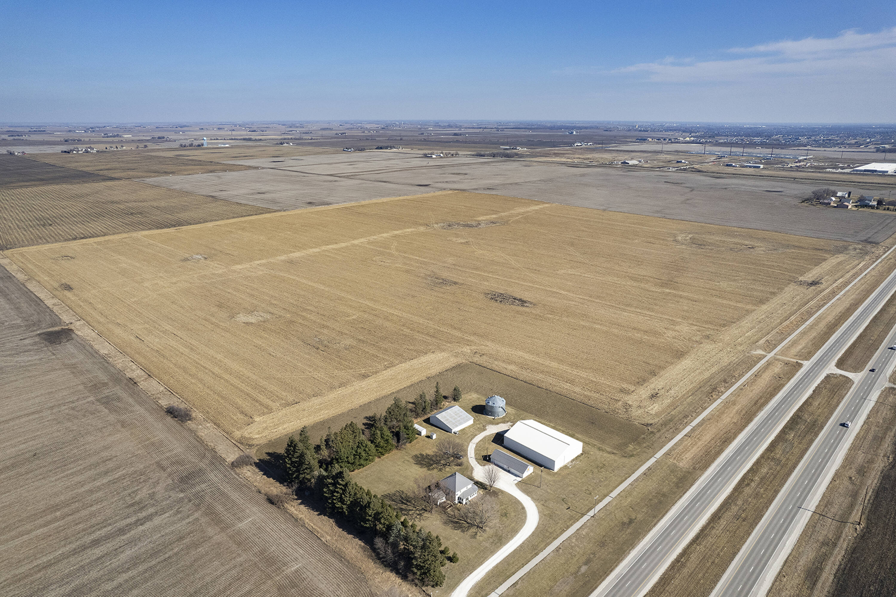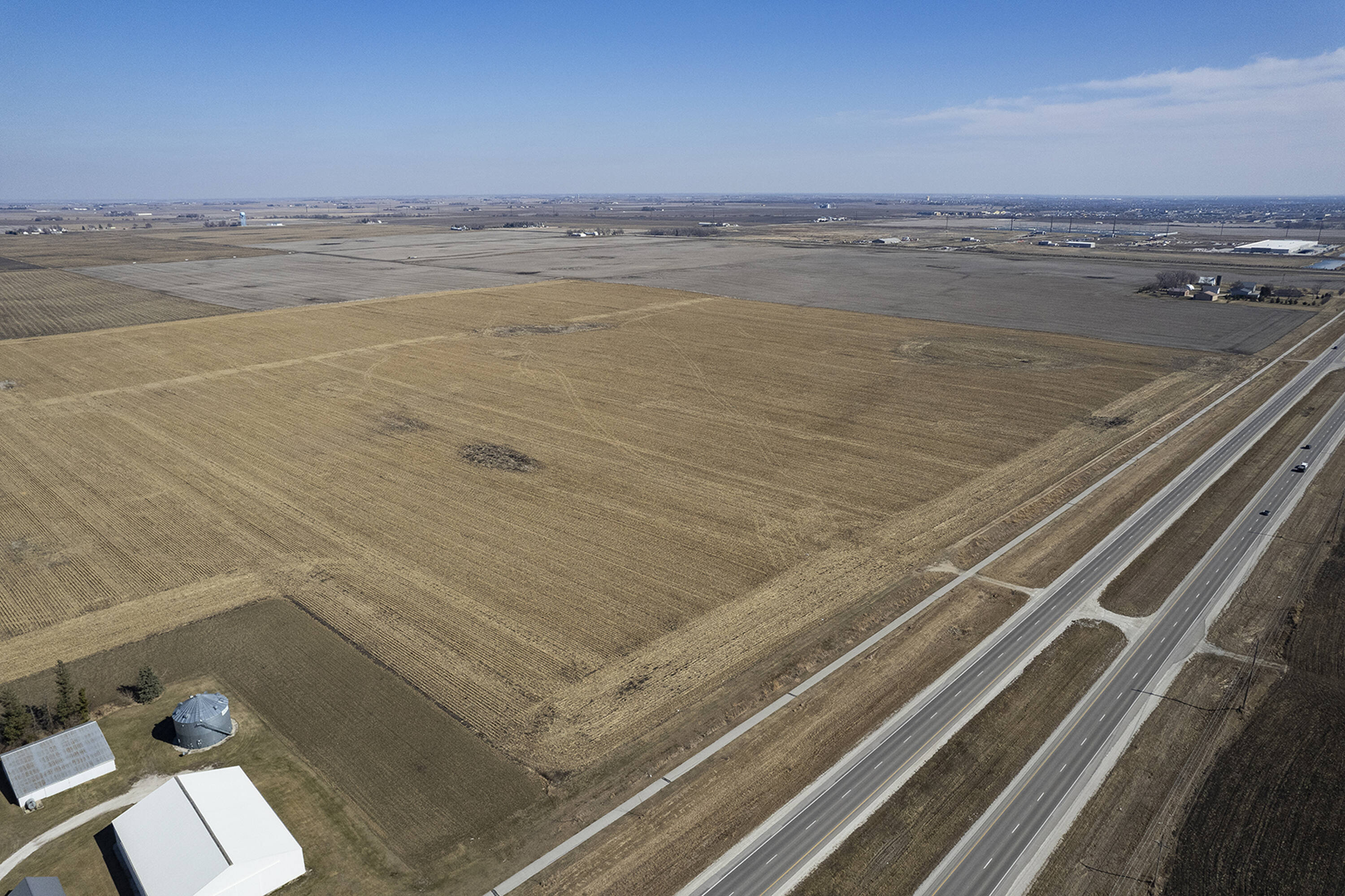 Land with highway frontage suitable for development in Waukee, Iowa.