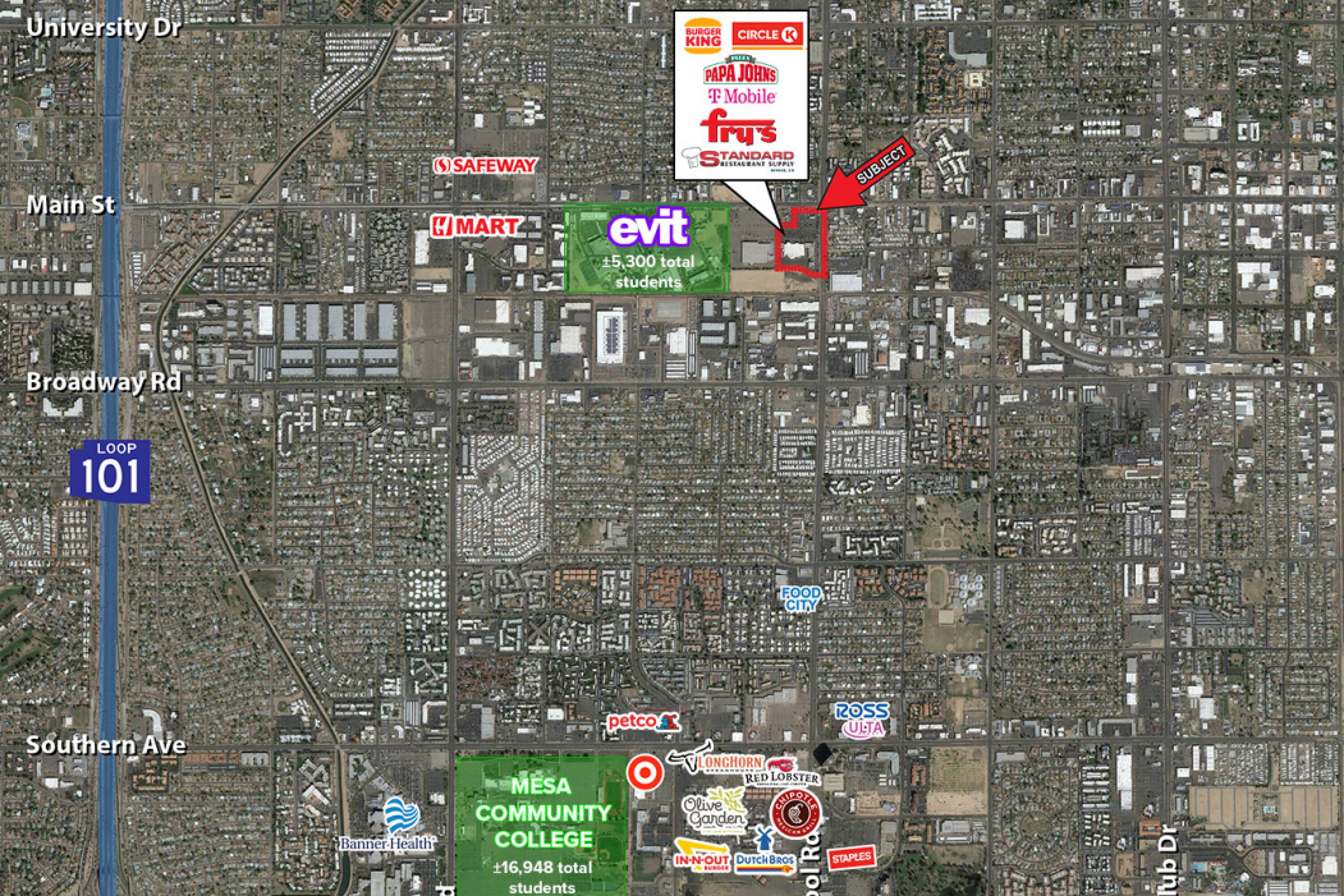 The property is located at Southwest Corner of Main Street and Alma School Road Mesa, AZ.