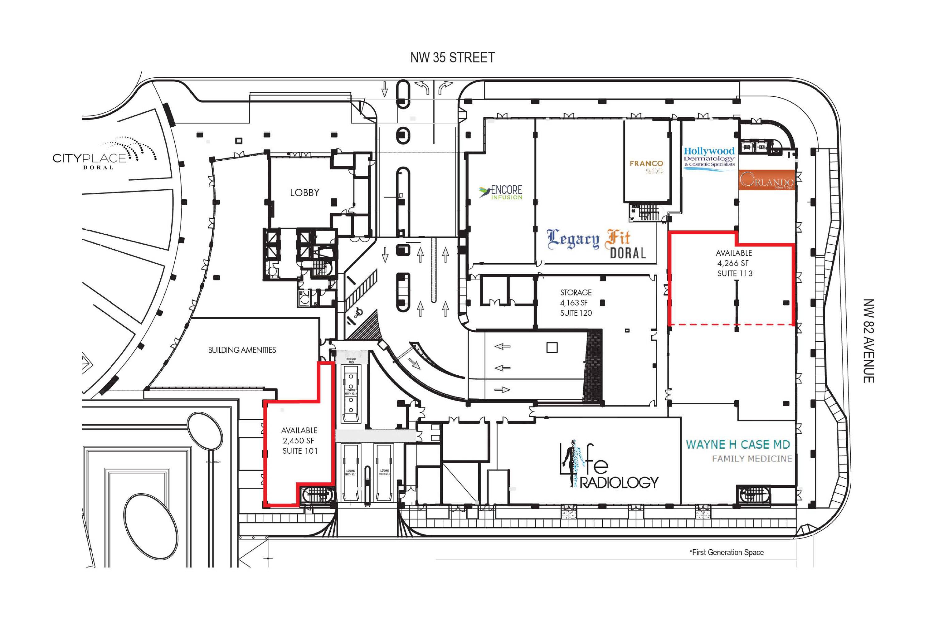 Commercial space available for lease in Doral, Florida.