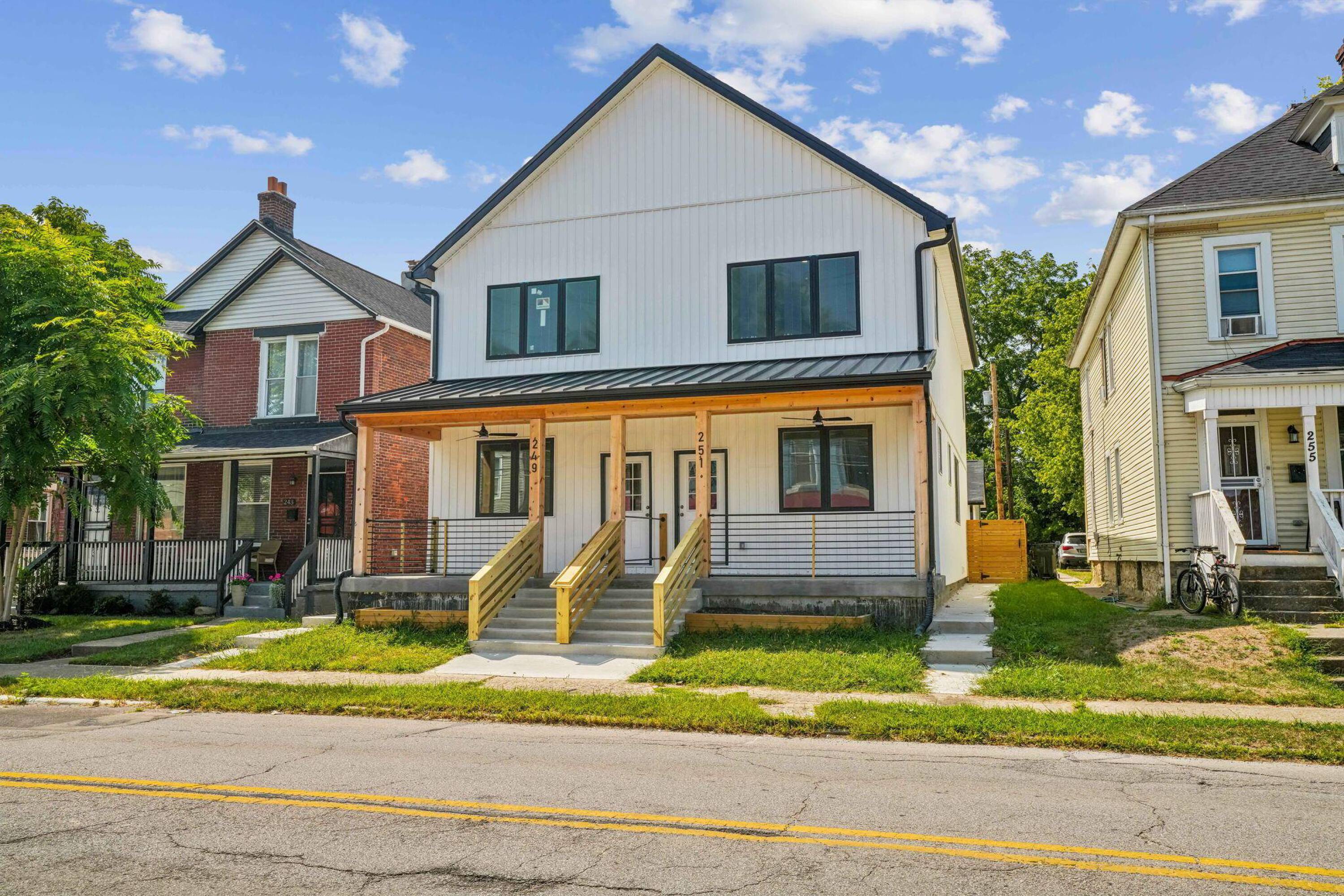 New duplex featuring finished basements, modern kitchens, and detached garages.
