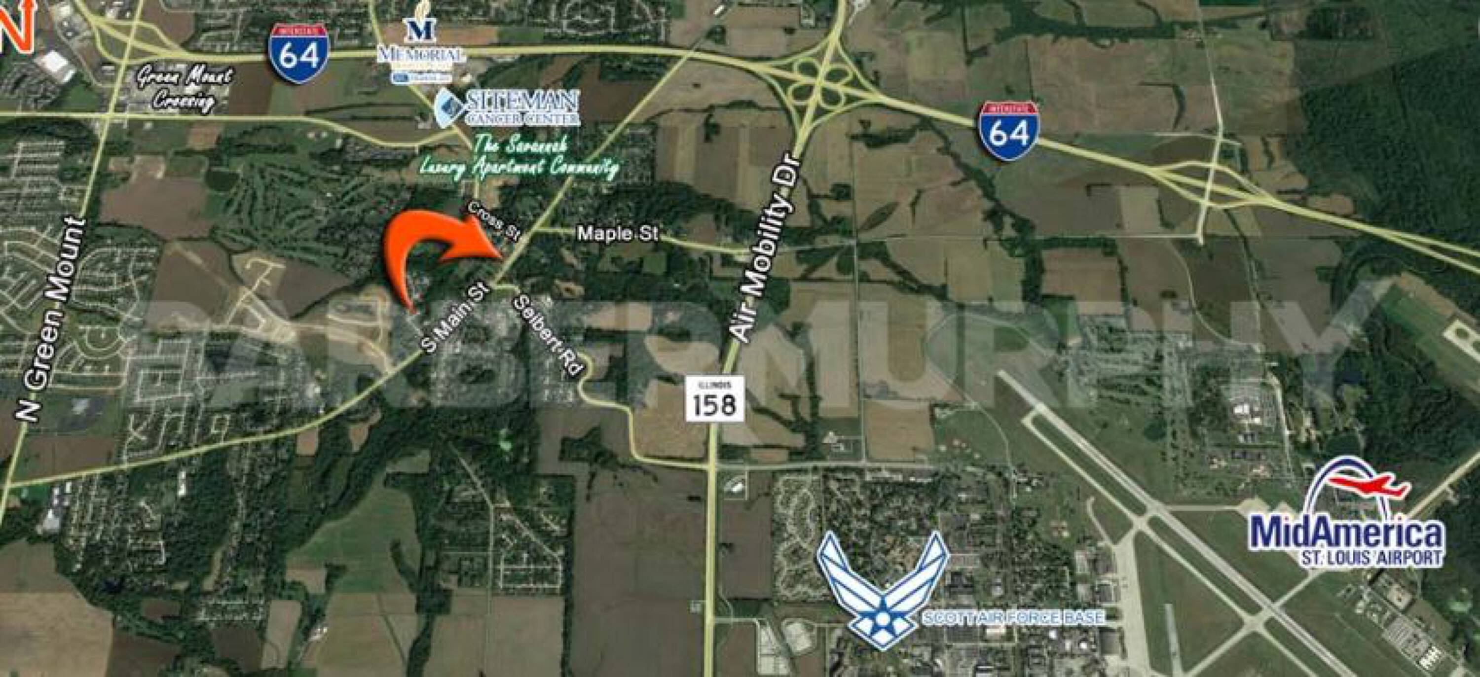 This property features: Excellent location on Main St. in Shiloh with high traffic (10,100 ADT).; Approved strip center plan for the one‑acre commercial lot.; Proximity to Scott Air Force Base (SAFB), Memorial East Hospital, and the future Siteman Cancer Center.
