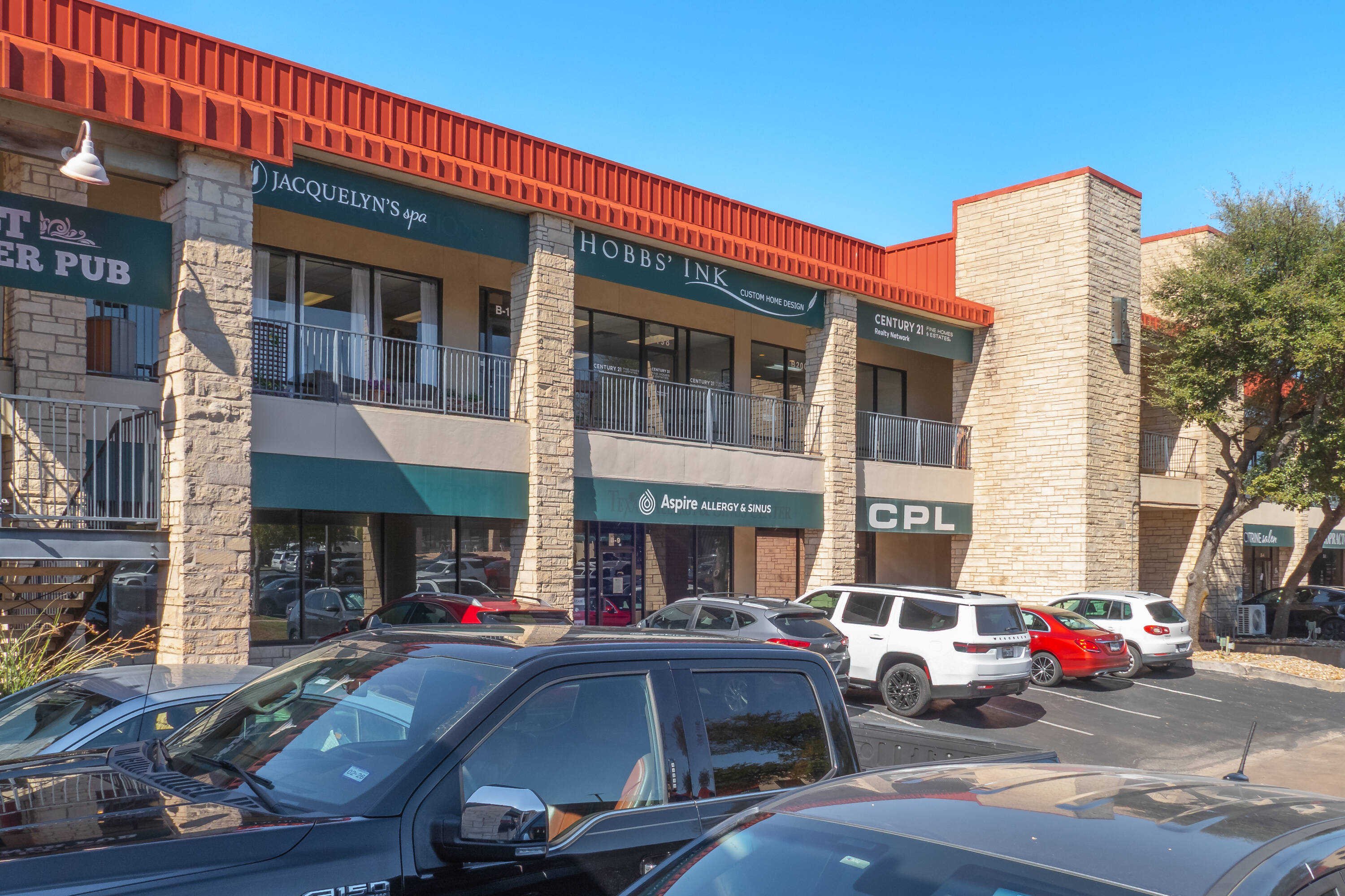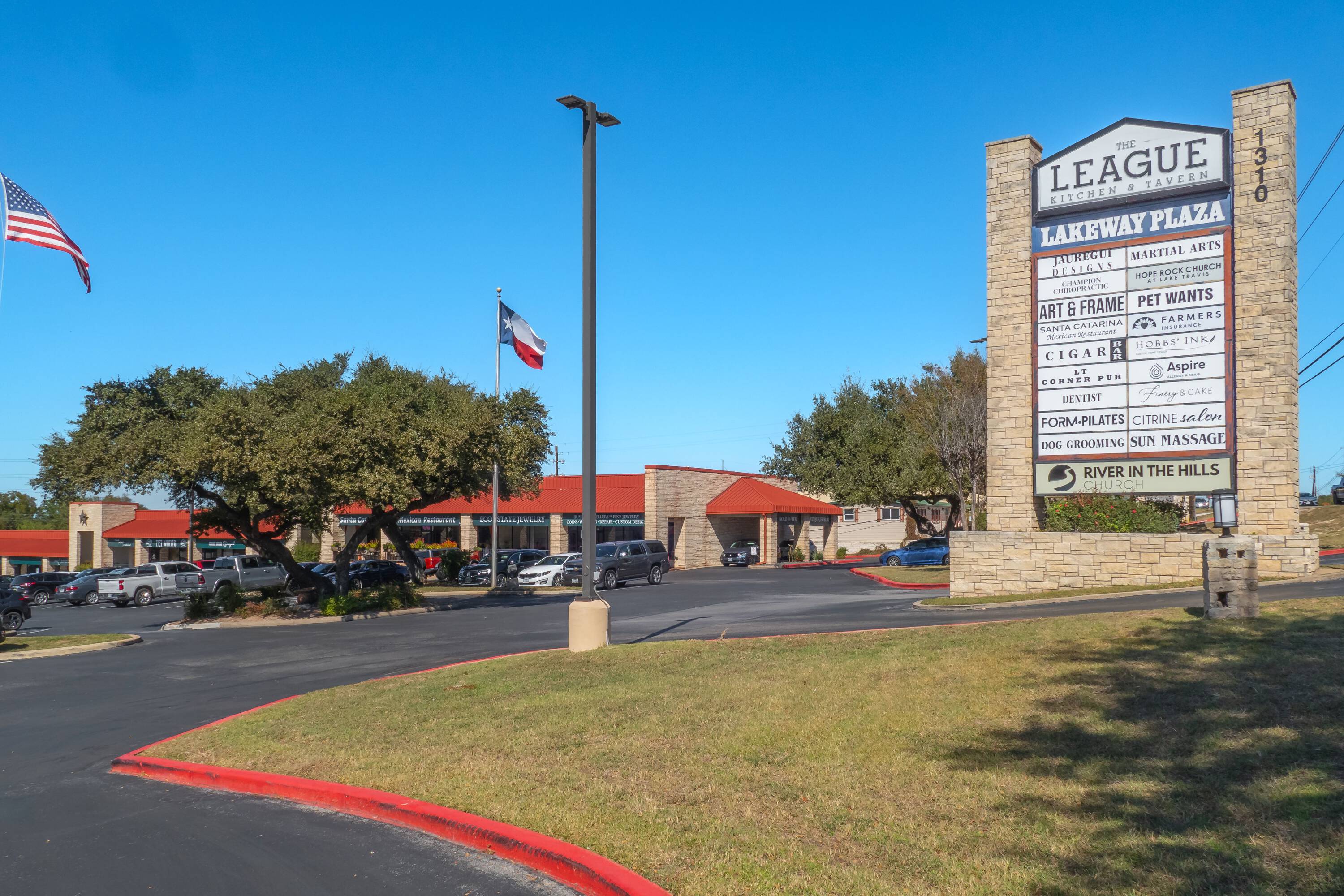 Retail plaza in Lakeway, Texas, near Lake Travis.