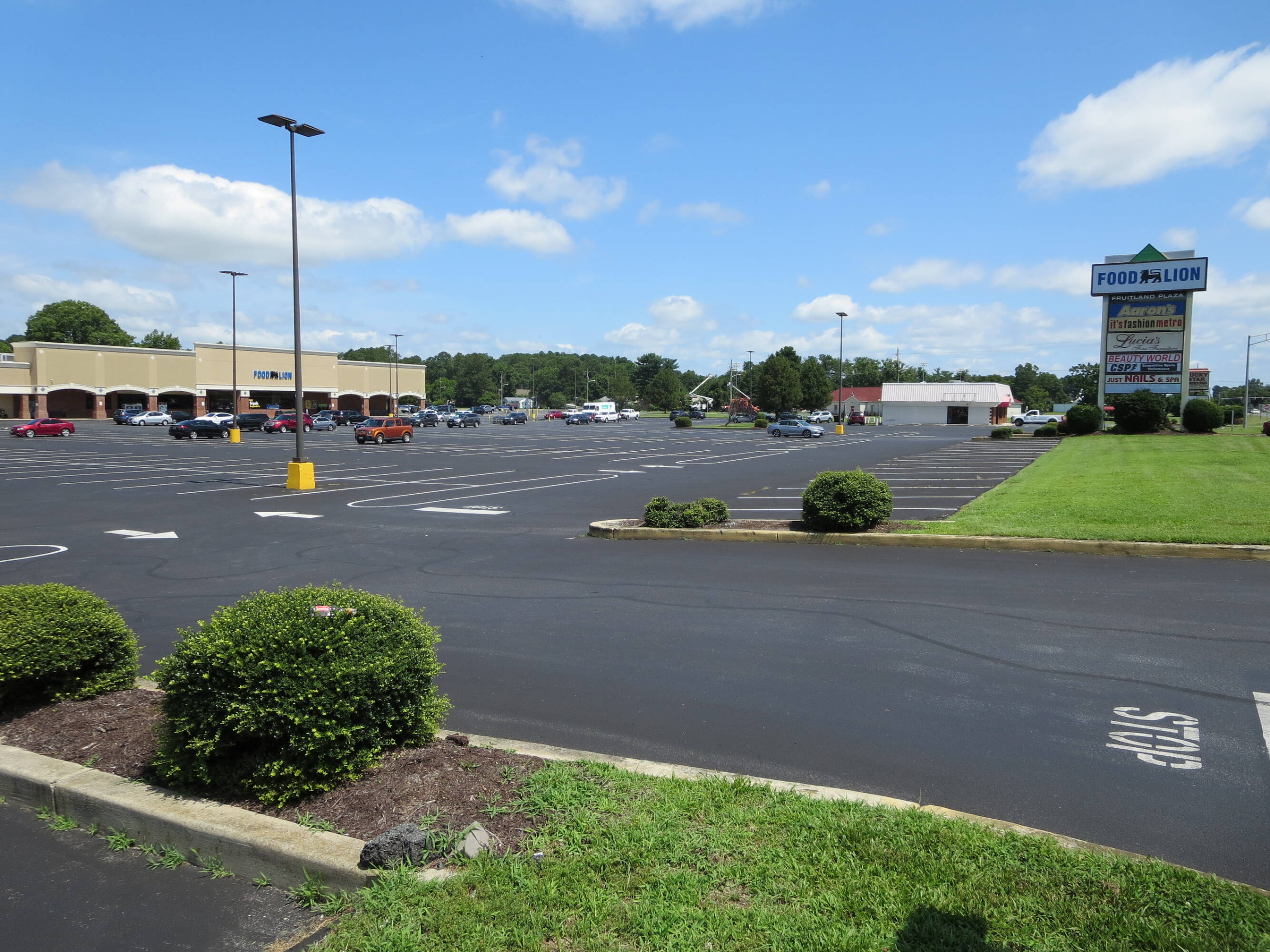 Retail space is available for rent within the Fruitland Plaza Shopping Center, which is anchored by Food Lion. One in-line retail unit, designated as Unit 2E, offers 9,983 square feet of space. This unit is scheduled to become available on January 26, 2026. Additionally, outparcels situated on the southeast and northwest corners of the property are available for sale or build-to-suit opportunities.