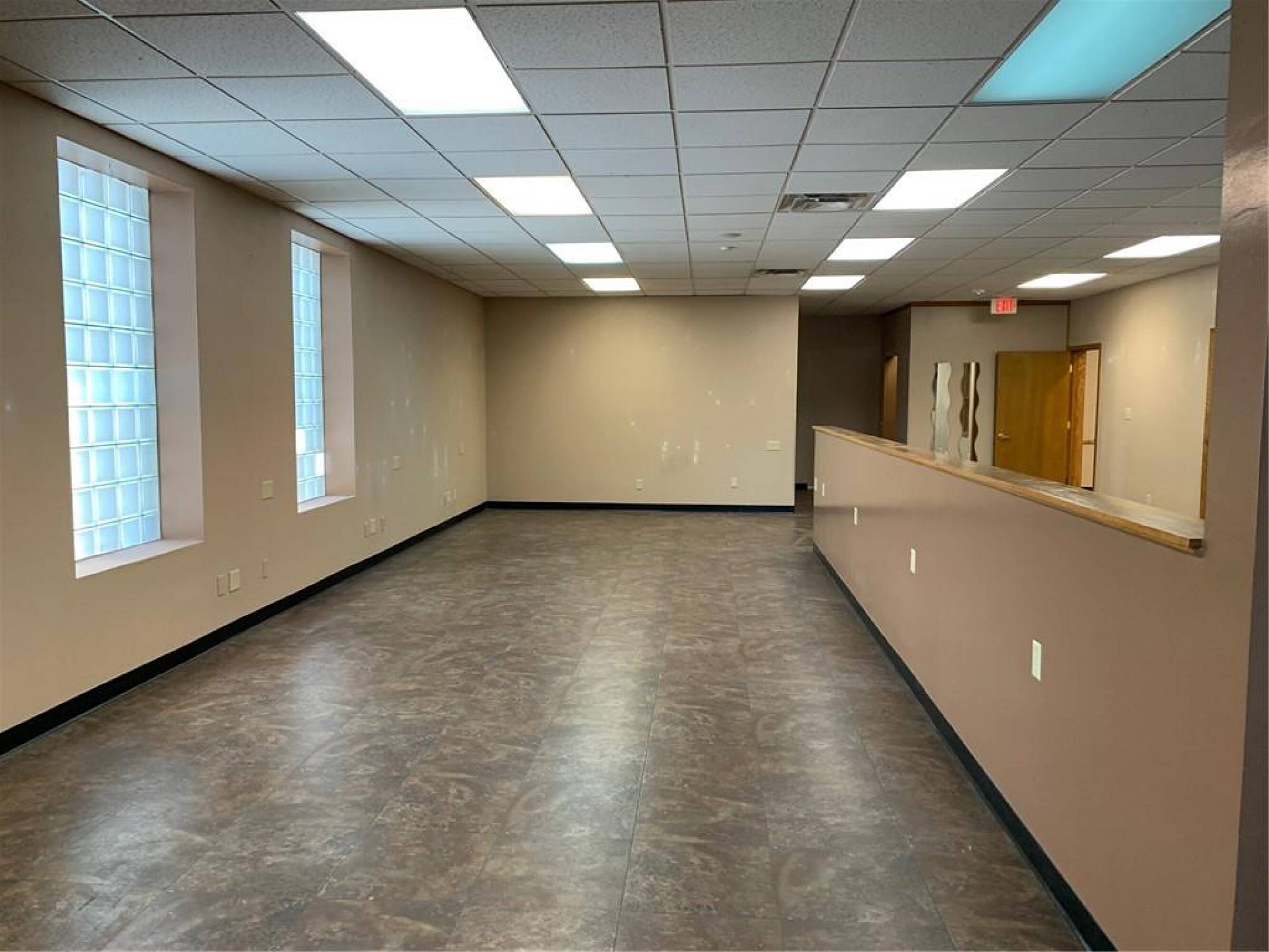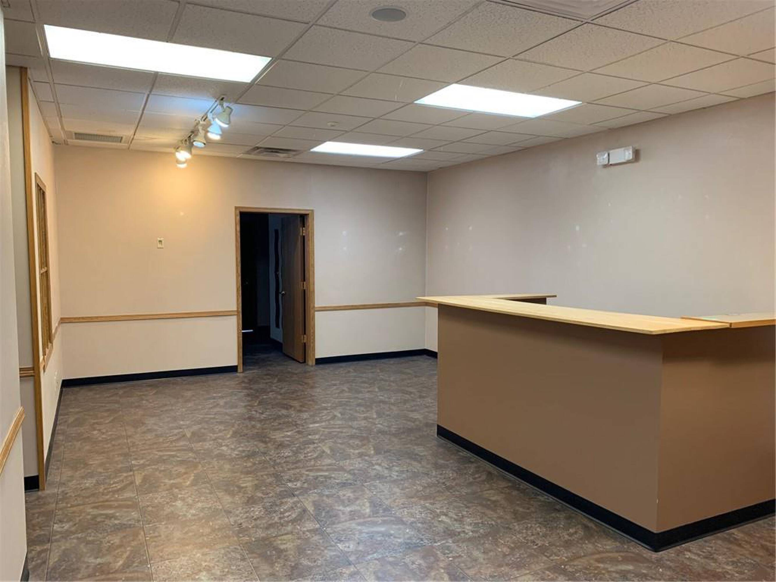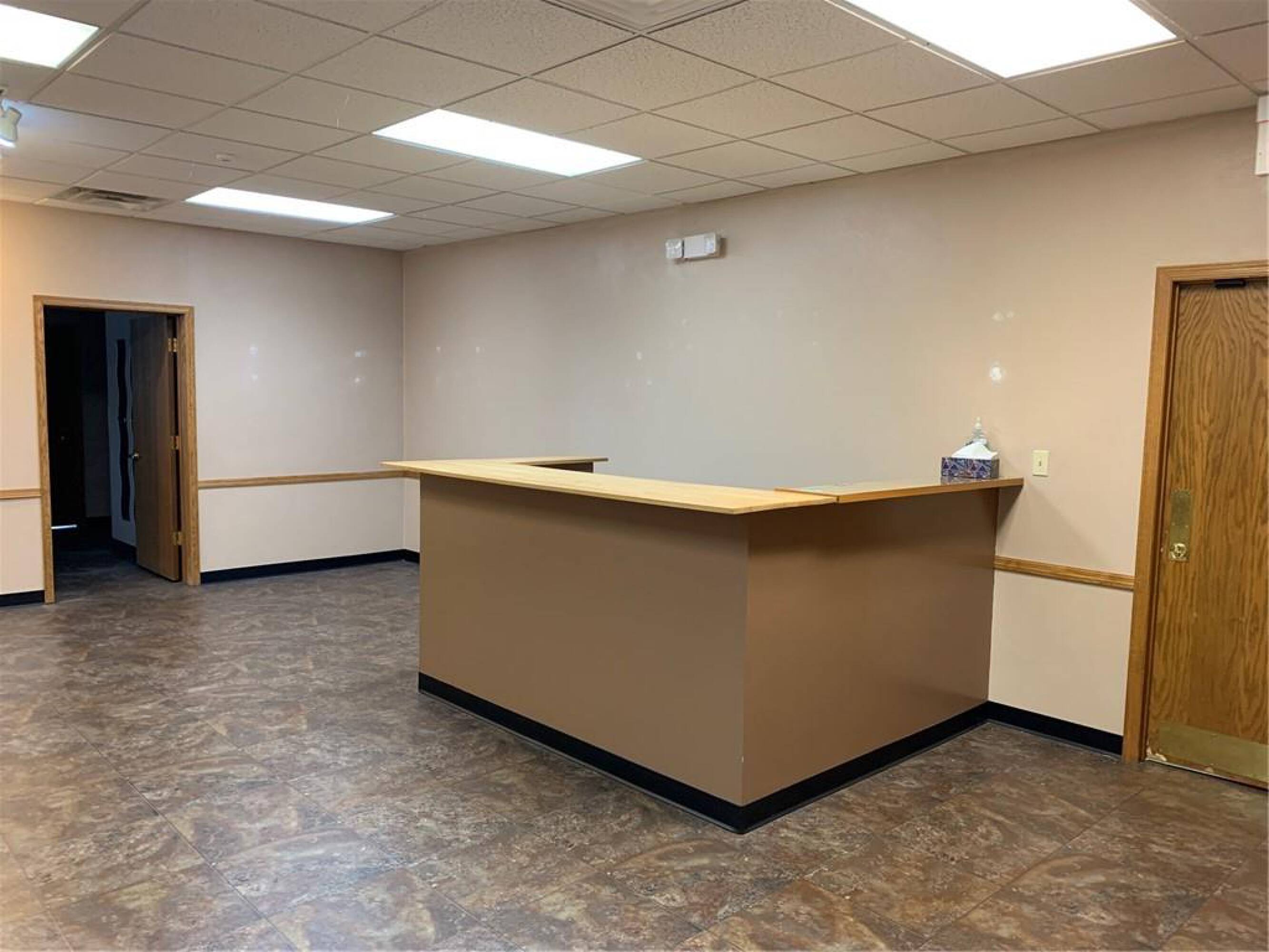 This property features: Large finished office space: Over 3300 square feet available.; Features 4 individual offices.; Functional layout includes a breakroom, reception area with built‑in desk, and two restrooms.