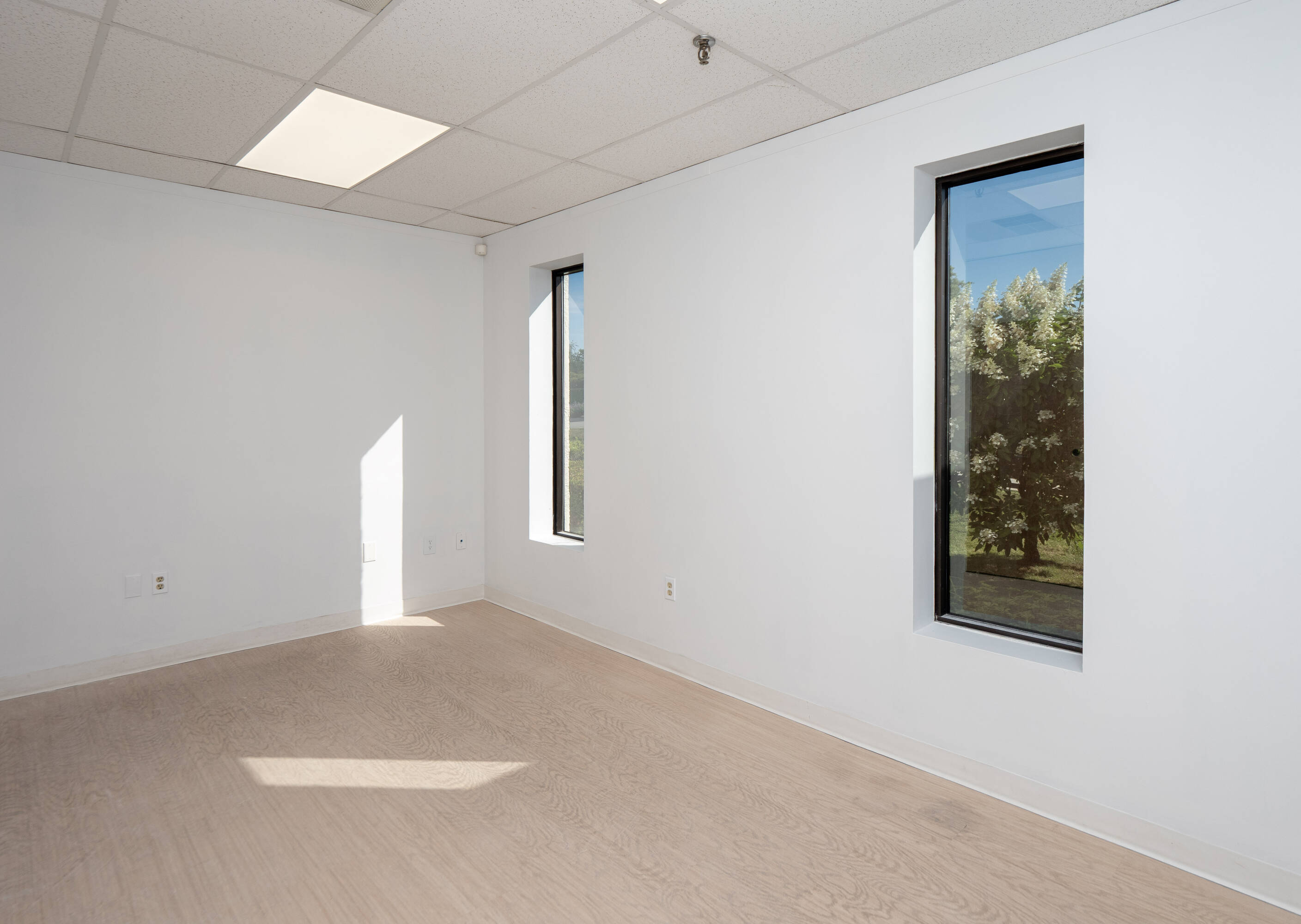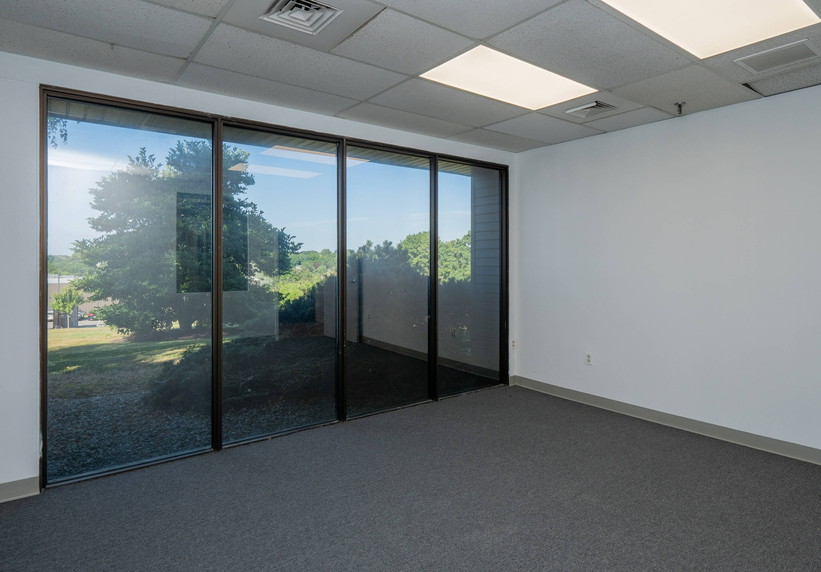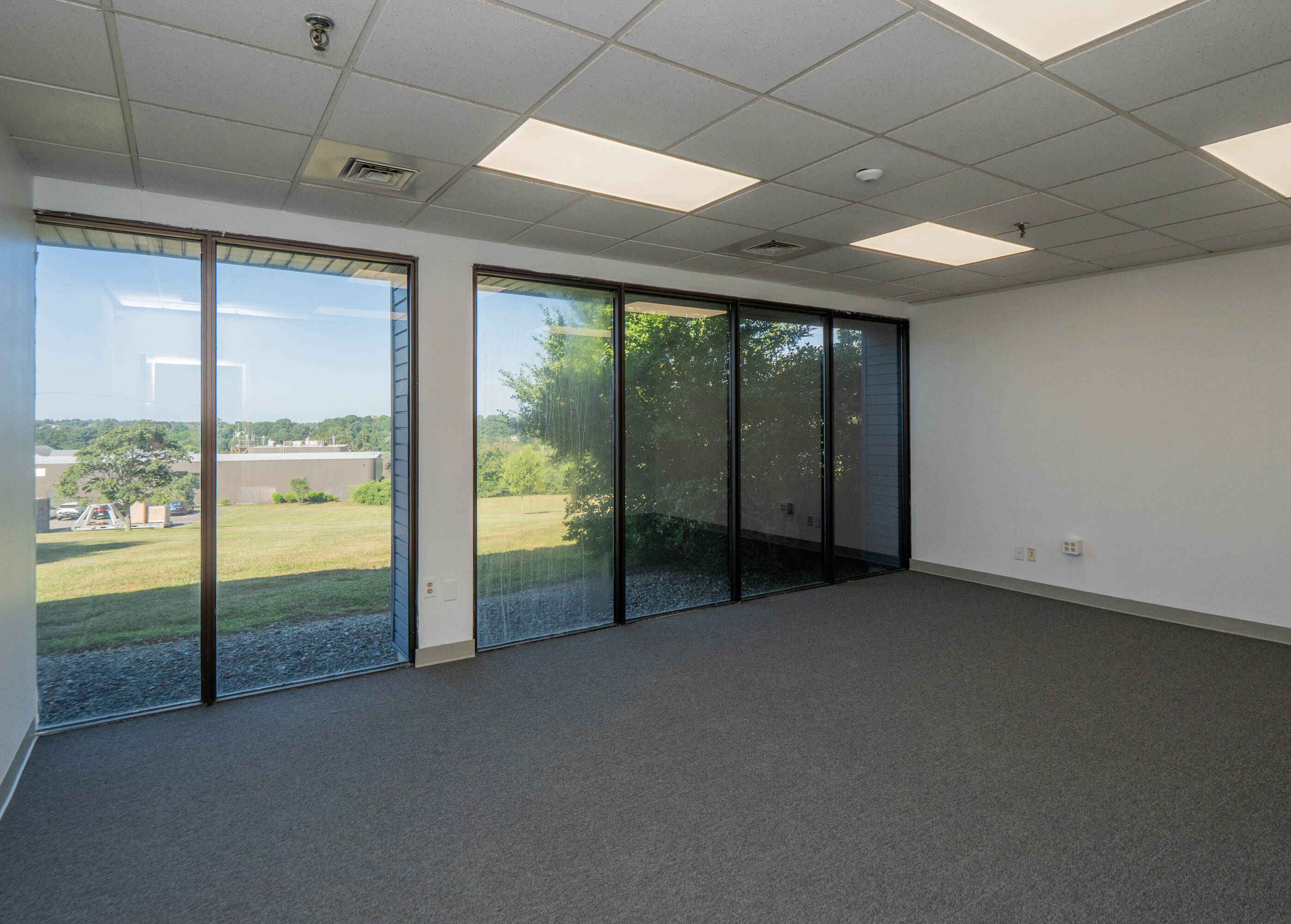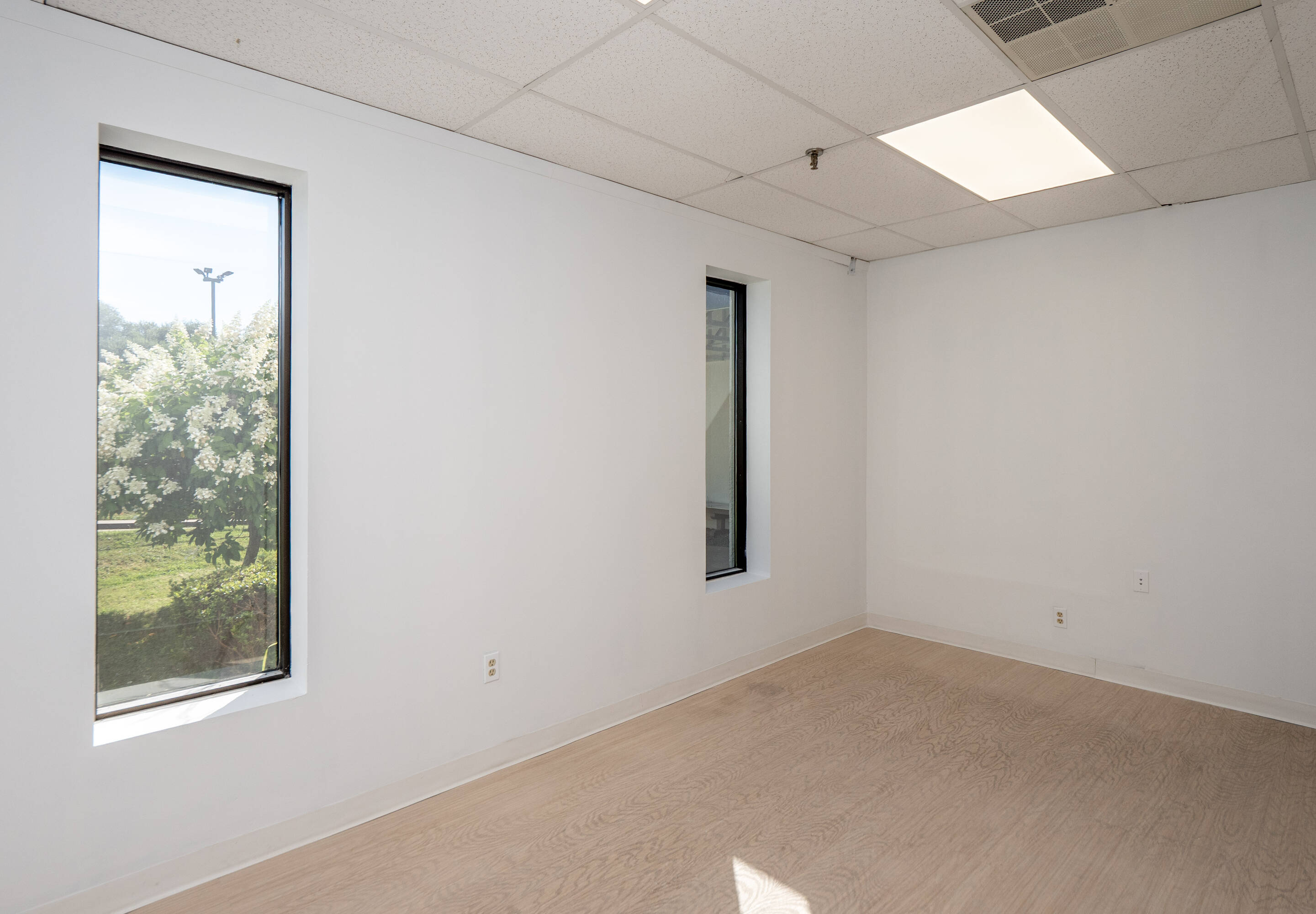 Commercial building with flexible office spaces and lease terms.
