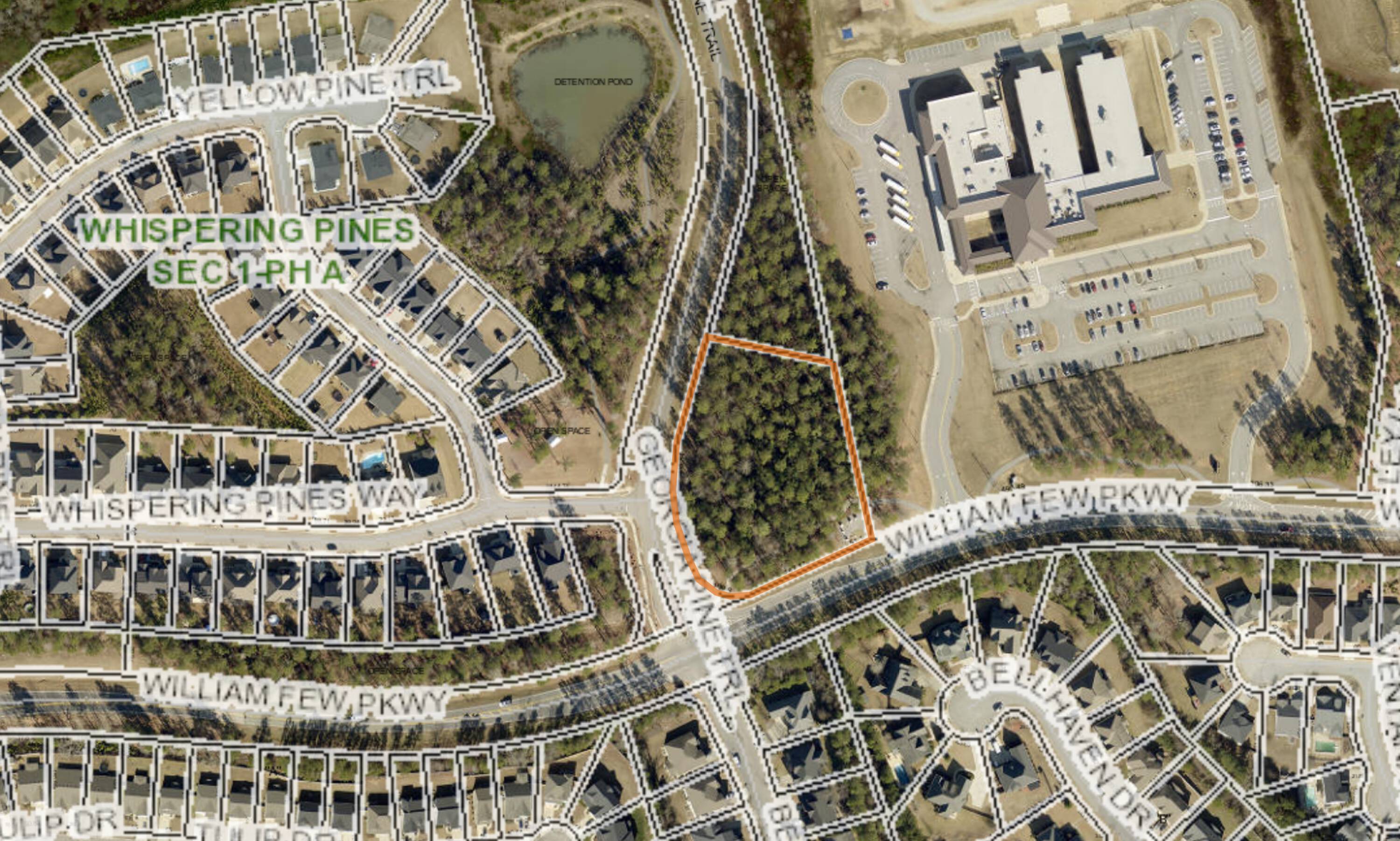 This +/- 2.28 acre development site is intended for use as a daycare. The property is located off the entrance of Whispering Pines neighborhood off of William Few Parkway in Evans, GA. The property is zoned PUD with a narrative for a daycare location. The location is highly visible with access to over 19,445 Vehicles Per Day (VPD), along with a newly installed red light making the site easily accessible. The property is located next to Parkway Elementary school. Whispering Pines neighborhood will provide access to approximately 675 homes when all six phases are completed within the next year and a half. Over 1,200 new roof tops projected within the next two years along Clanton Road that will be expanded into Washington Road. This property has a surrounding population of +/- 125,000 within a seven mile radius, with a high average median household income. Located on a corner lot at the entrance of the newly developed Whispering Pines neighborhood off of William Few Parkway in Evans, Georgia. William Few Parkway connects Washington Road to the rapidly growing area of Grovetown, Georgia. This location provides easy access to Columbia Road, Riverwood community, and minutes away from Interstate 20 (I-20).