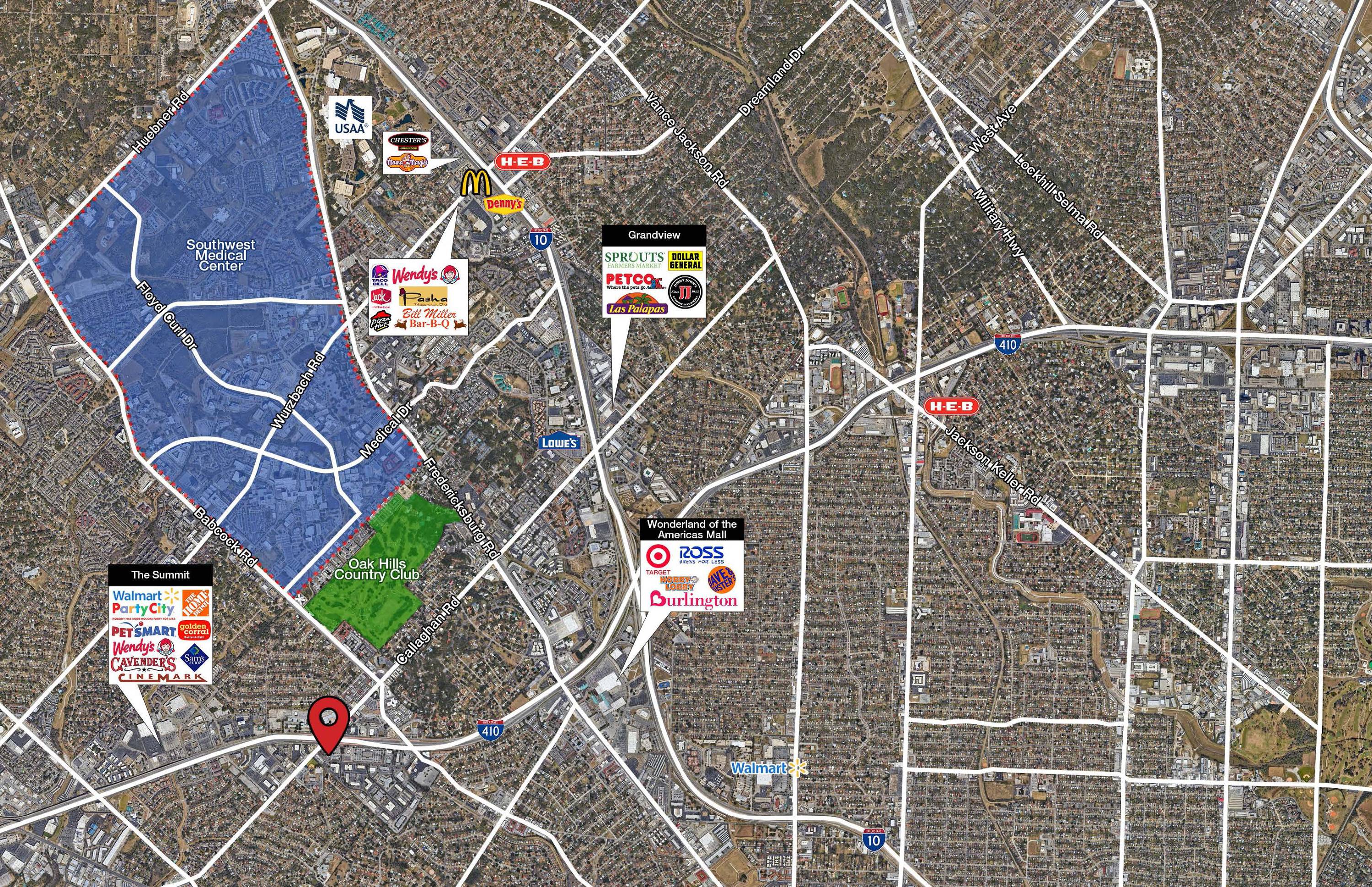 Retail space available for lease in San Antonio, Texas.