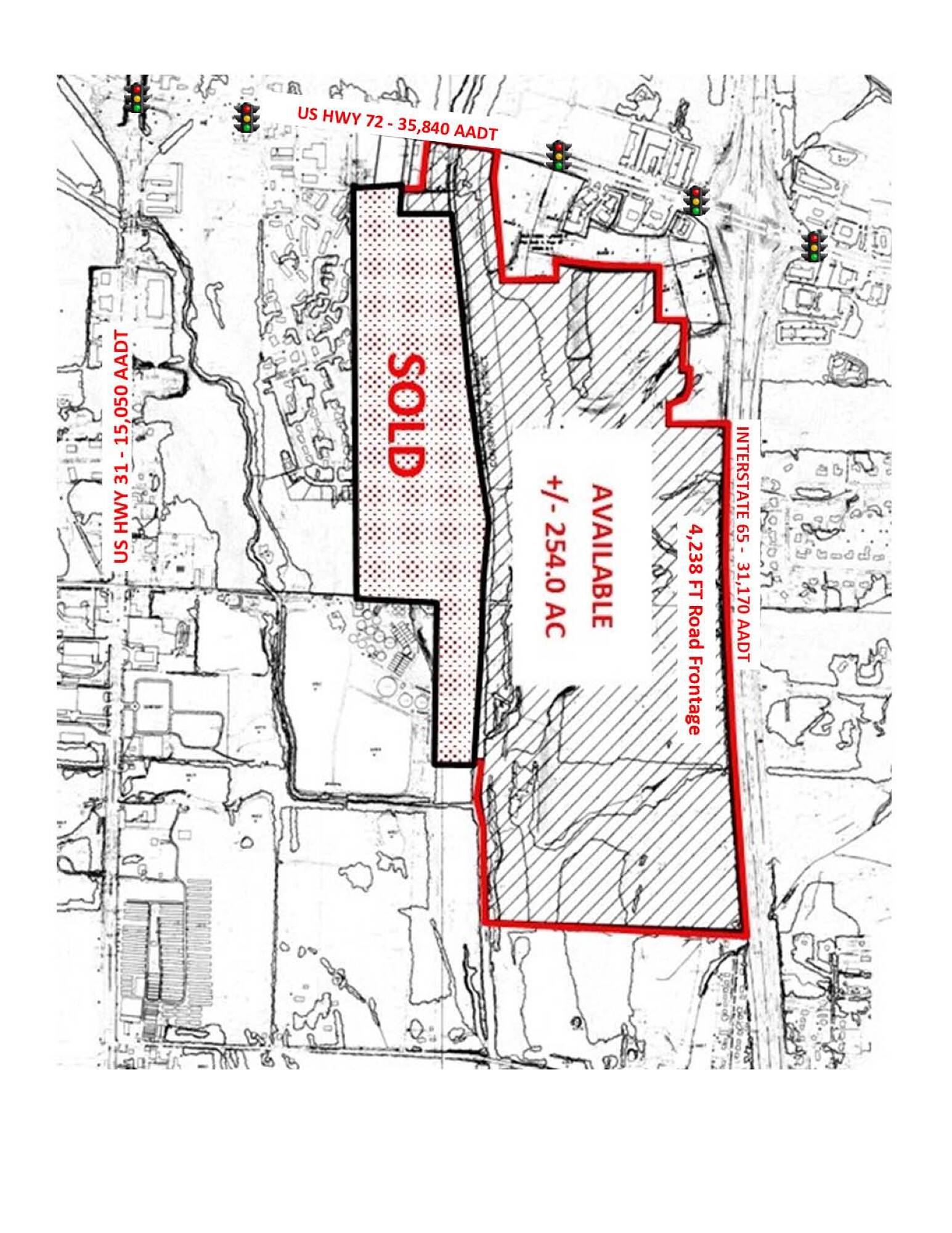Large commercial land parcel with highway and interstate visibility.