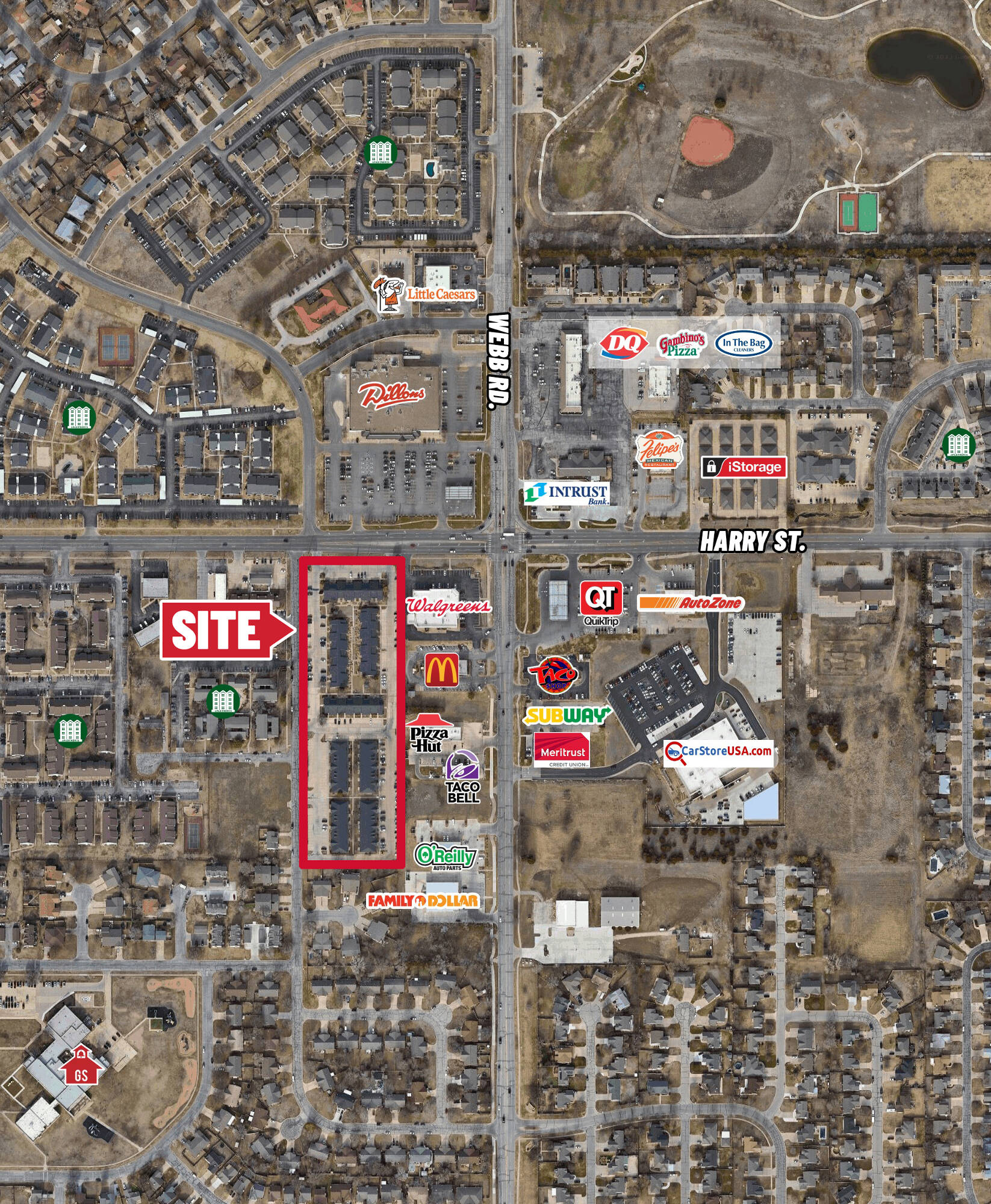 This property features: Ample door side parking for convenient access.; Convenient location near major amenities (Dillons, Walgreens, restaurants) and highways (Kellogg, I‑35, K‑96).; Suites feature private back patios.